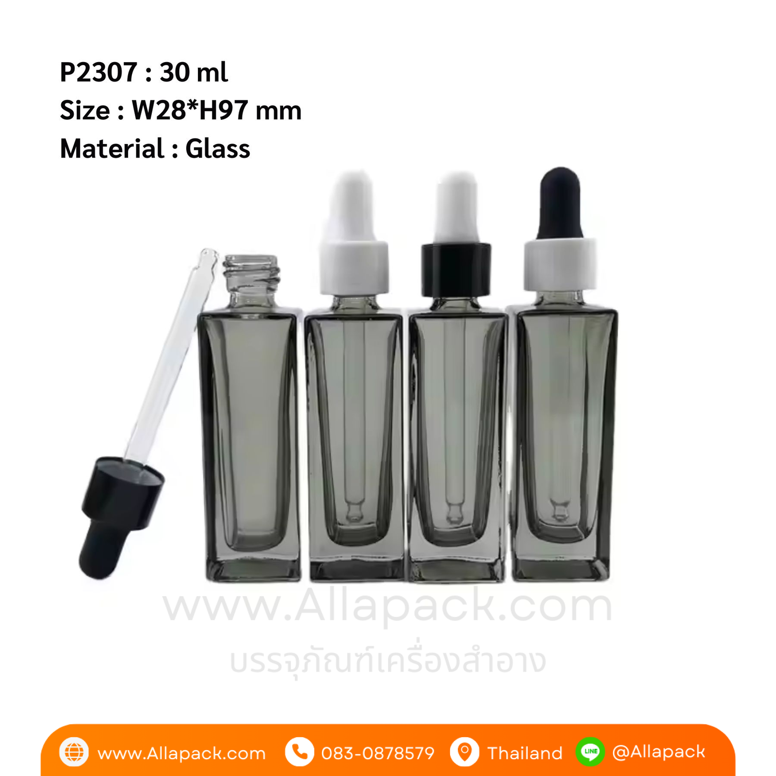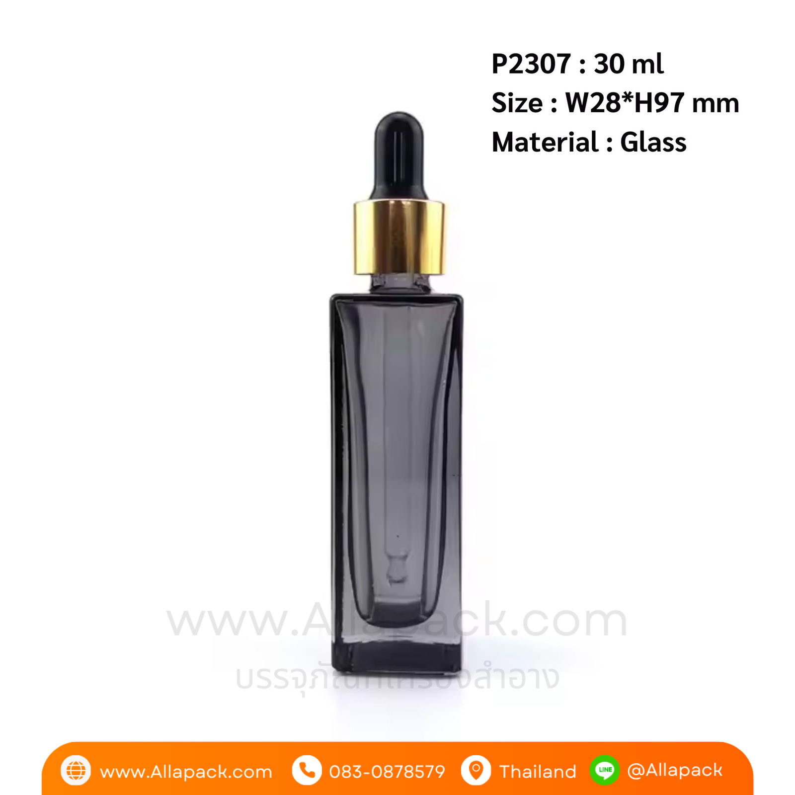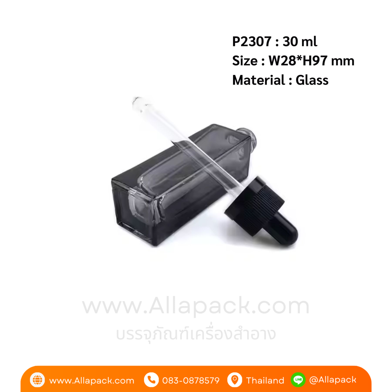 P2307 Frosted Refillable Black Glass Dropper Bottle 30 ml ขวดแก้วดรอปเปอร์ 30 มล
