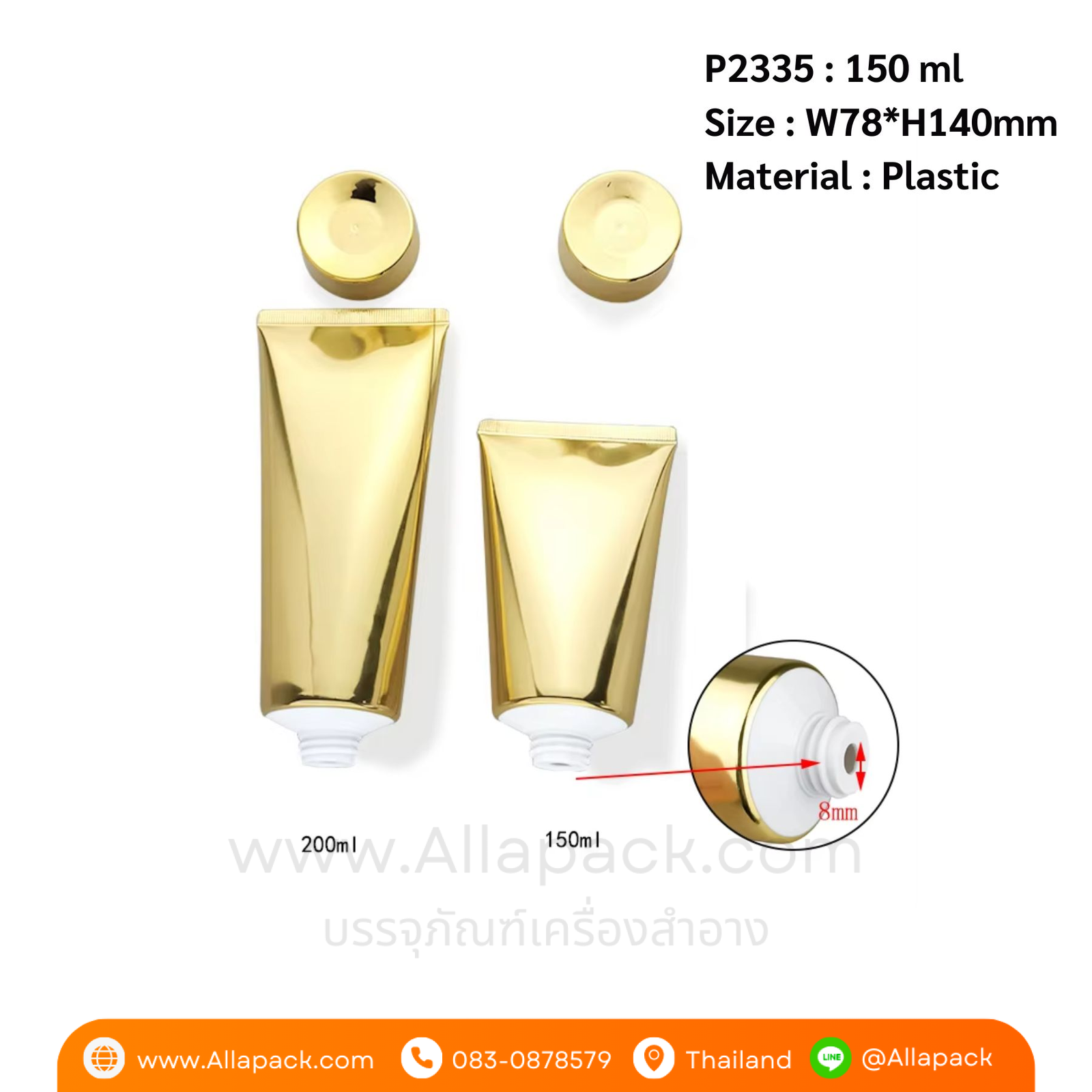P2337 Shiny Gold Aluminum Plastic Soft Tube 200 ml หลอดพลาสติกอะลูมิเนียมสีทอง 200 มล