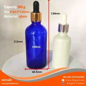 P502 gold dropper glass bottle 100ml. ขวดแก้วดรอปเปอร์สีทอง 100มล.