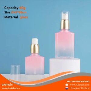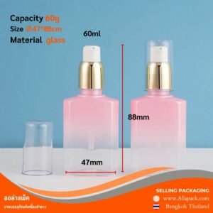P504 glass pump bottle 60ml. ขวดแก้วหัวปั้มทรงสี่เหลี่ยม 60มล.
