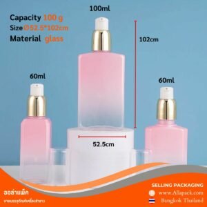 P505 glass pump bottle 100ml. ขวดแก้วหัวปั้มทรงสี่เหลี่ยม 100มล.