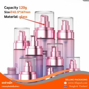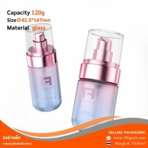 glass แก้ว เอฟเฟคไล่ระดับสีชมพูฟ้าพร้อมปั้มโลชั่น(โลหะสีชมพู)+ฝาปิดใส |