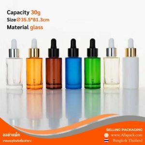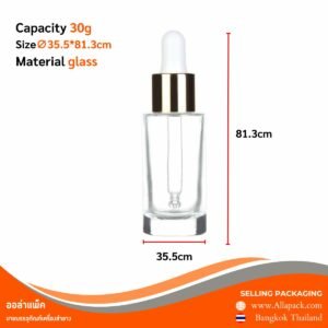 P528 Glass dropper bottle 30 ml. ขวดดรอปเปอร์ฝาเงิน ทรงสูง 30มล.