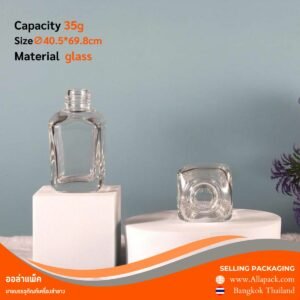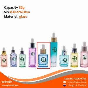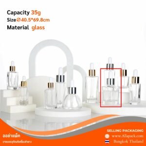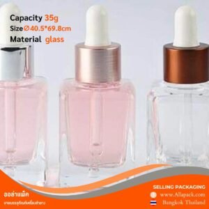 P529 Glass dropper bottle 35ml. ขวดดรอปเปอร์ฝาโรสโกลด์ทรงสี่เหลี่ยม 35มล.