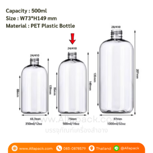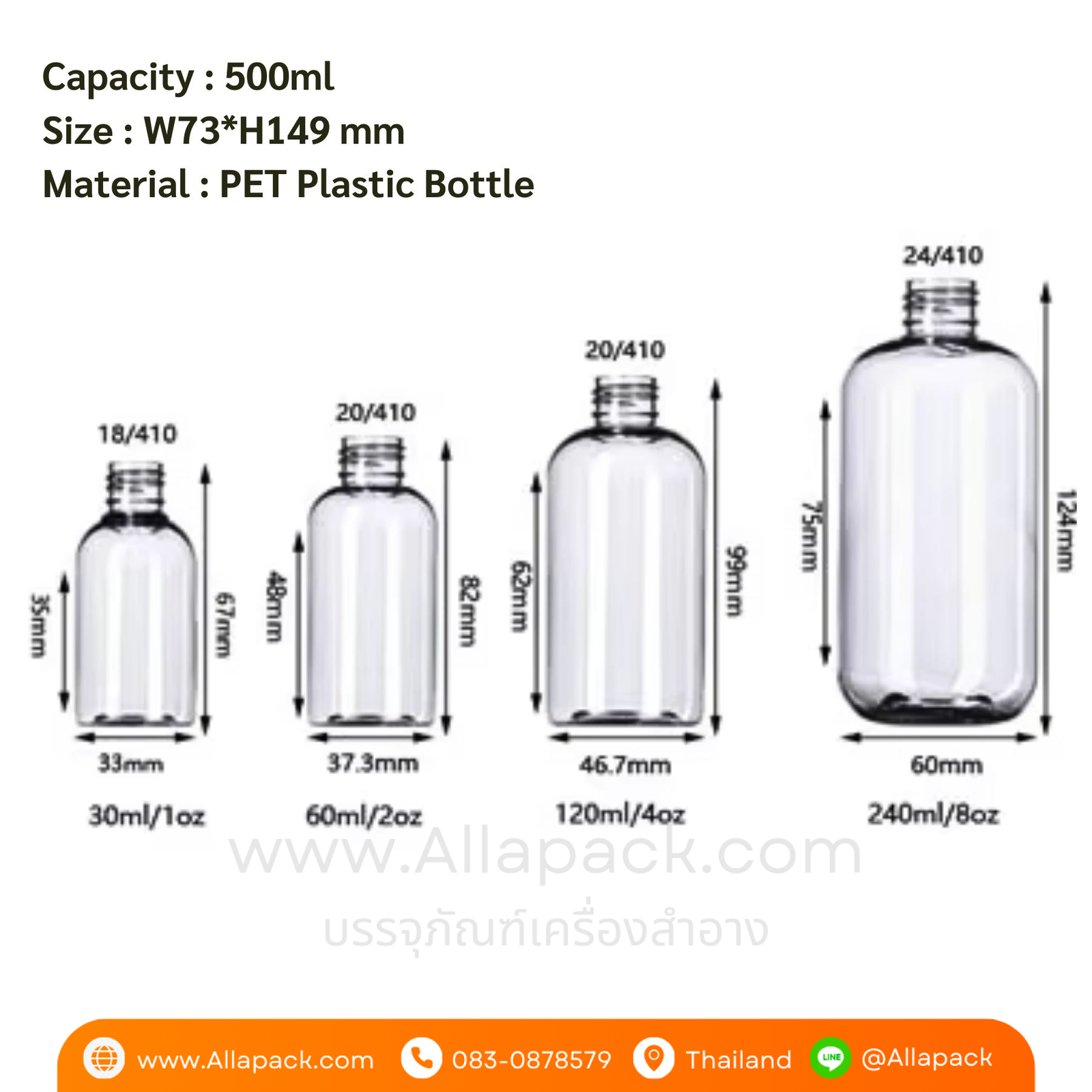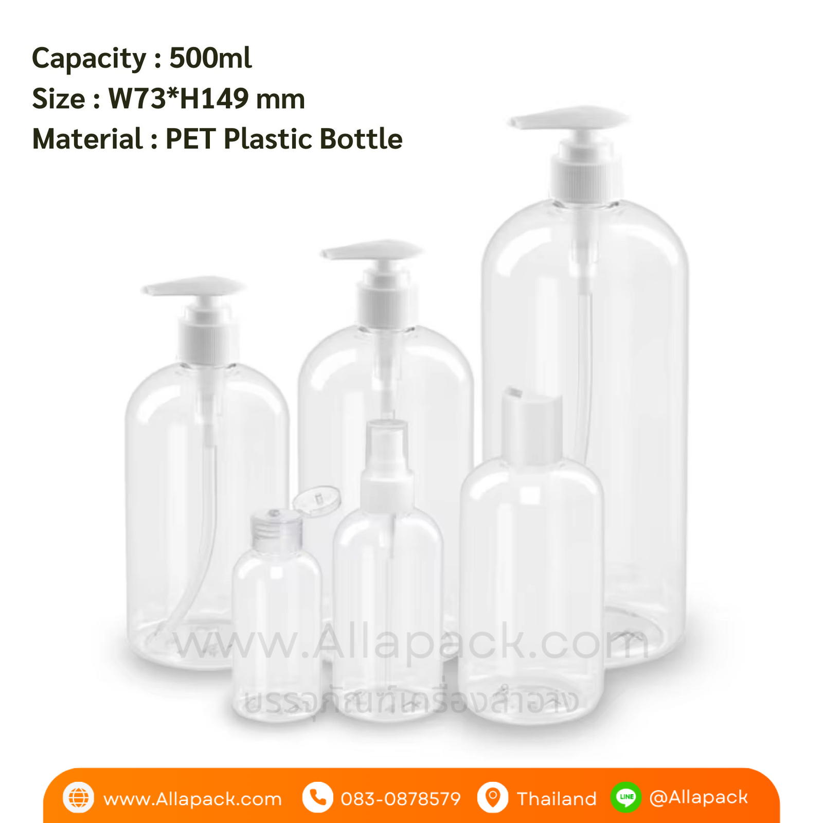 P1065 Clear Plastic Boston Round Bottles 500ml ขวดปั๊มพลาสติก 500มล