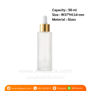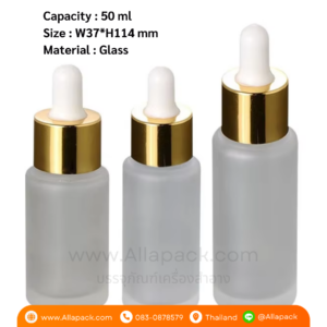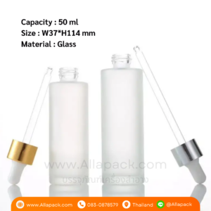 P1095 Clear Frosted Cylinder Bottle 50 ml ขวดแก้วขุ่นดรอปเปอร์สีขาวทอง 50 มล