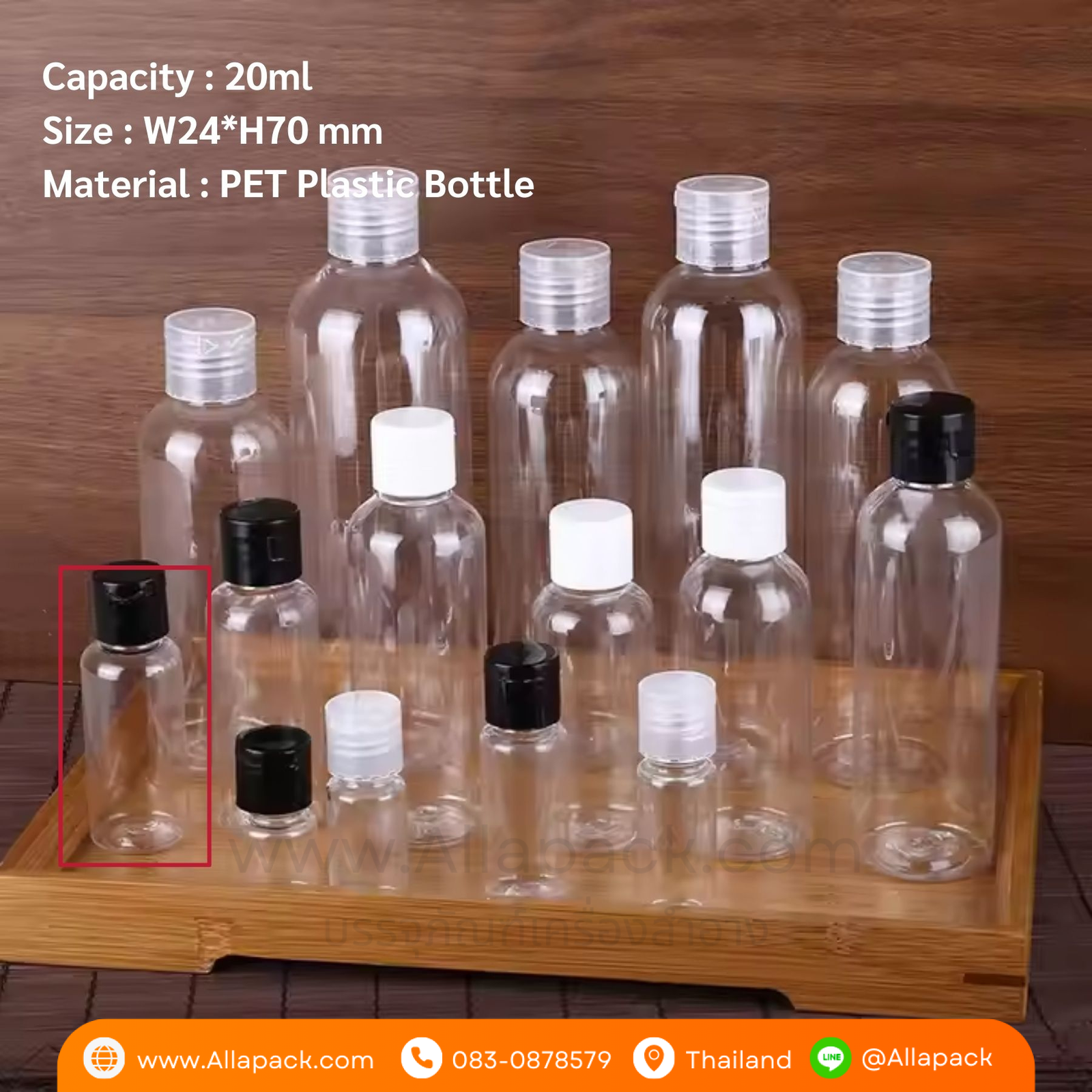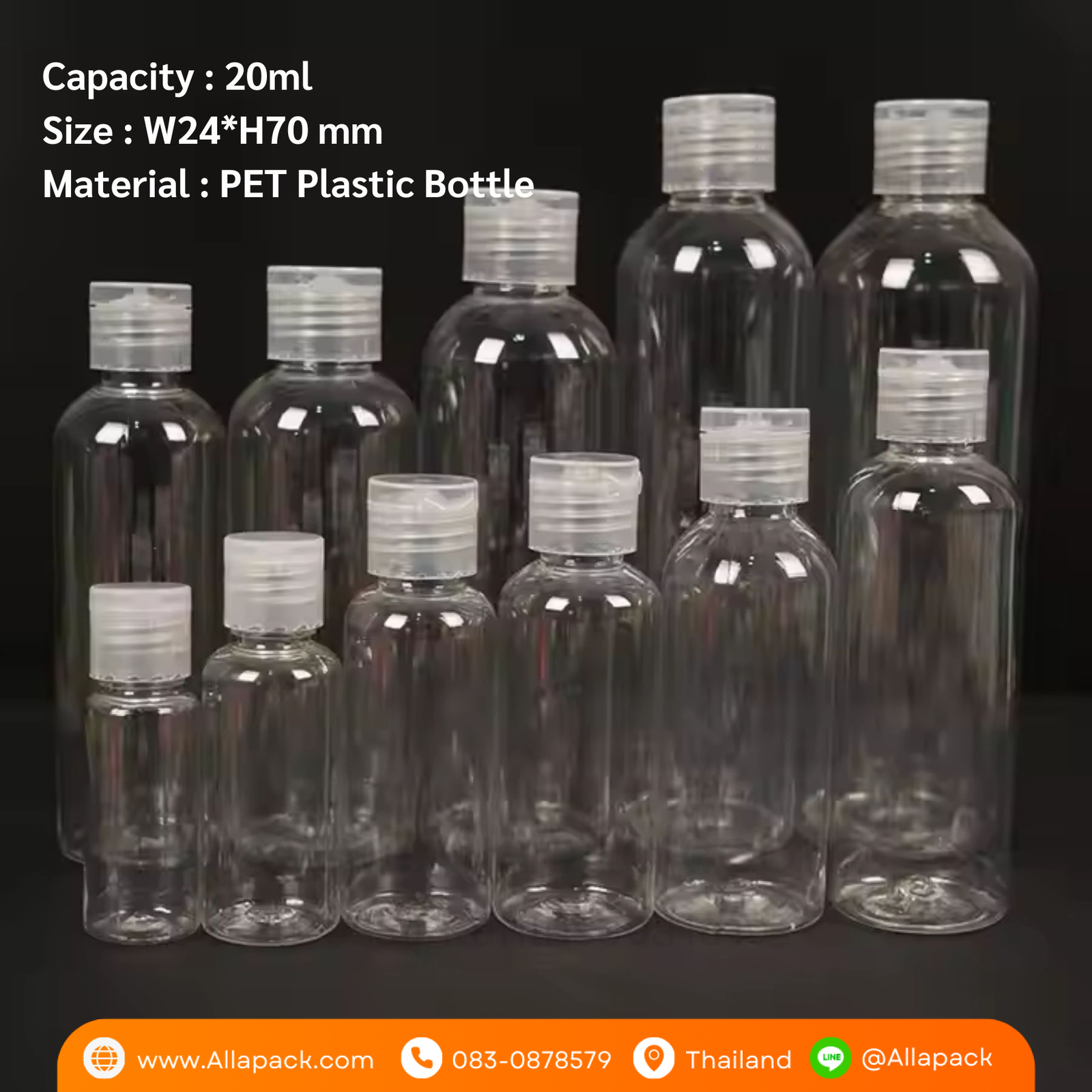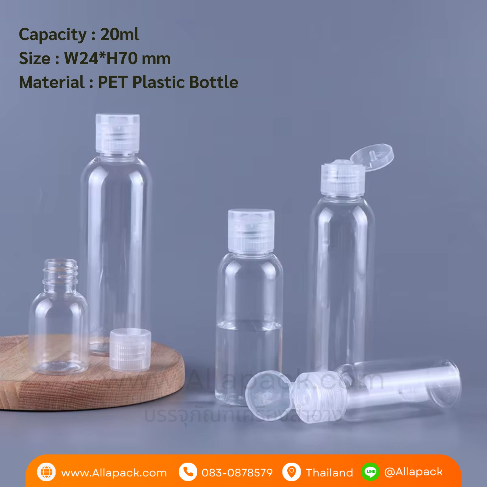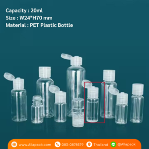 P1107 Plastic Bottle + Plastic Cap 20ml ขวดพลาสติก+ฝาป๊อกแป๊กพลาสติก 20มล