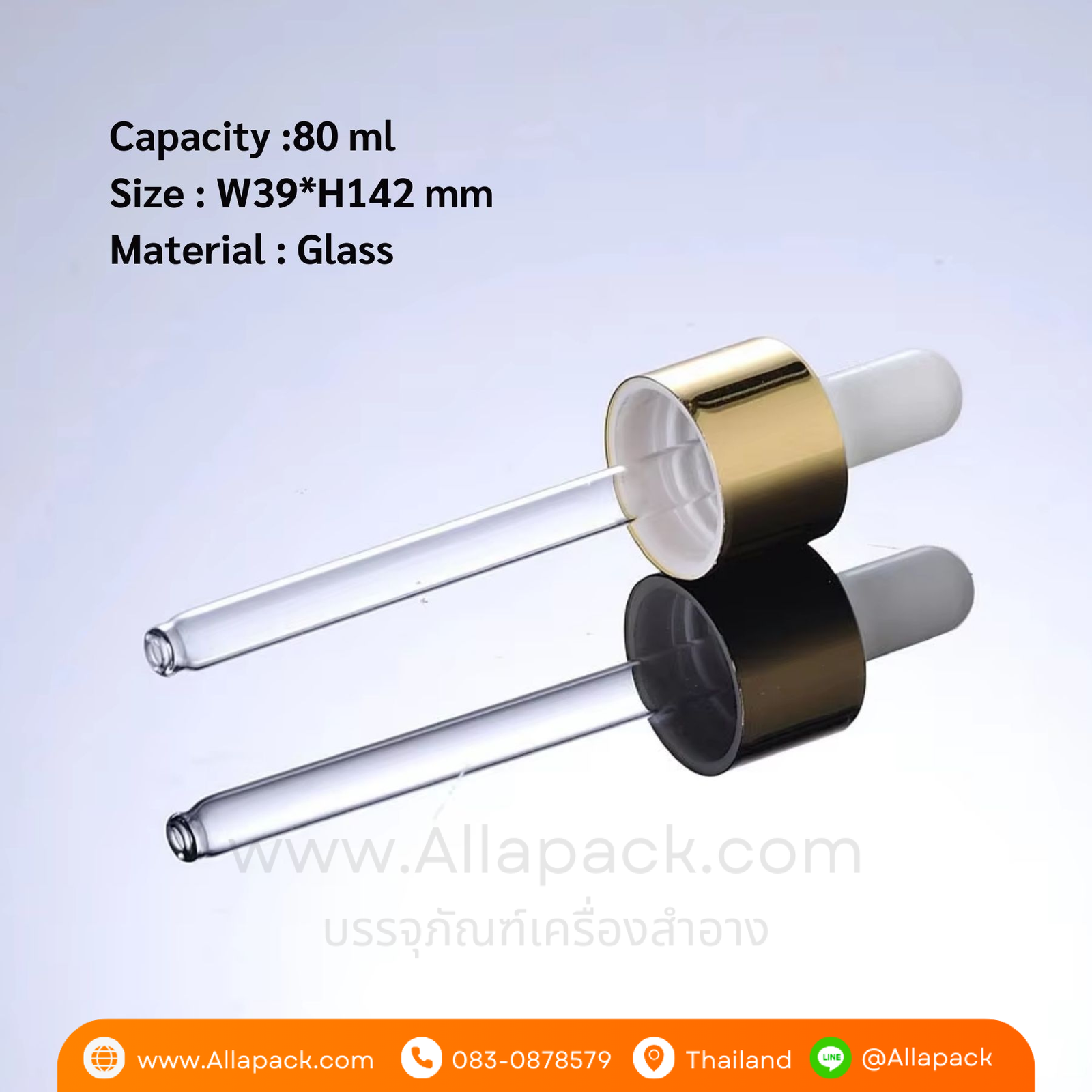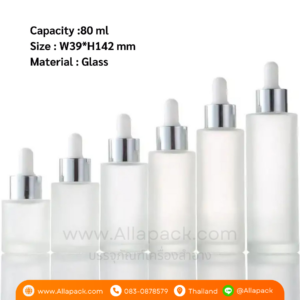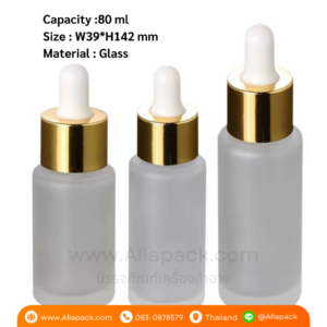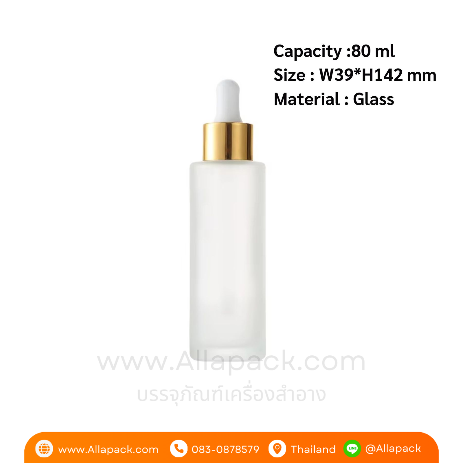 P1099 Clear Frosted Cylinder Bottle 80 ml ขวดแก้วขุ่นดรอปเปอร์สีขาวทอง 80 มล