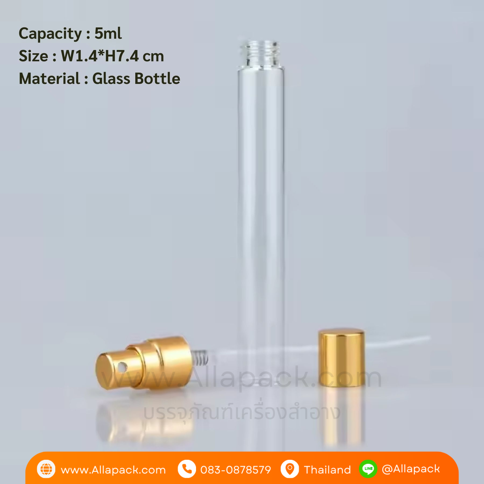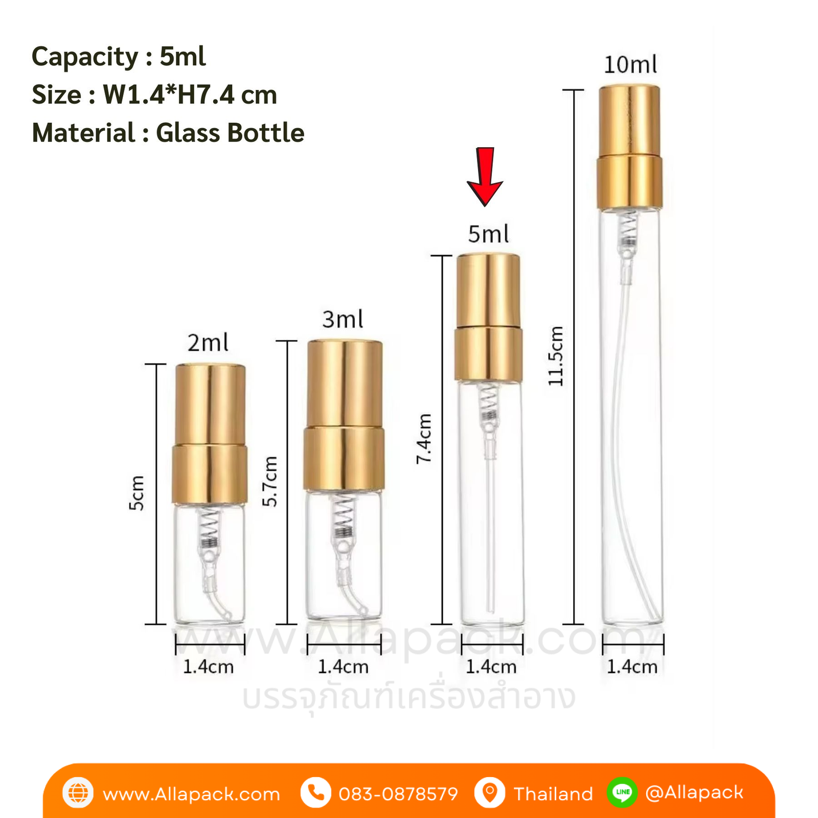 | Capacity ปริมาณความจุ | 5ml หรือ 5มล.(เมือบรรจุน้ำ) |