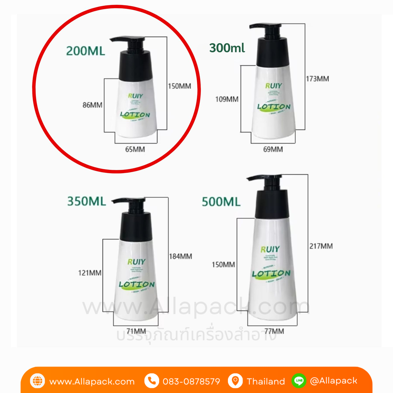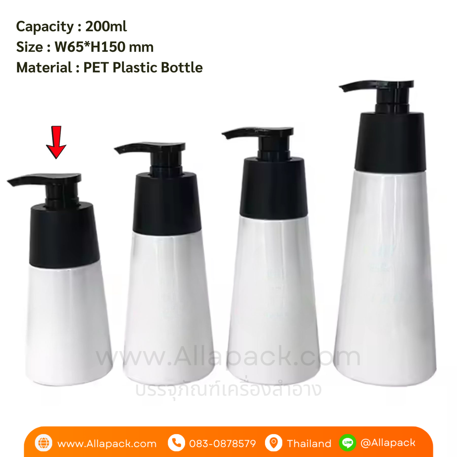P1233 Plastic Bottle Pump 200ml ขวดพลาสติกหัวปั๊ม 200มล