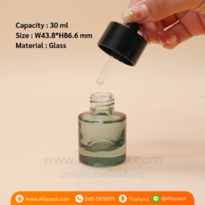 Shape ลักษณะ ขวดแก้ว พร้อมฝาดรอปเปอร์สีดำ