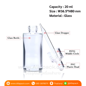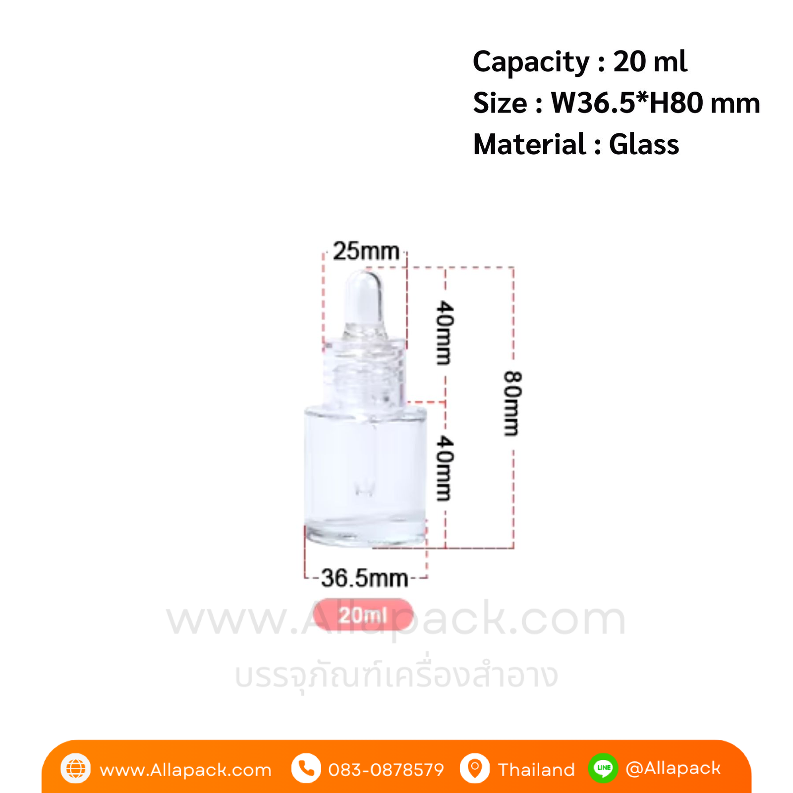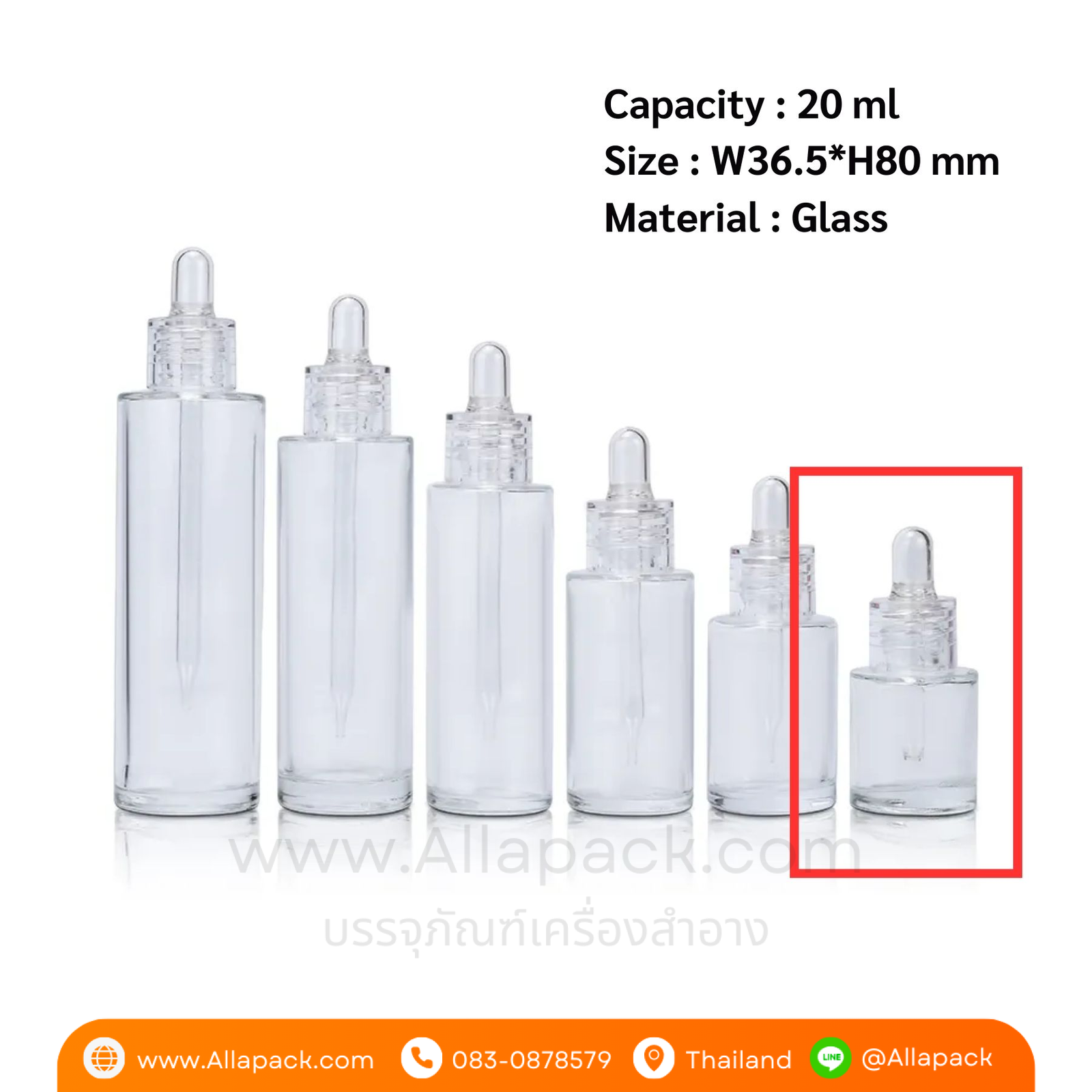 P1317 Glass Clear Bottle 20 ml with Clear Dropper ขวดแก้วดรอปเปอร์ใส 20 มล