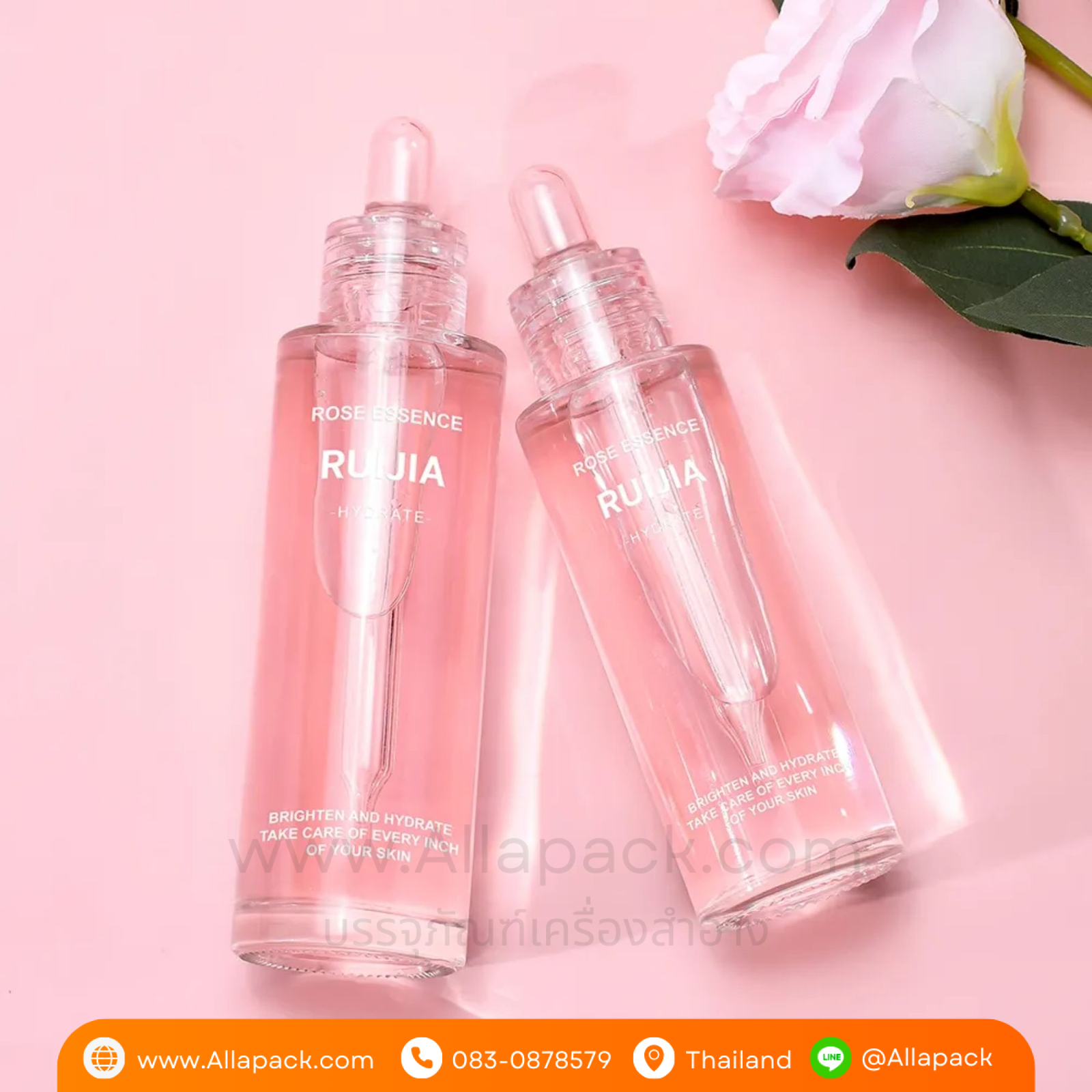 | Shape ลักษณะ | ขวดแก้วทรงกระบอกใส พร้อมฝาดรอปเปอร์ใส |