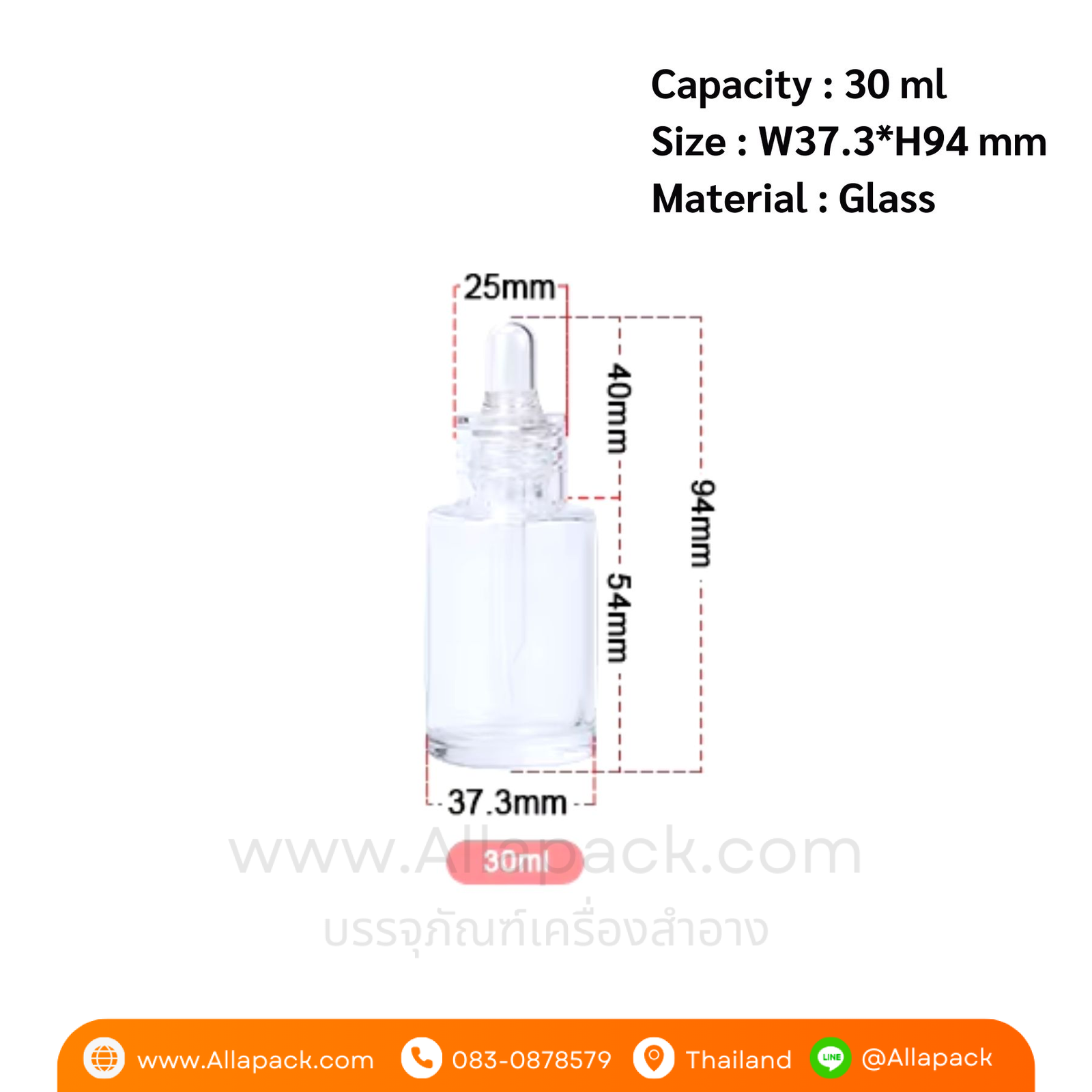 | Capacity ปริมาณความจุ | 30 ml หรือ 30 มล.(เมือบรรจุน้ำ) |