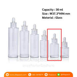 P1319 Glass Clear Bottle 30 ml with Clear Dropper ขวดแก้วดรอปเปอร์ใส 30 มล