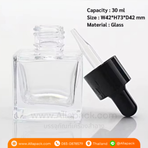 P1339 Square Bottle Glass 30 ml Dropper ขวดแก้วสี่เหลี่ยมดรอปเปอร์ 30 มล