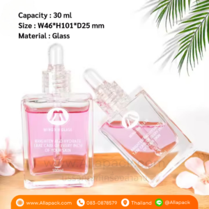 P1355 Transparent Square Rectanglel Dropper Glass Bottles 30 ml ขวดแก้วสี่เหลียมดรอปเปอร์ 30 มล