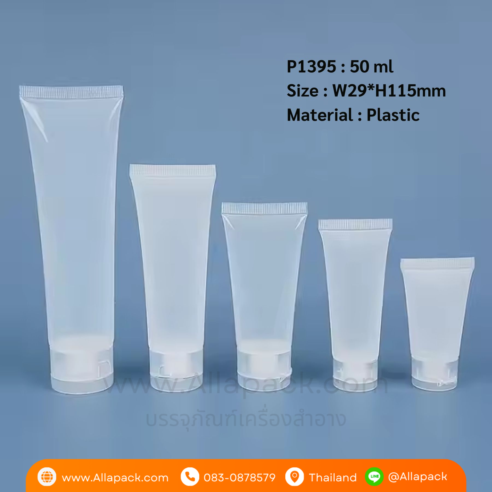 P1395 Soft Plastic Tube with Flip top lid 50 ml หลอดพลาสติกขุ่น 50 มล