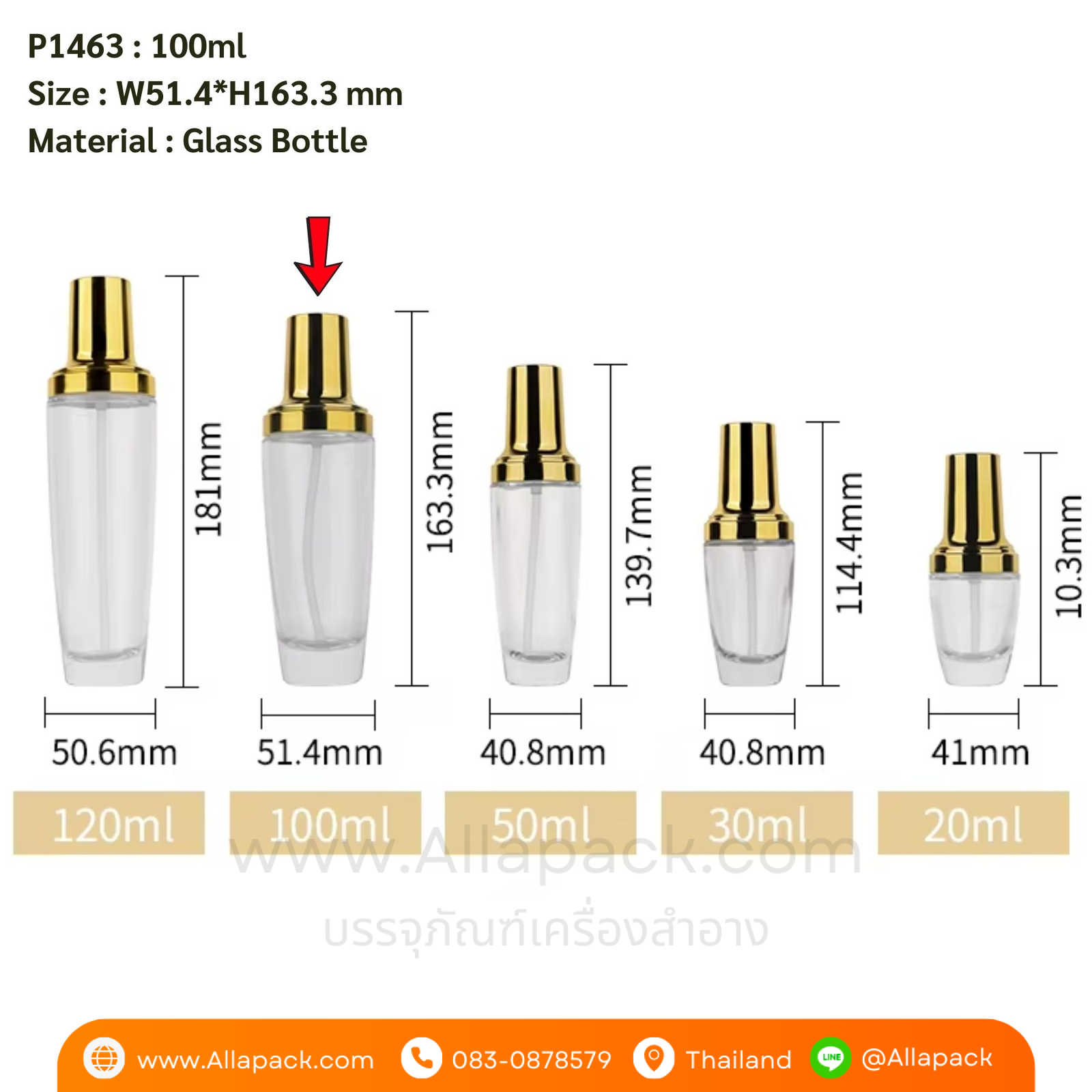 P1463 Set Packaging Glass Bottle 100ml ขวดแก้วหัวปั๊ม 100มล