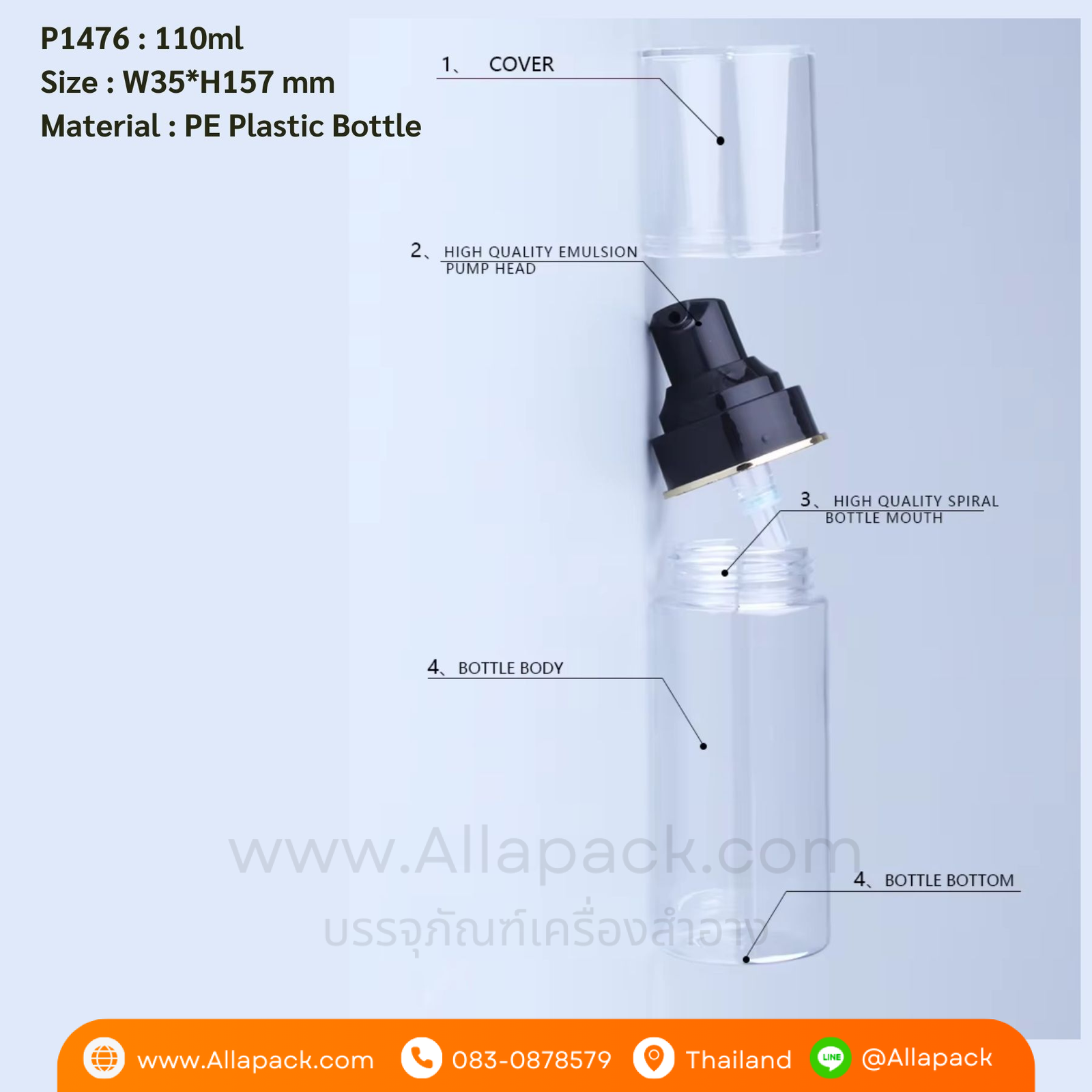 P1476 Squeeze Plastic Bottle 110ml ขวดหัวสเปรย์/หัวปั๊มใส 110มล