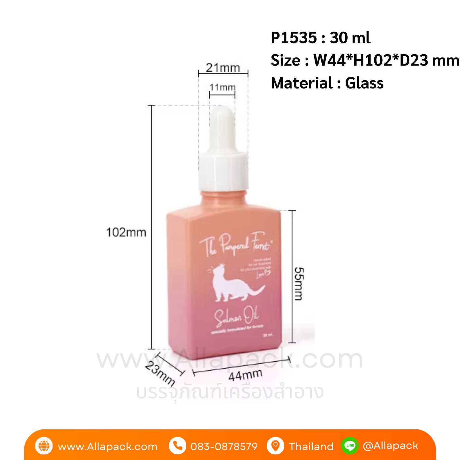 P1535 Flat Square Rectangle Luxury Dropper 30 ml ขวดแก้วดรอปเปอร์ 30 มล