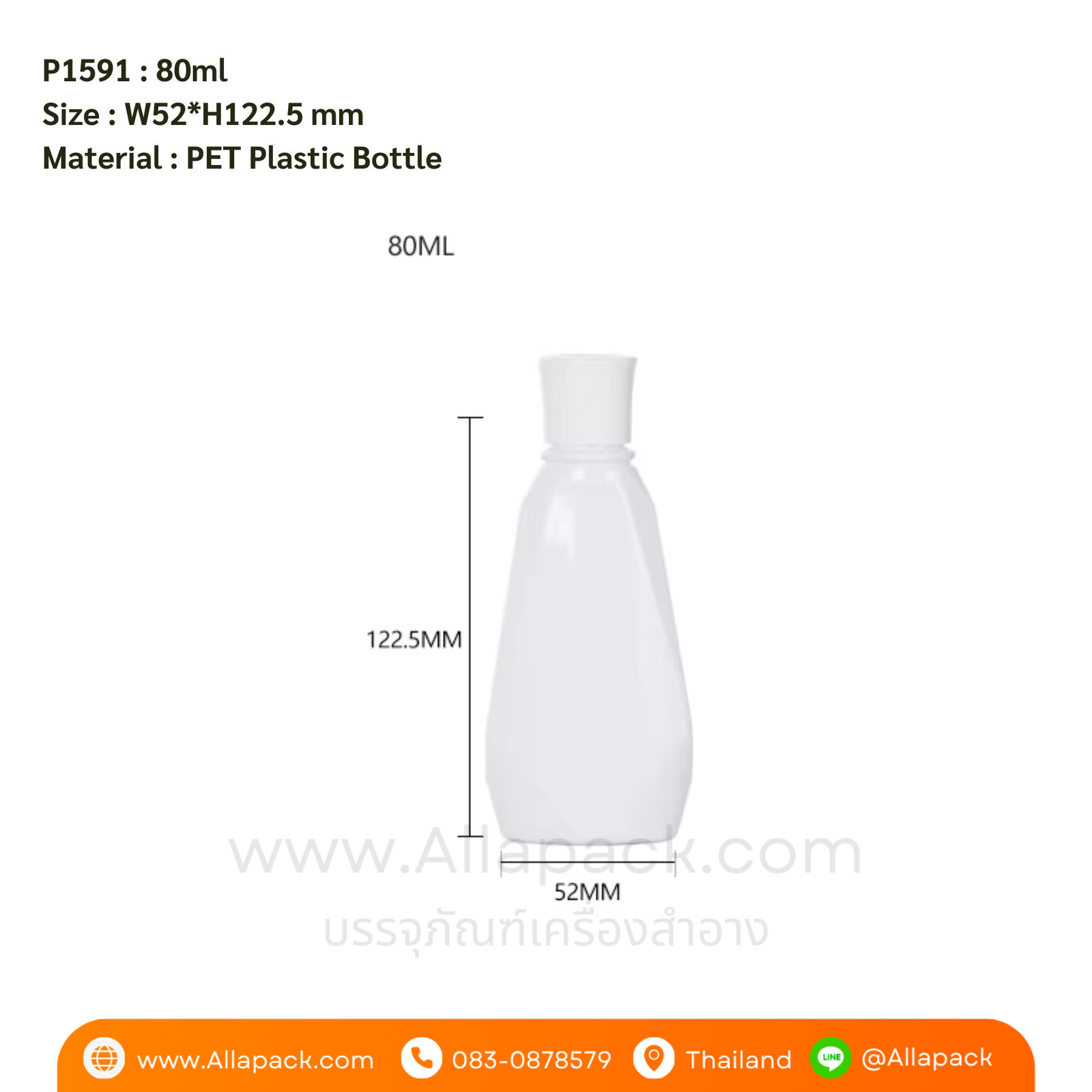 | Capacity ปริมาณความจุ | 80 ml หรือ 80 มล.(เมือบรรจุน้ำ) |