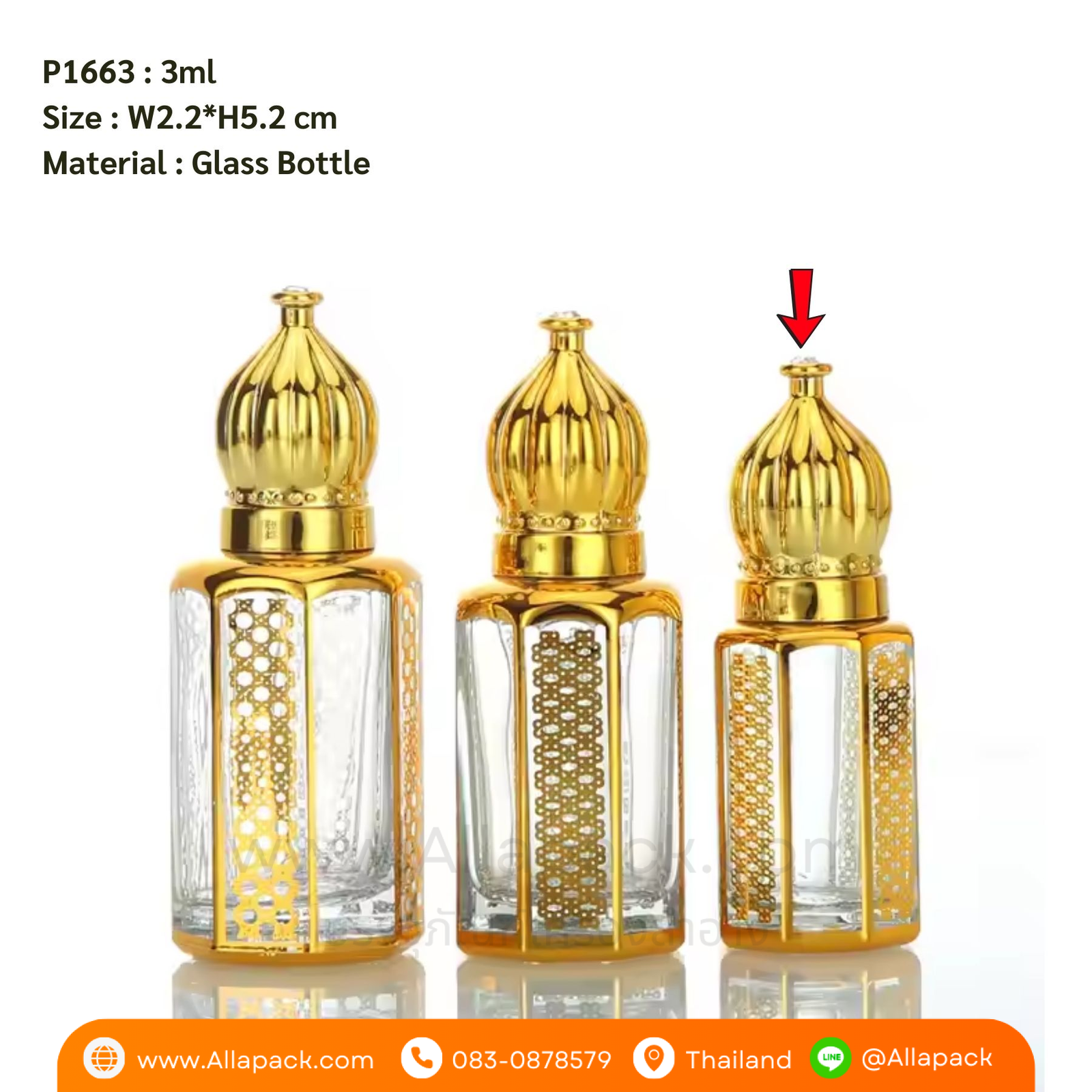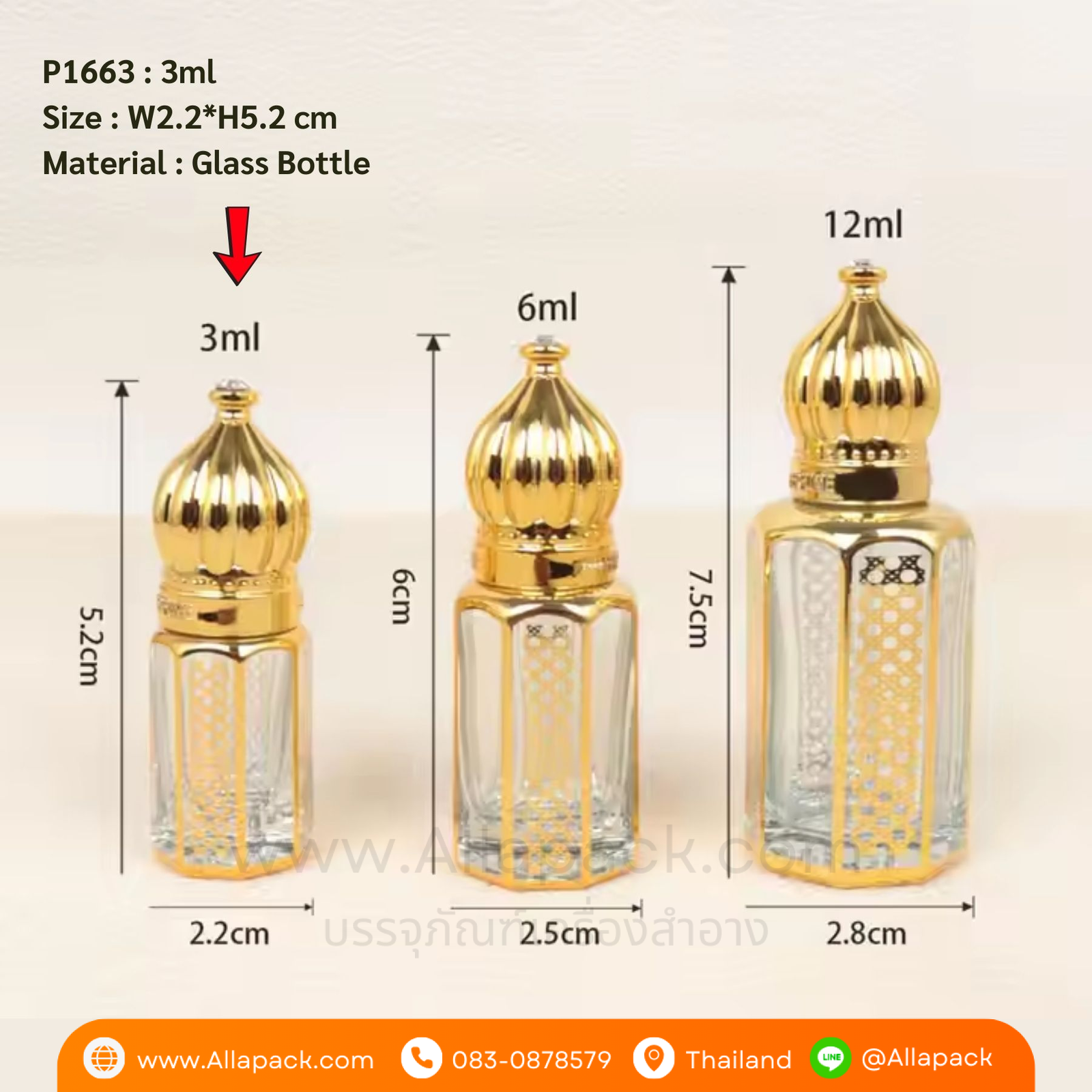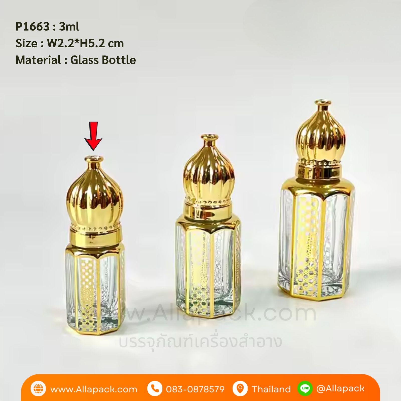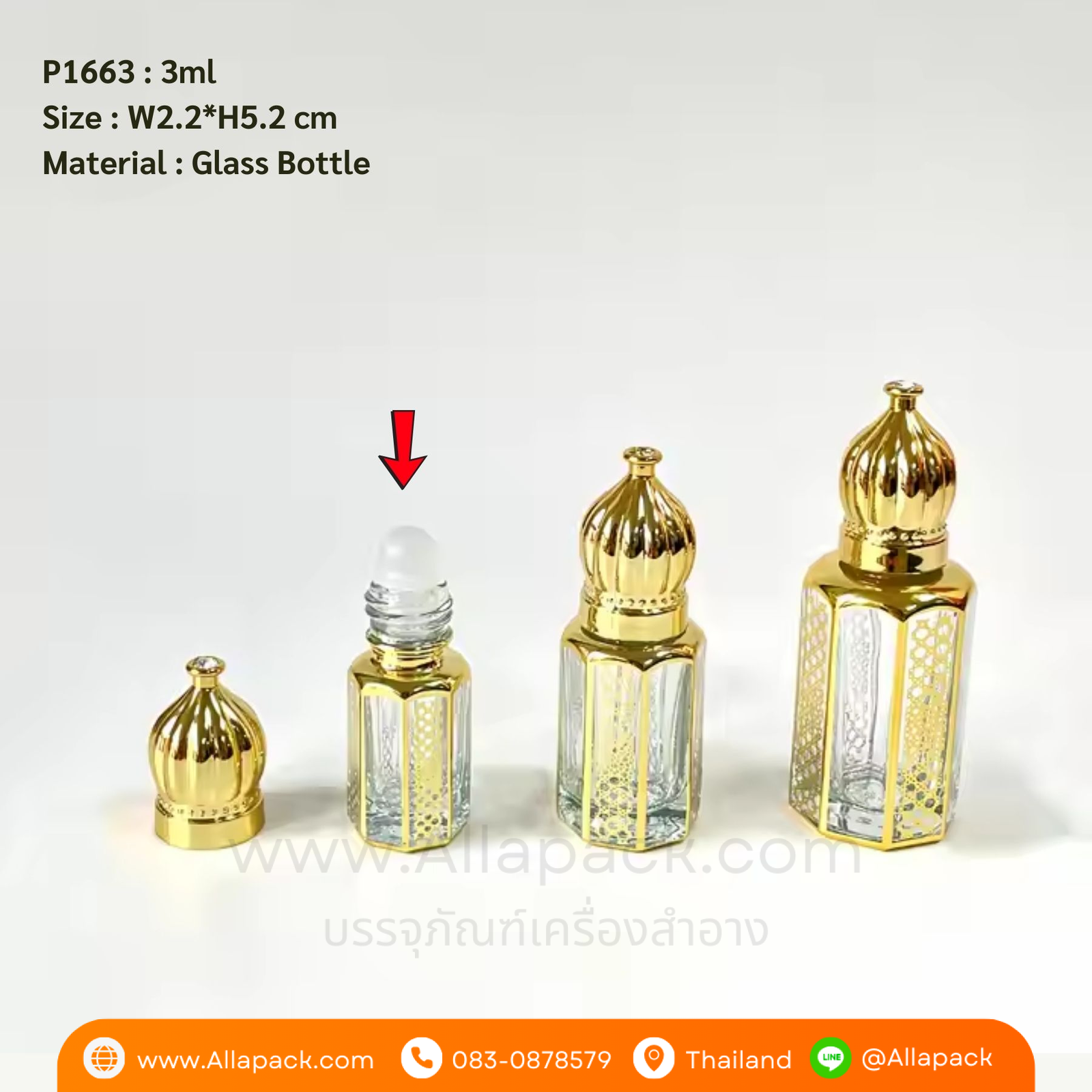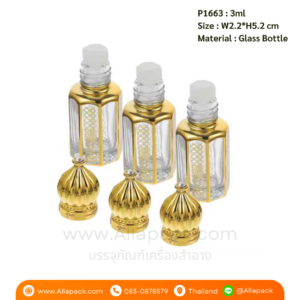 P1663 Roll On Glass Perfume Bottle 3ml ขวดน้ำหอมหัวลูกกลิ้ง 3มล
