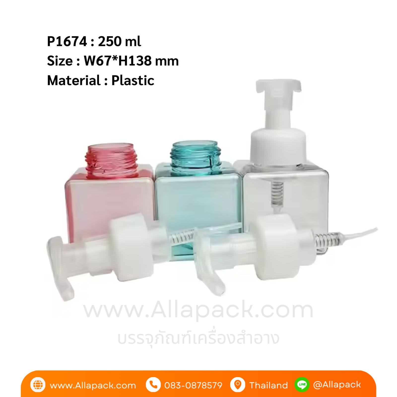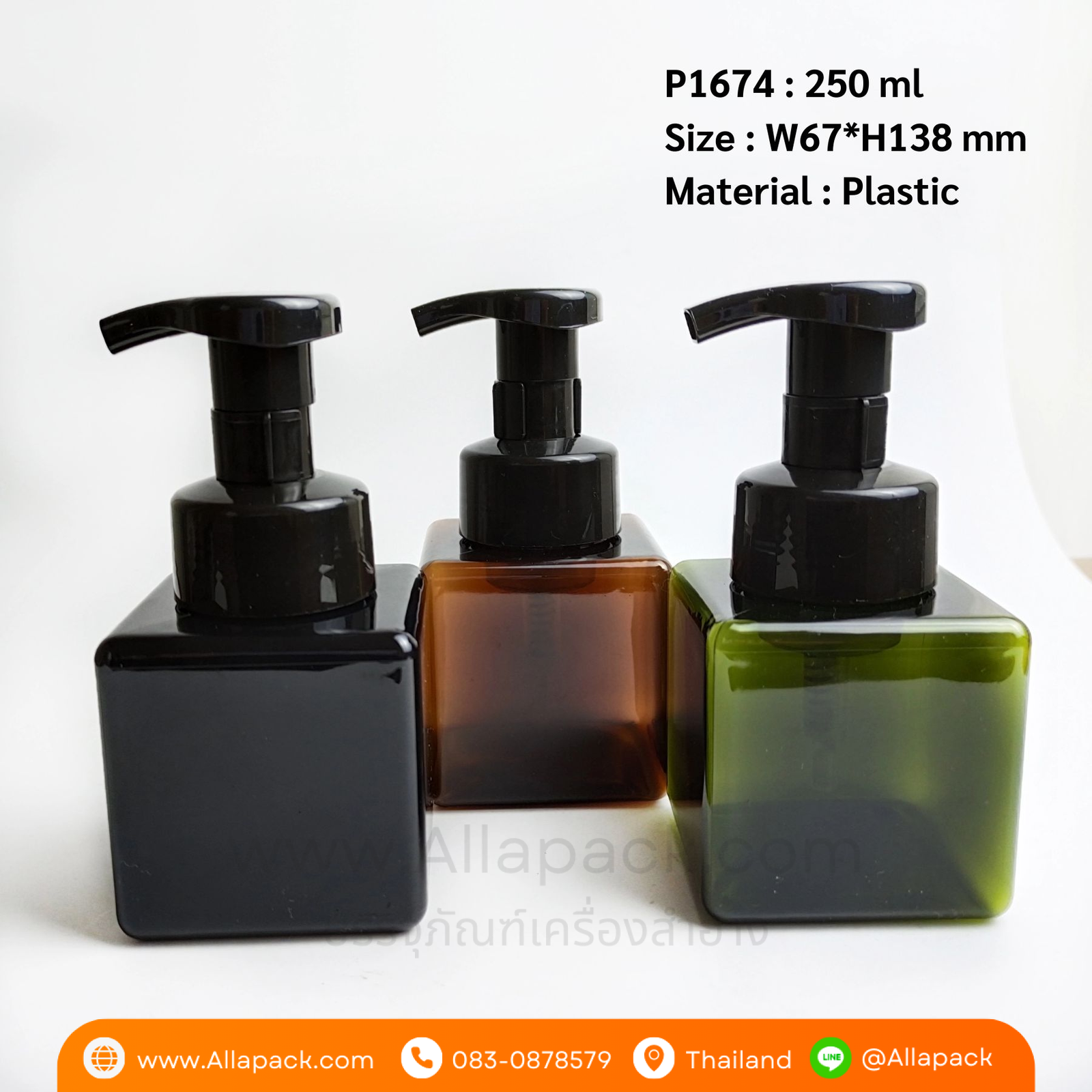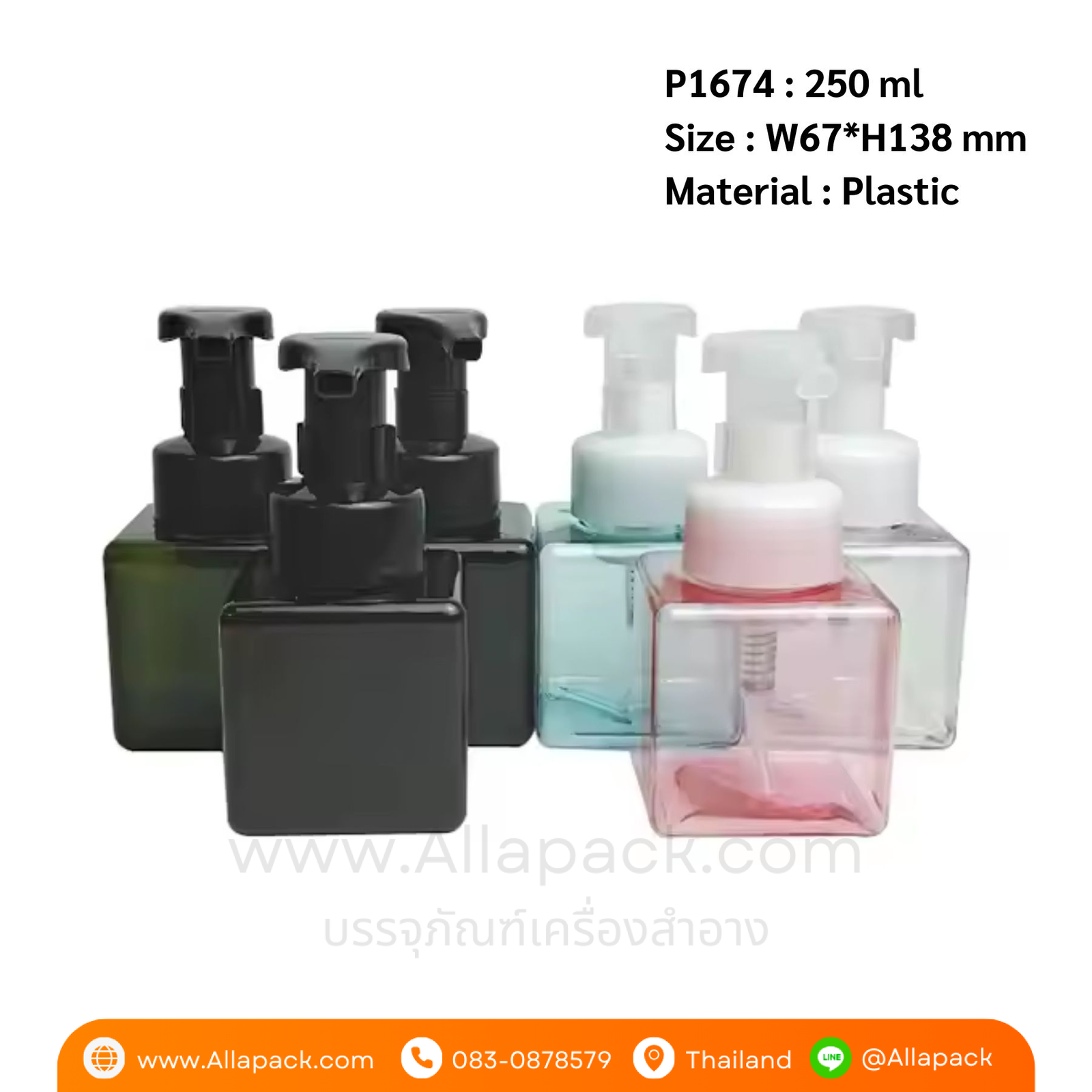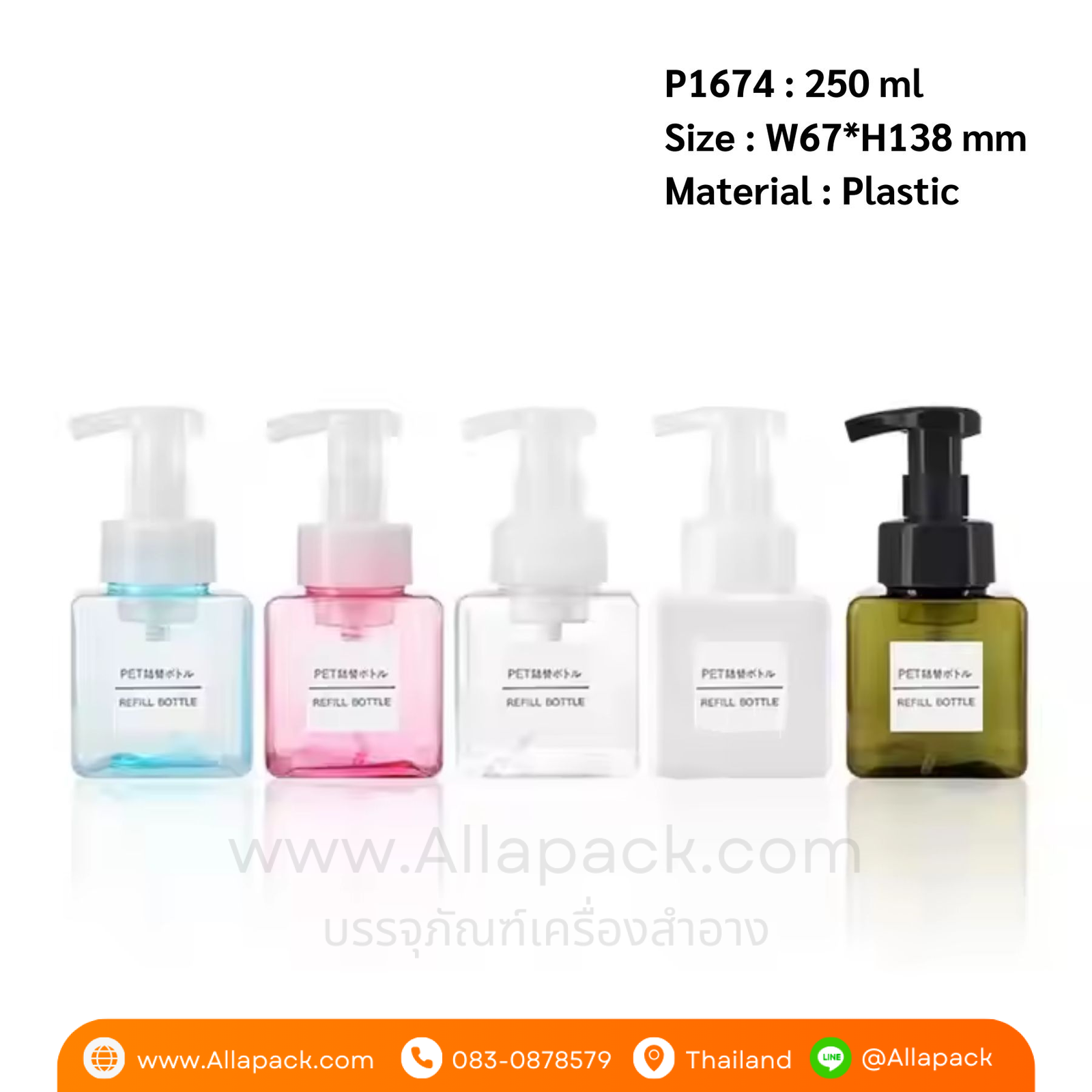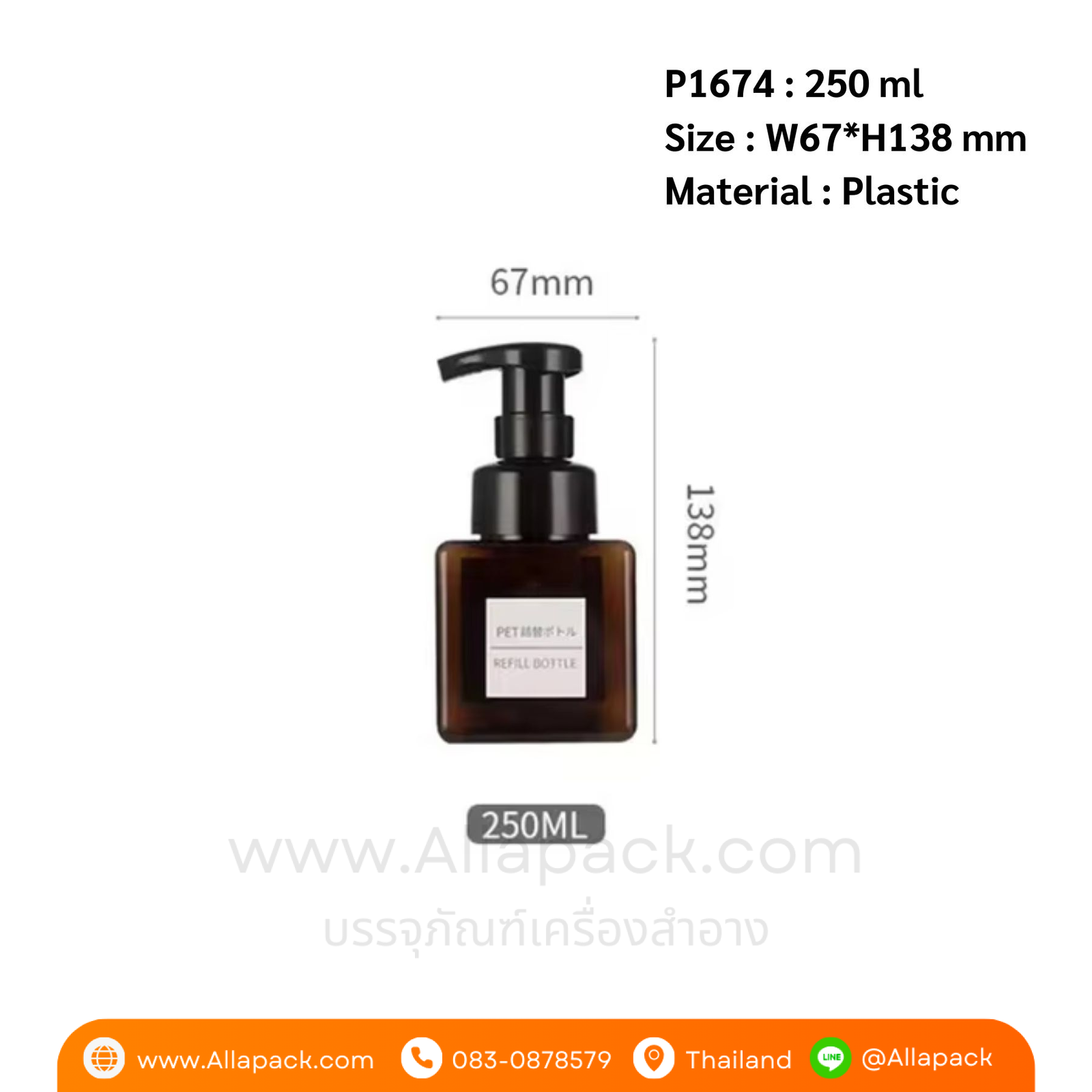 P1674 PETG Plastic Foam Pump Bottle 250 ml ขวดปั๊มโฟม 250 มล