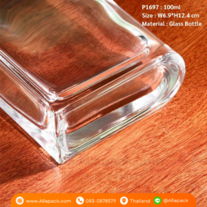 | Shape ลักษณะ | ขวดแก้วใสทรงสีเหลี่ยม |