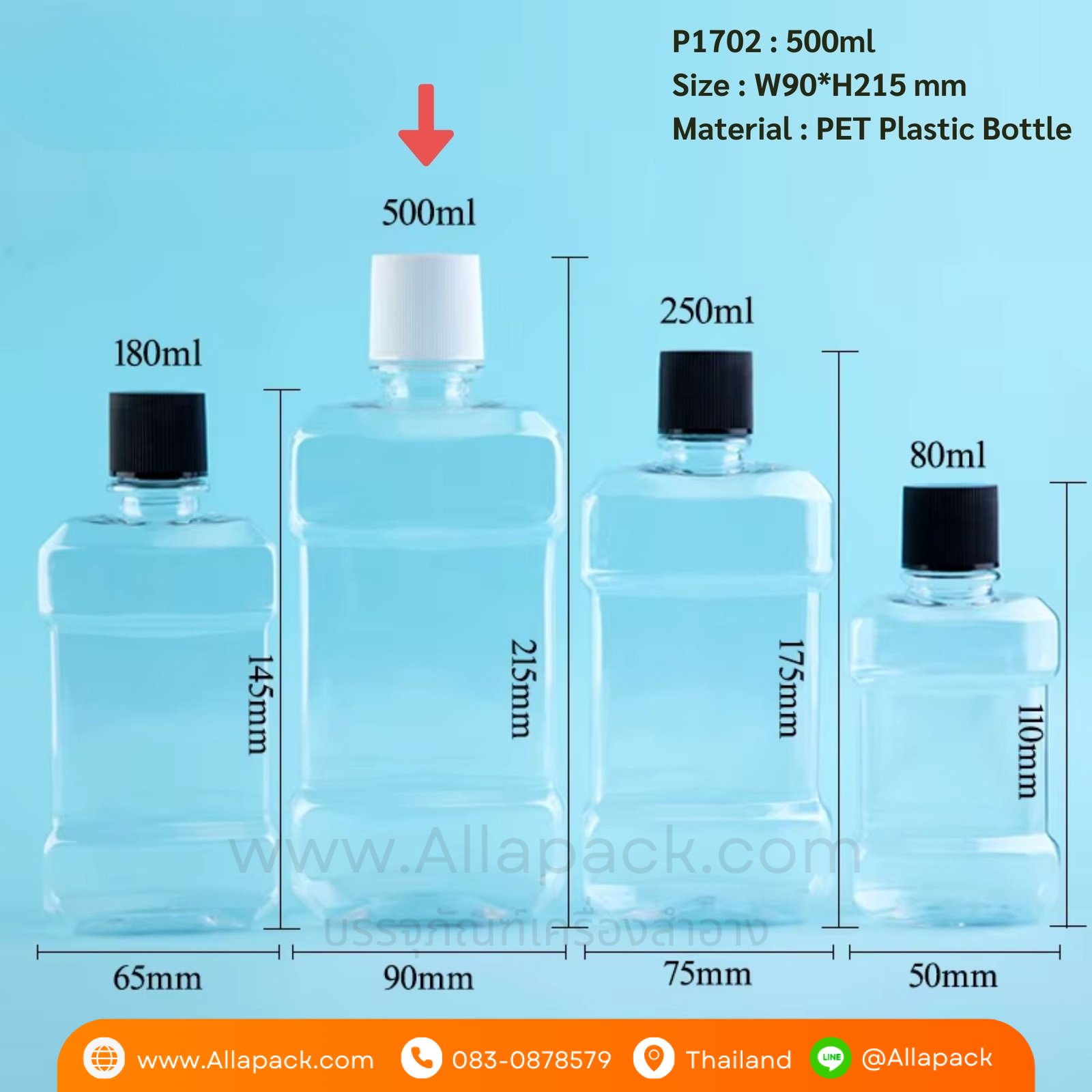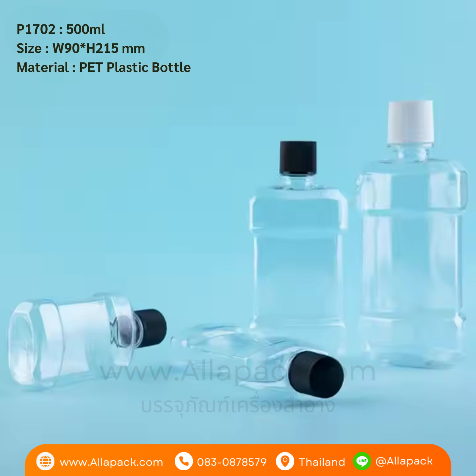 P1702 Plastic Mouthwash Bottles 500ml ขวดน้ำยาบ้วนปาก 500มล