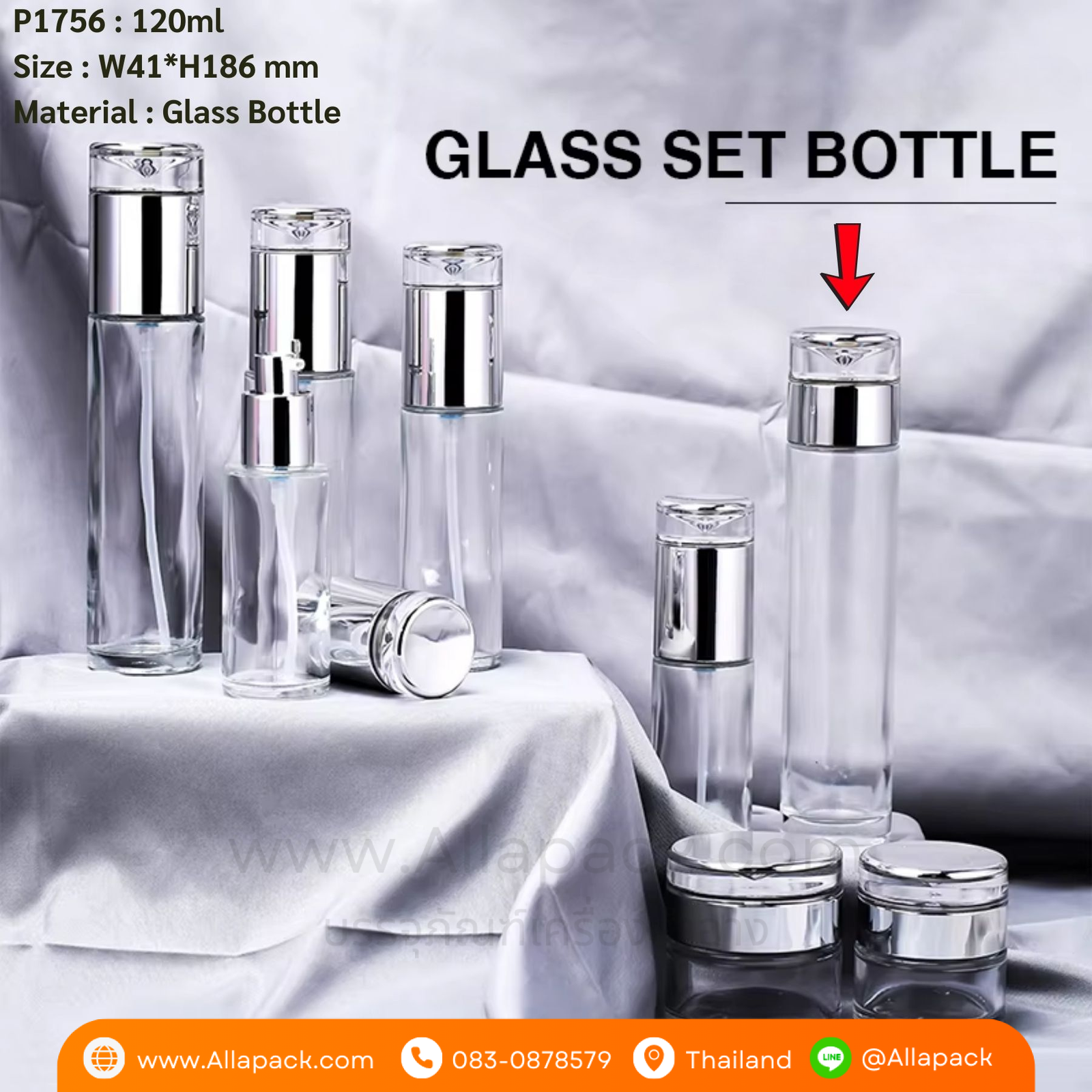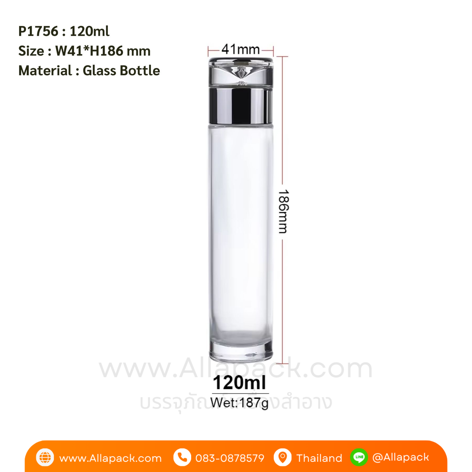 | Shape ลักษณะ | ขวดแก้ใส ทรงกระบอก |