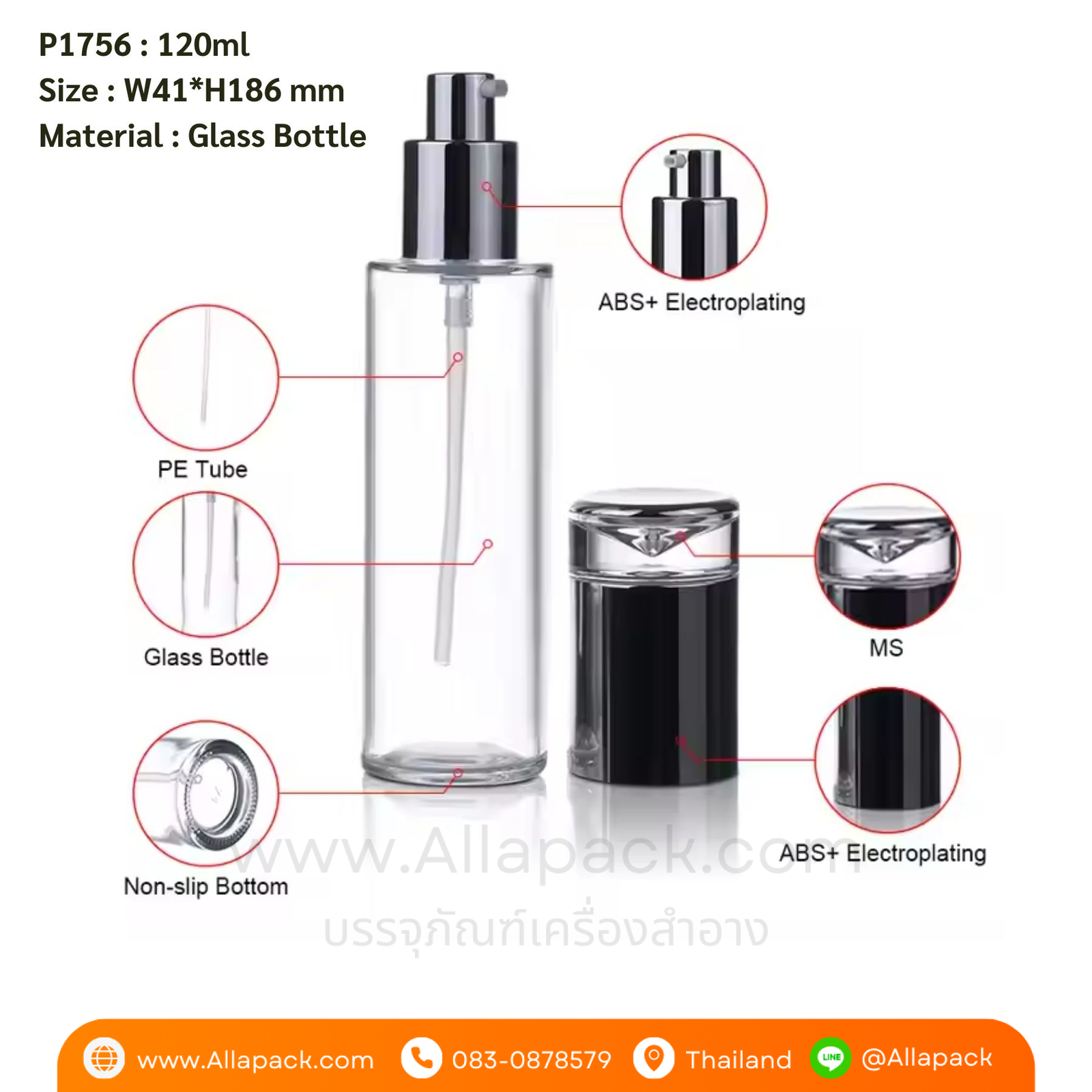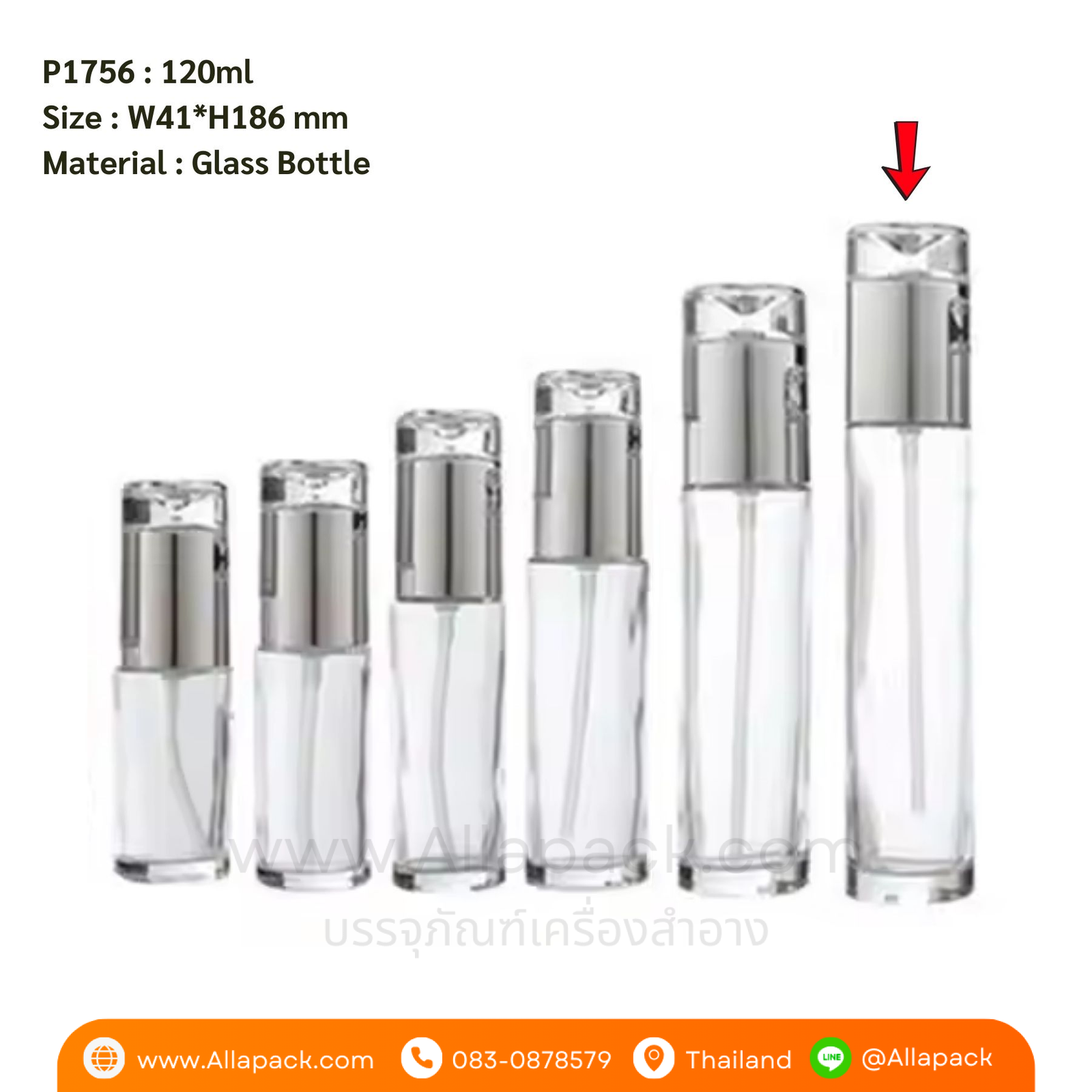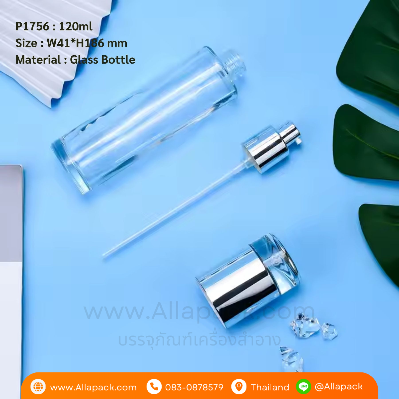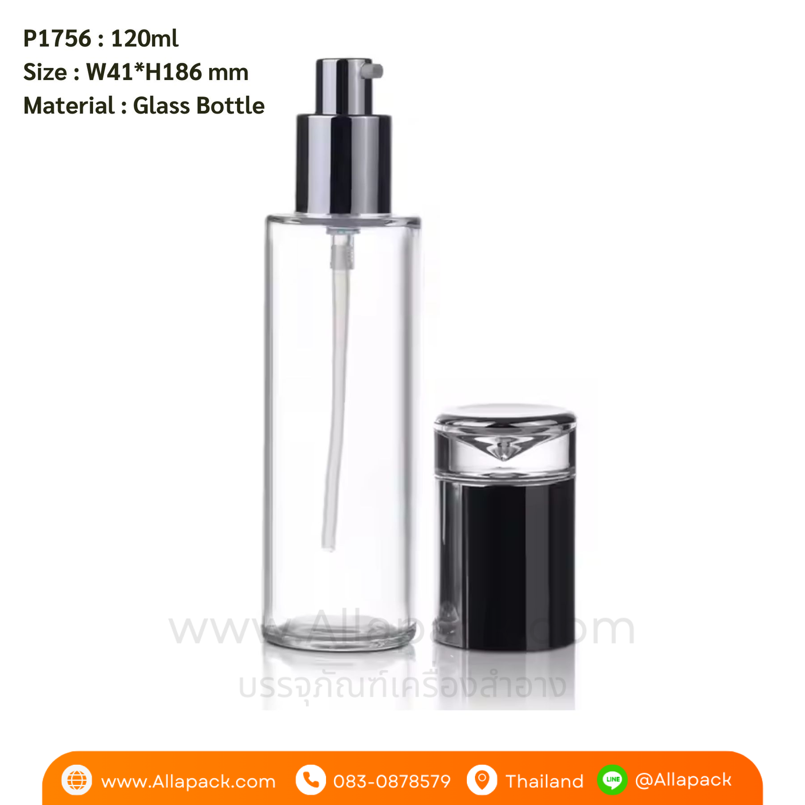 P1756 Clear Glass Bottle 120ml ขวดแก้วหัวปั๊ม 120มล