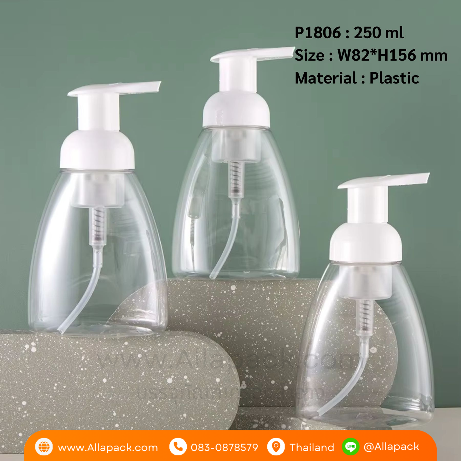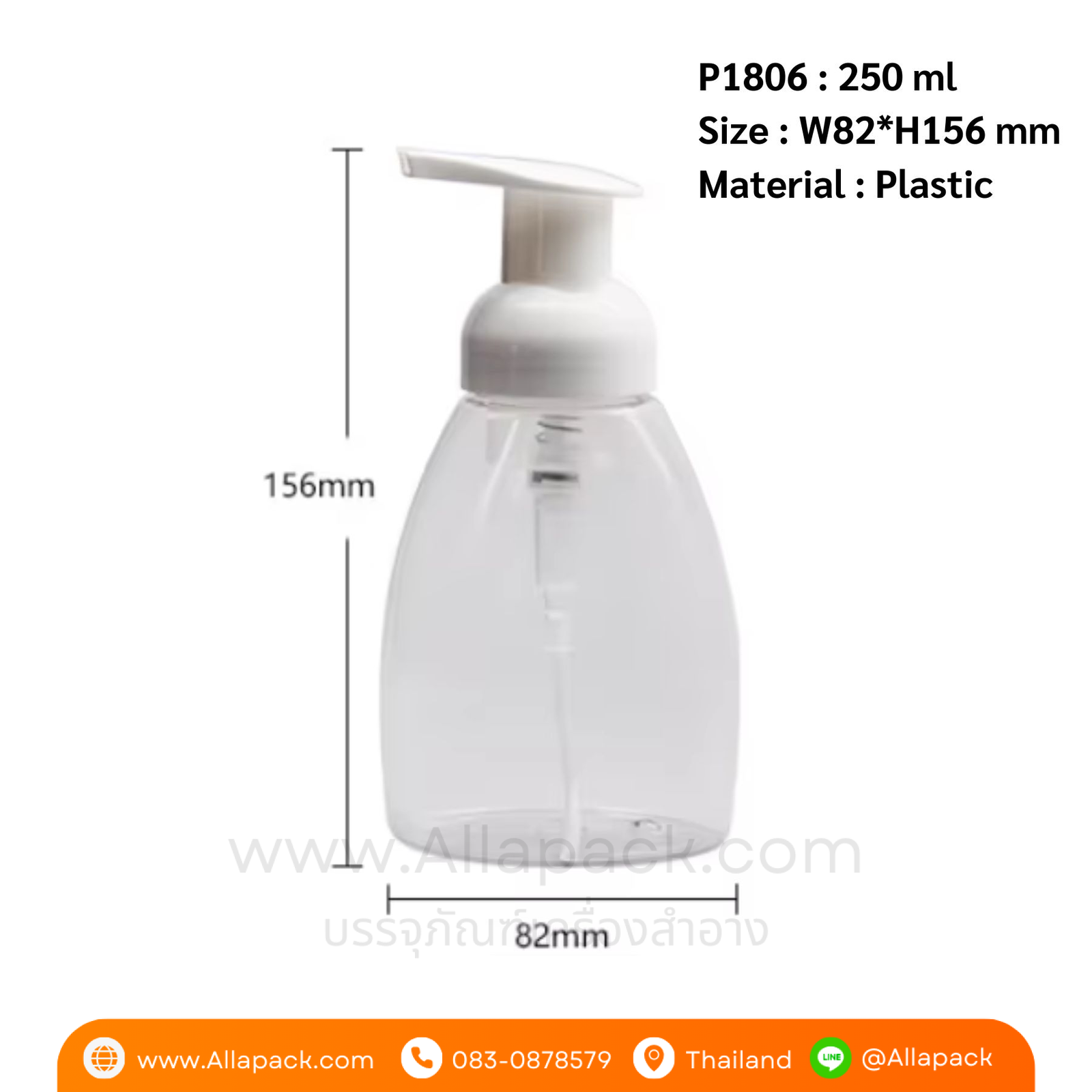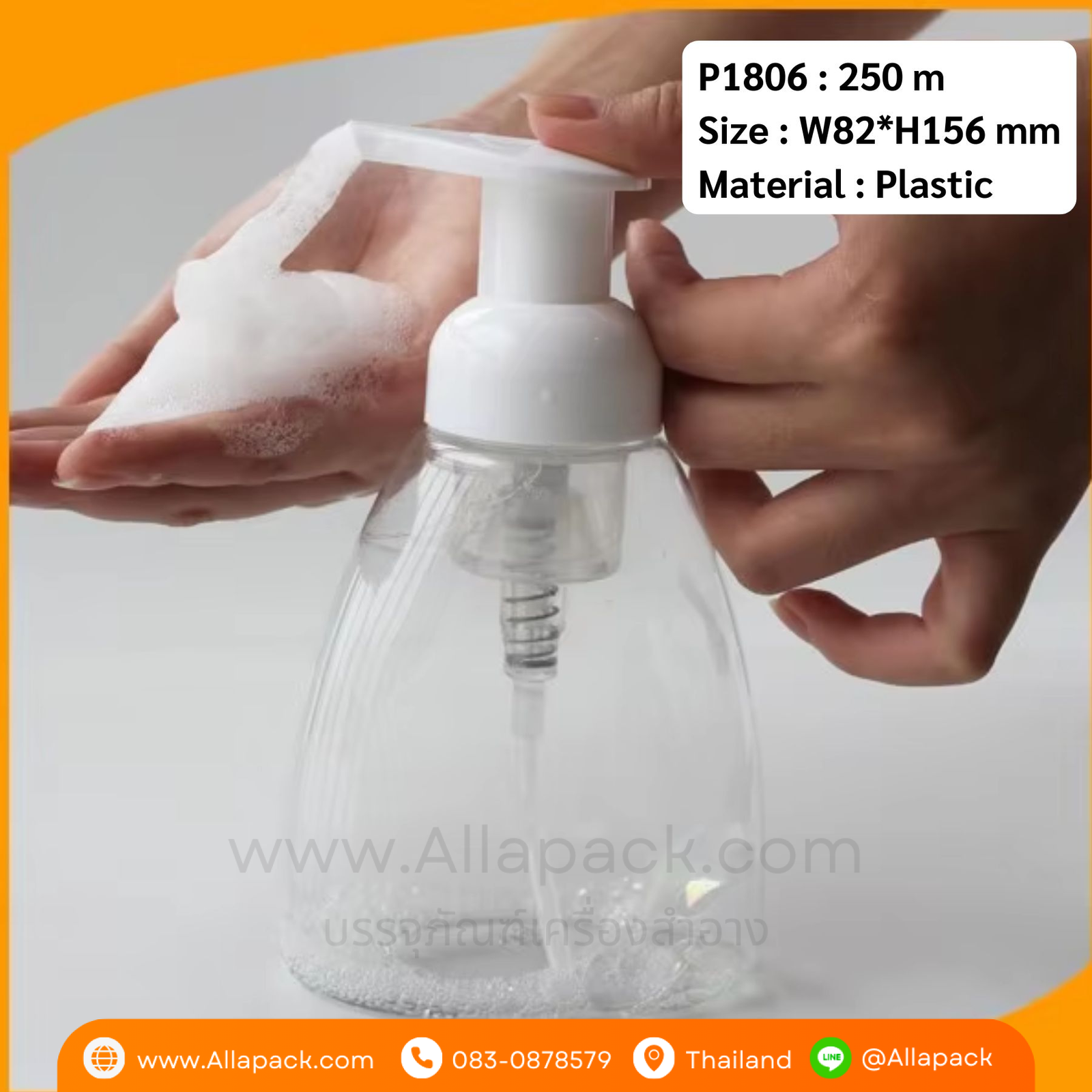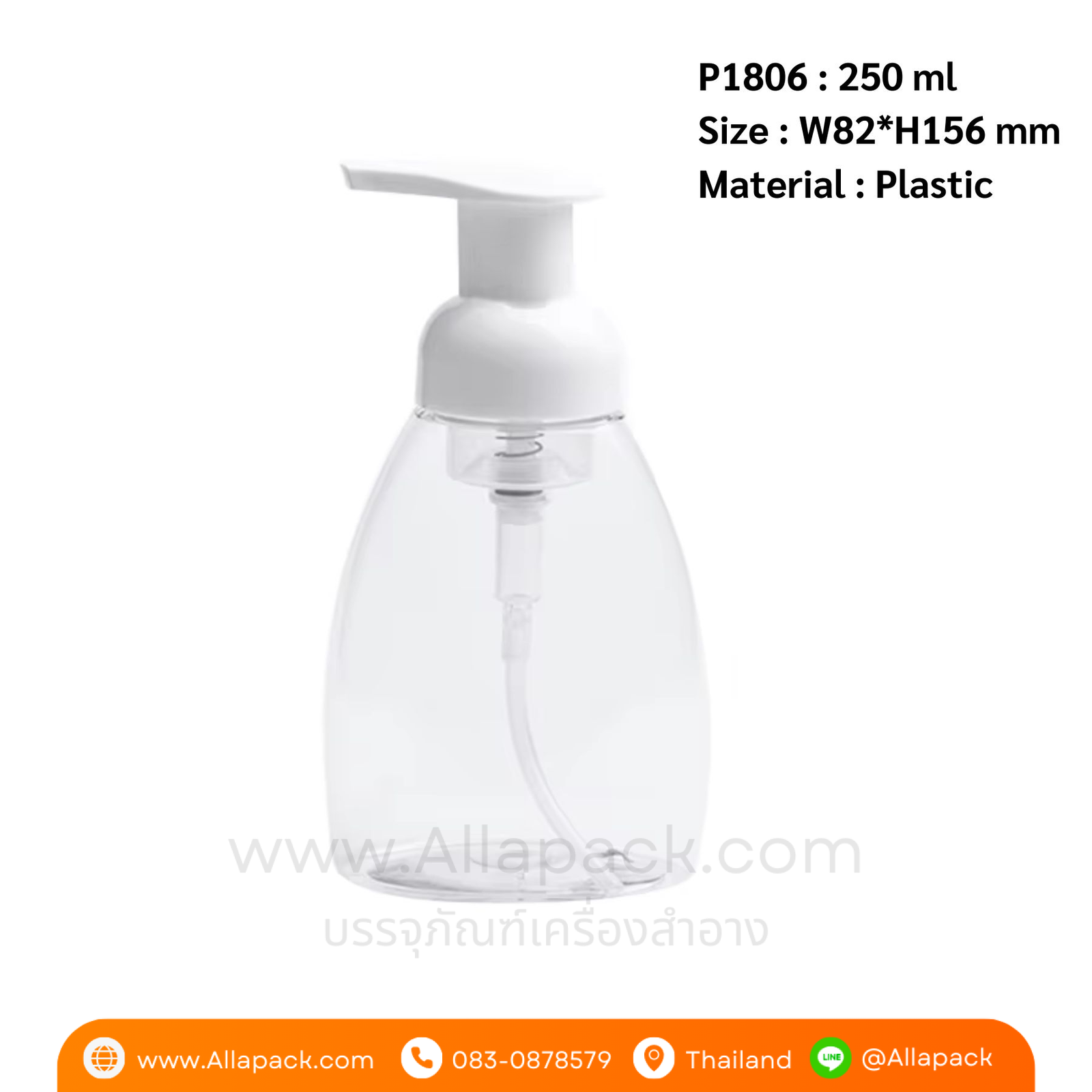 P1806 Foaming Hand Soap Bottle 250 ml with White Foamer Pump ขวดปั๊มโฟมมูส 250 มล