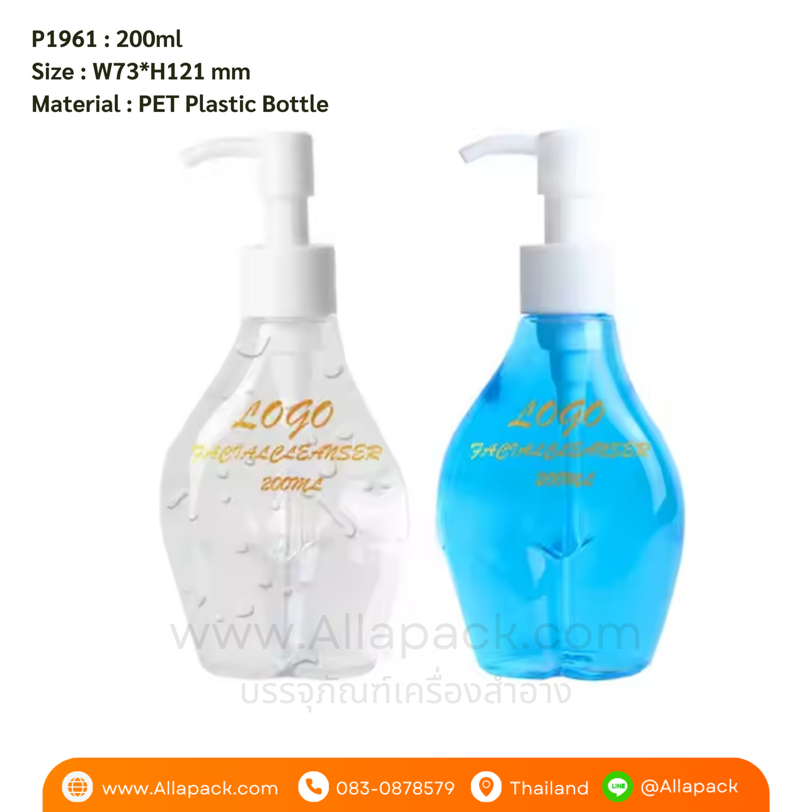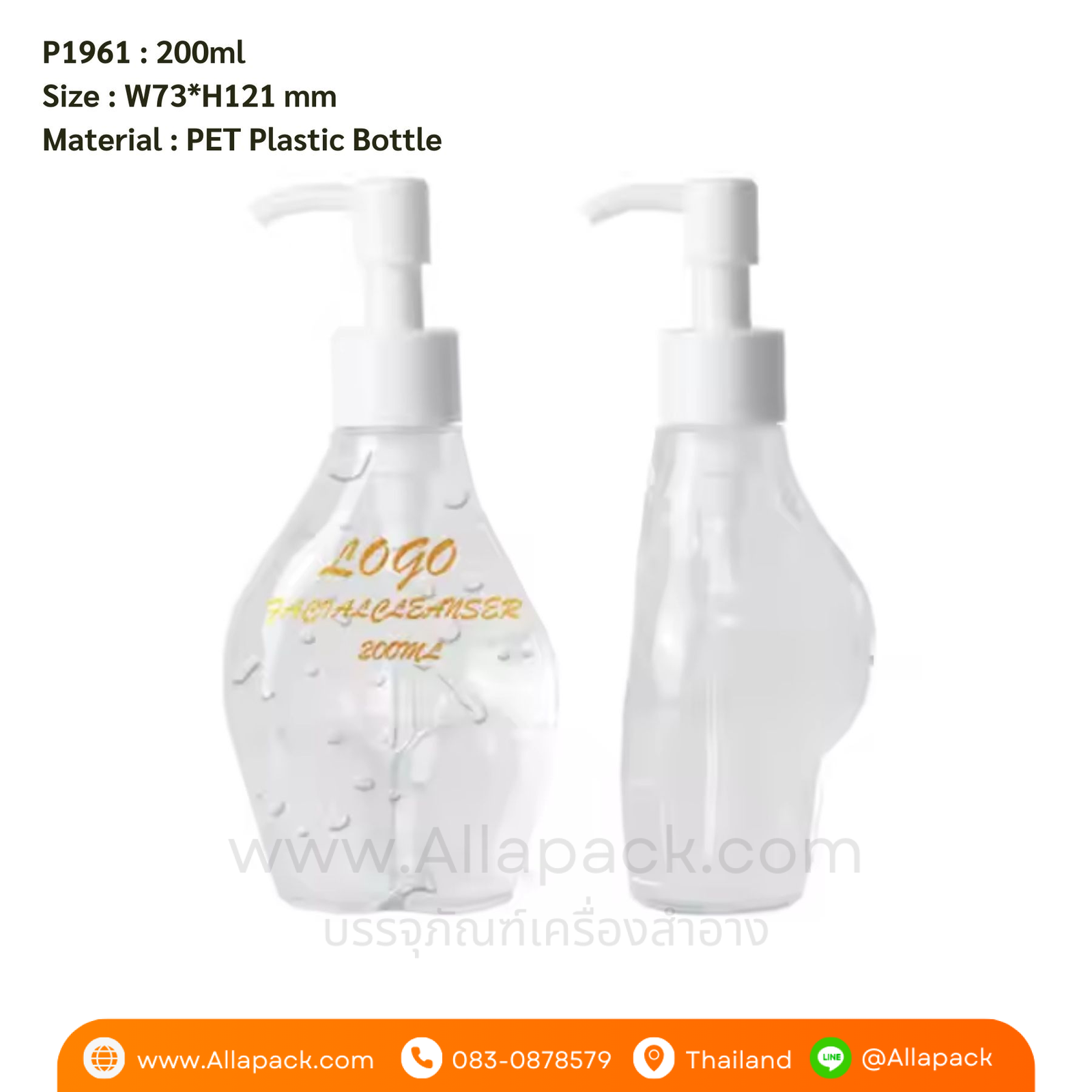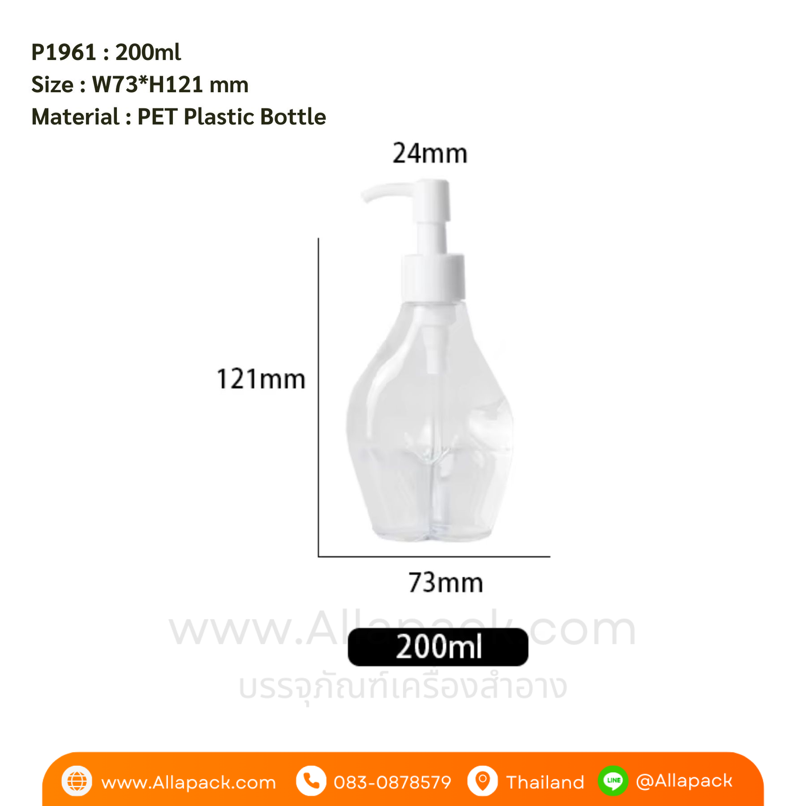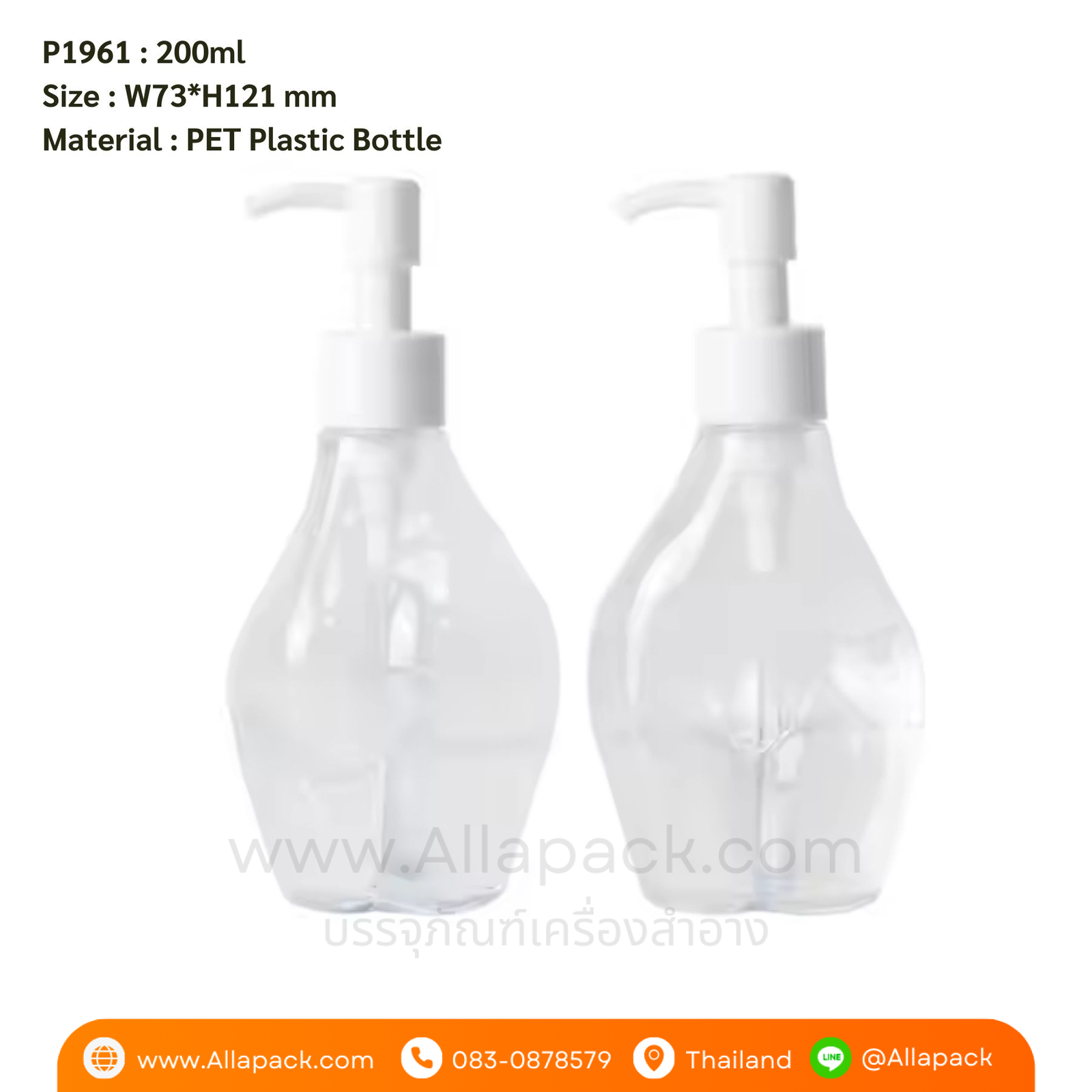 P1961 Clear Empty Pump Bottle 200 ml ขวดปั๊มพลาสติก 200มล