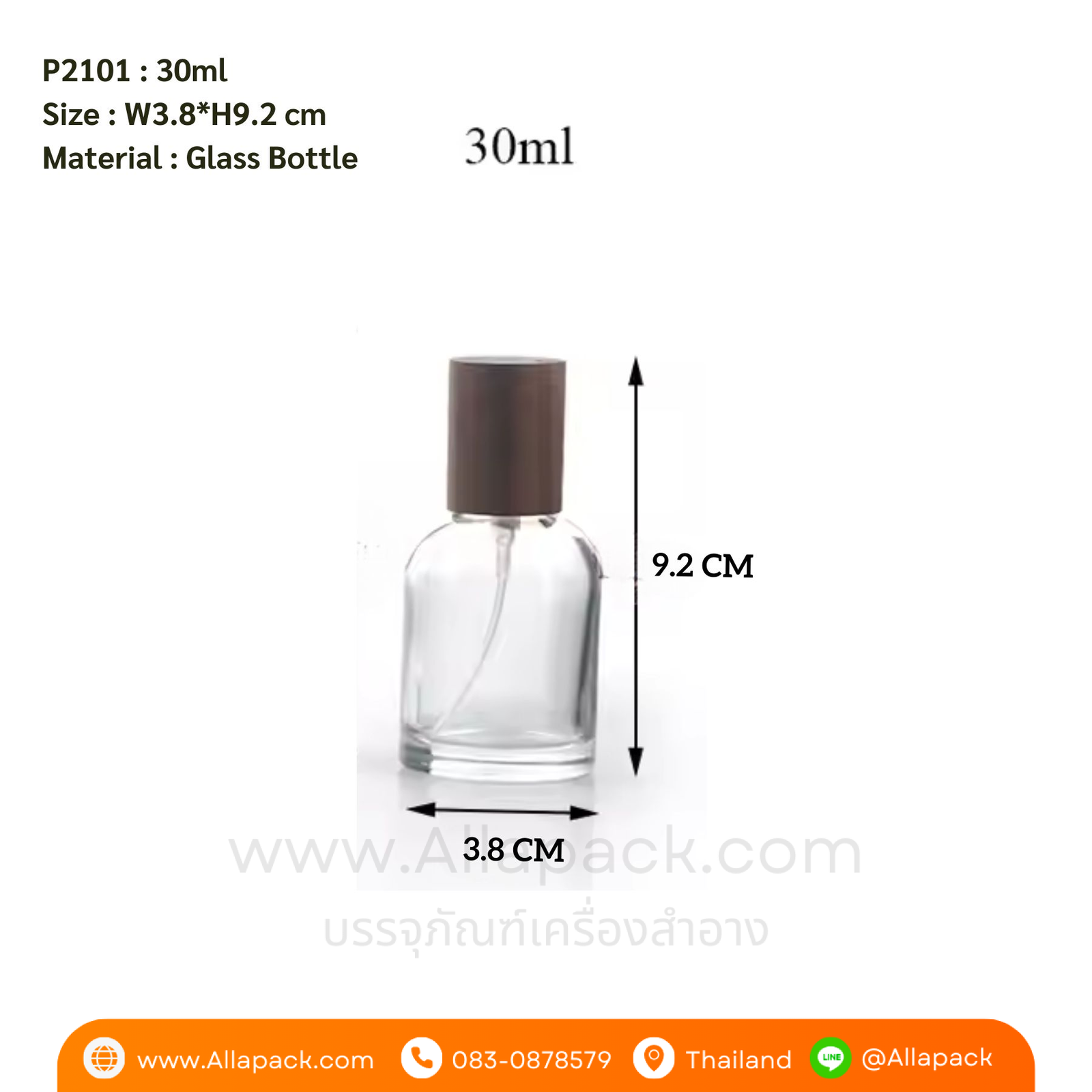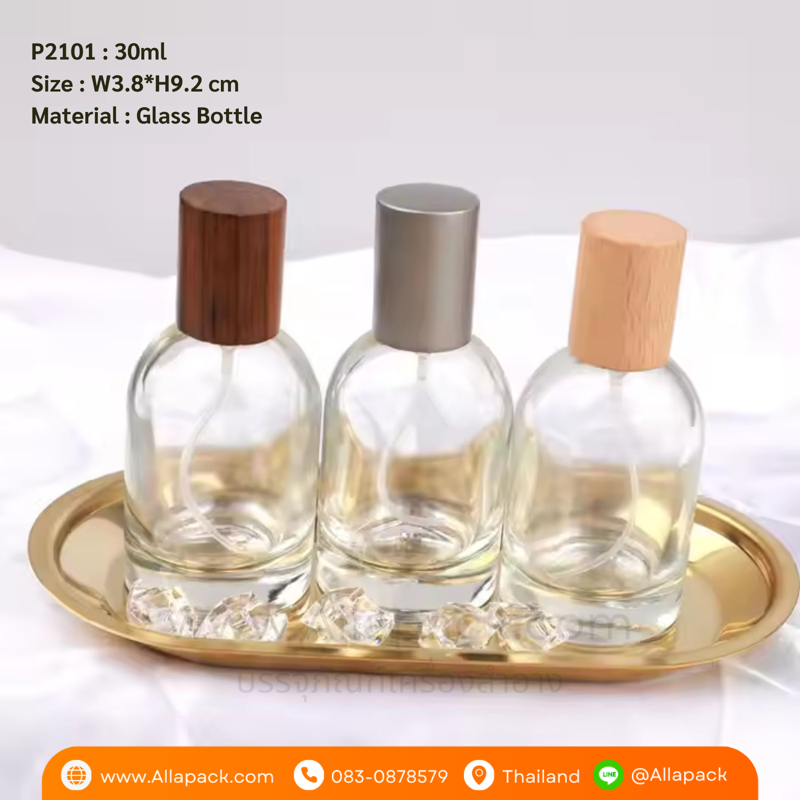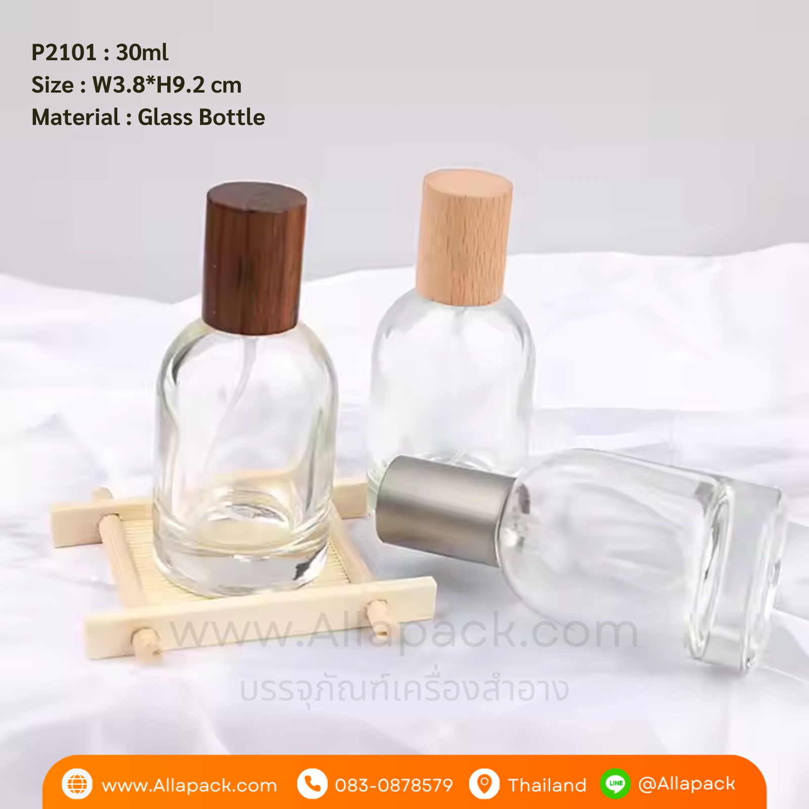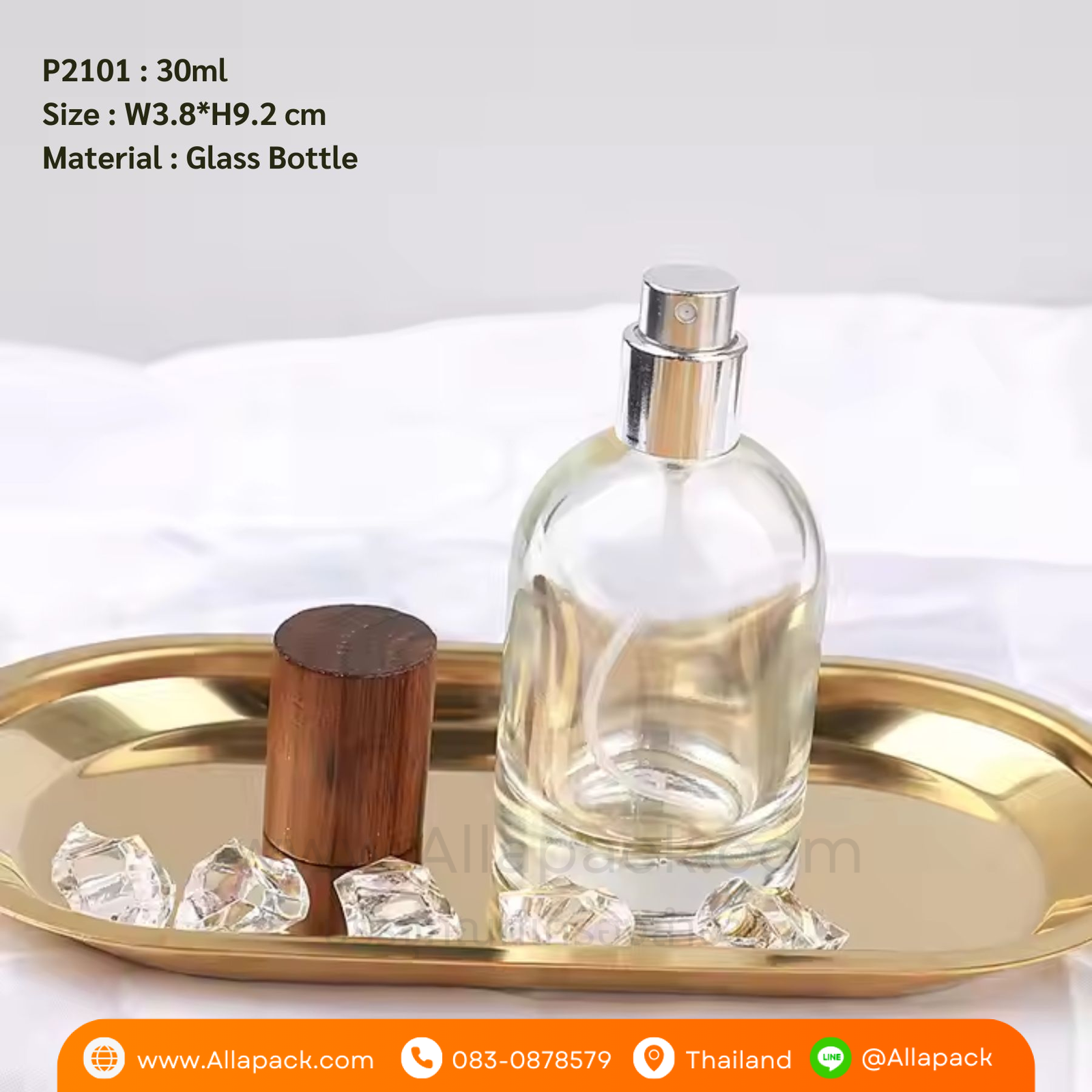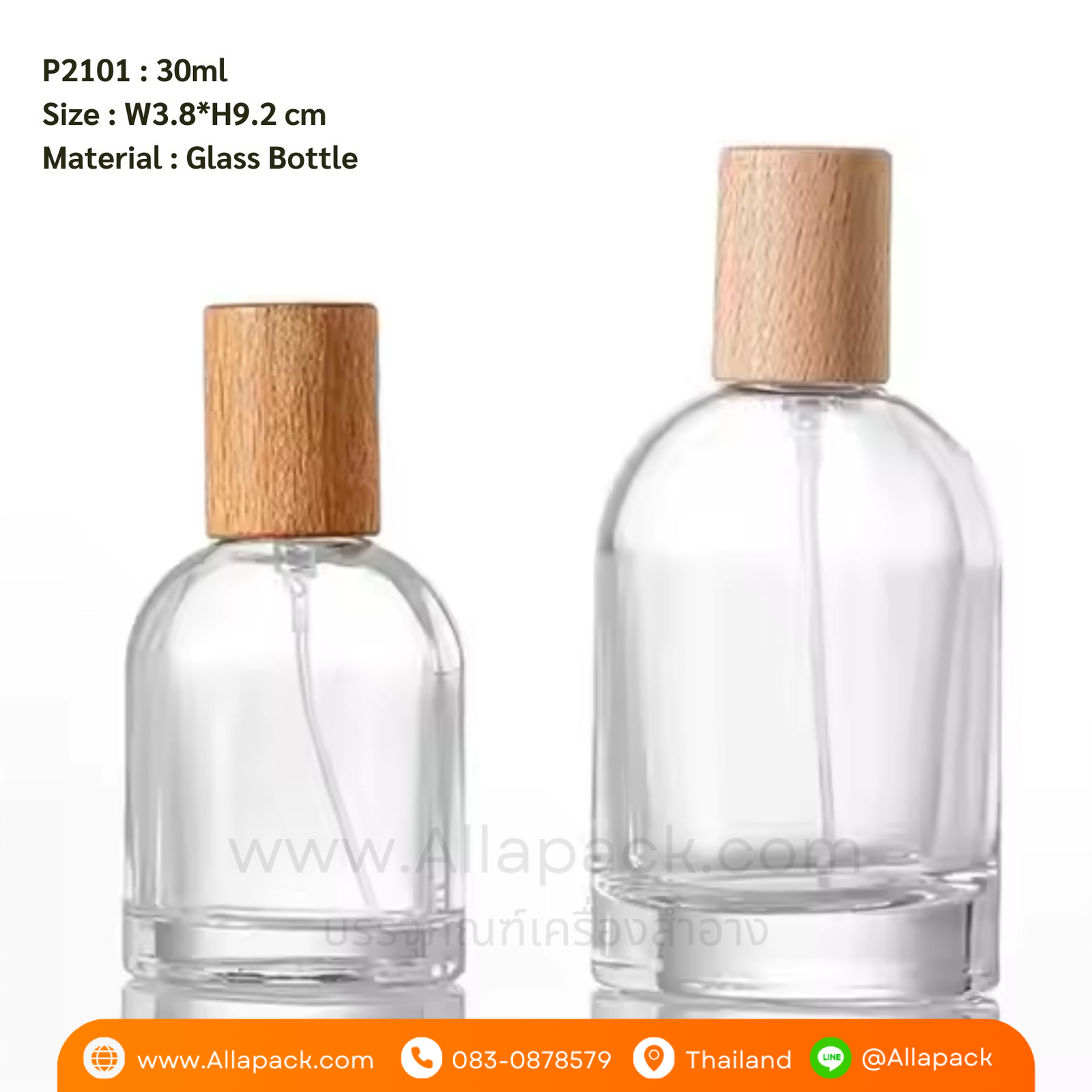 P2101 Empty Transparent Glass Perfume Bottle 30ml ขวดน้ำหอม(ฝาไม้) 30มล