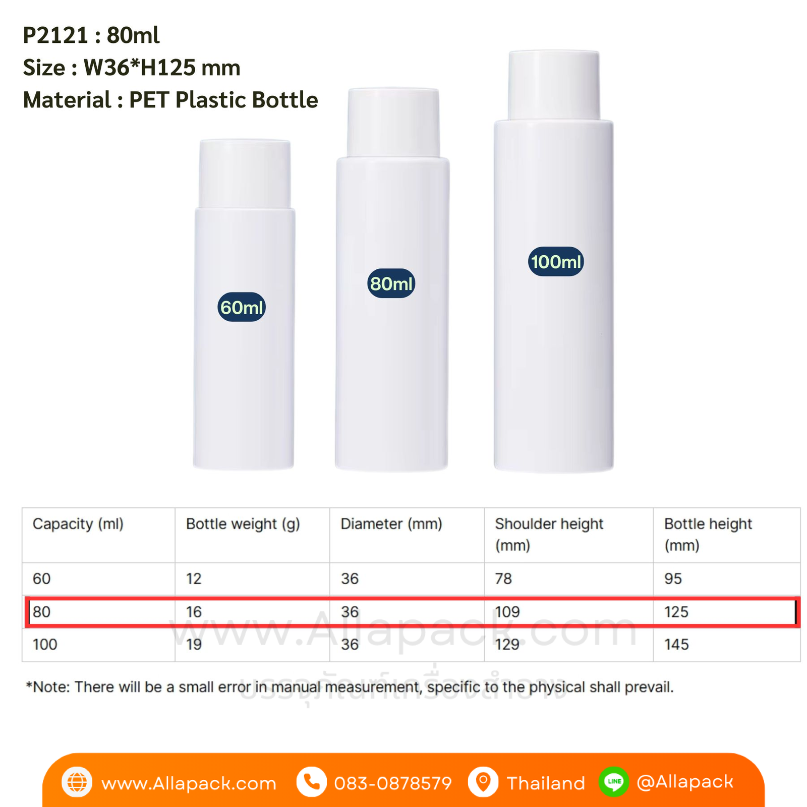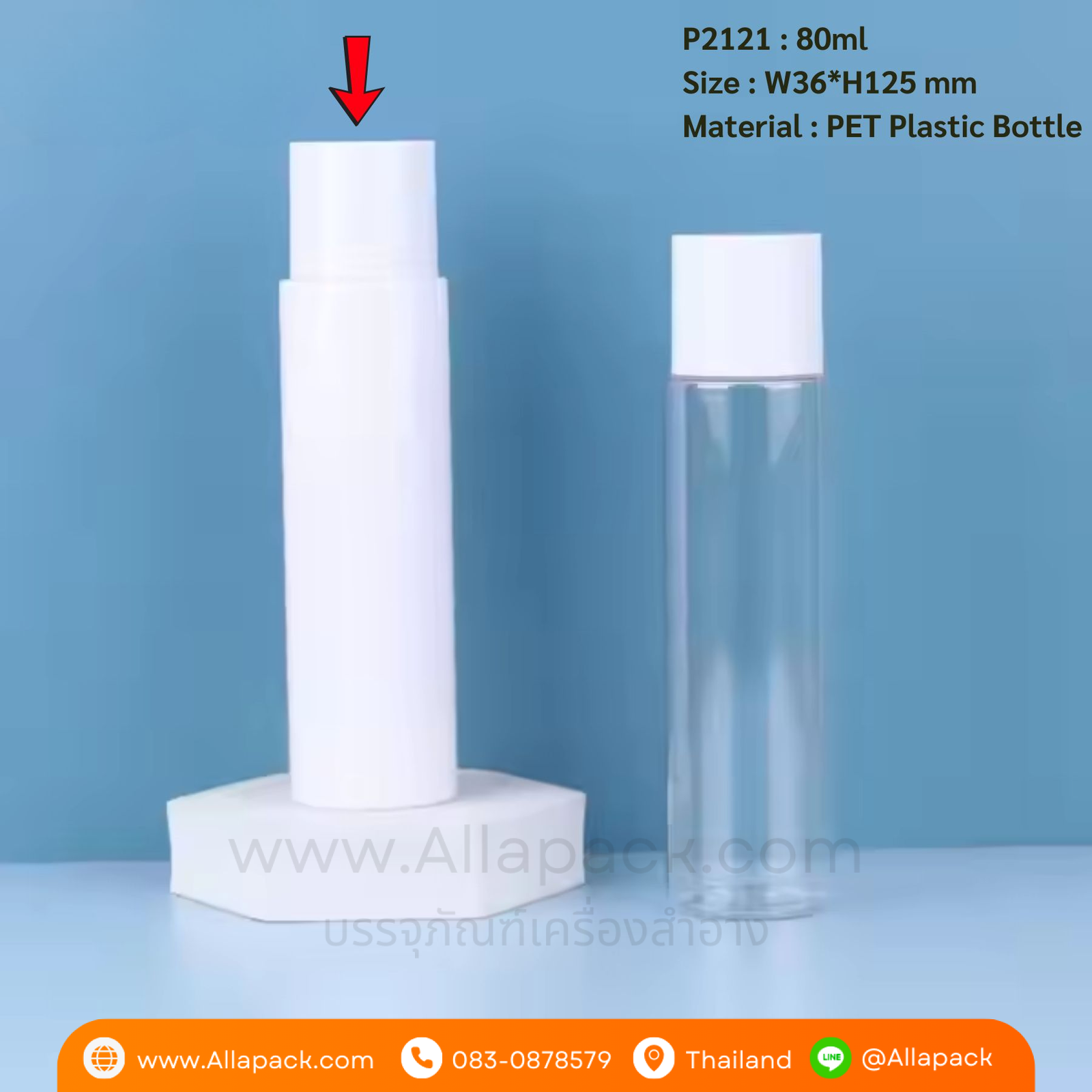 P2121 White PET Plastic Bottle 80ml ขวดพลาสติก 80มล