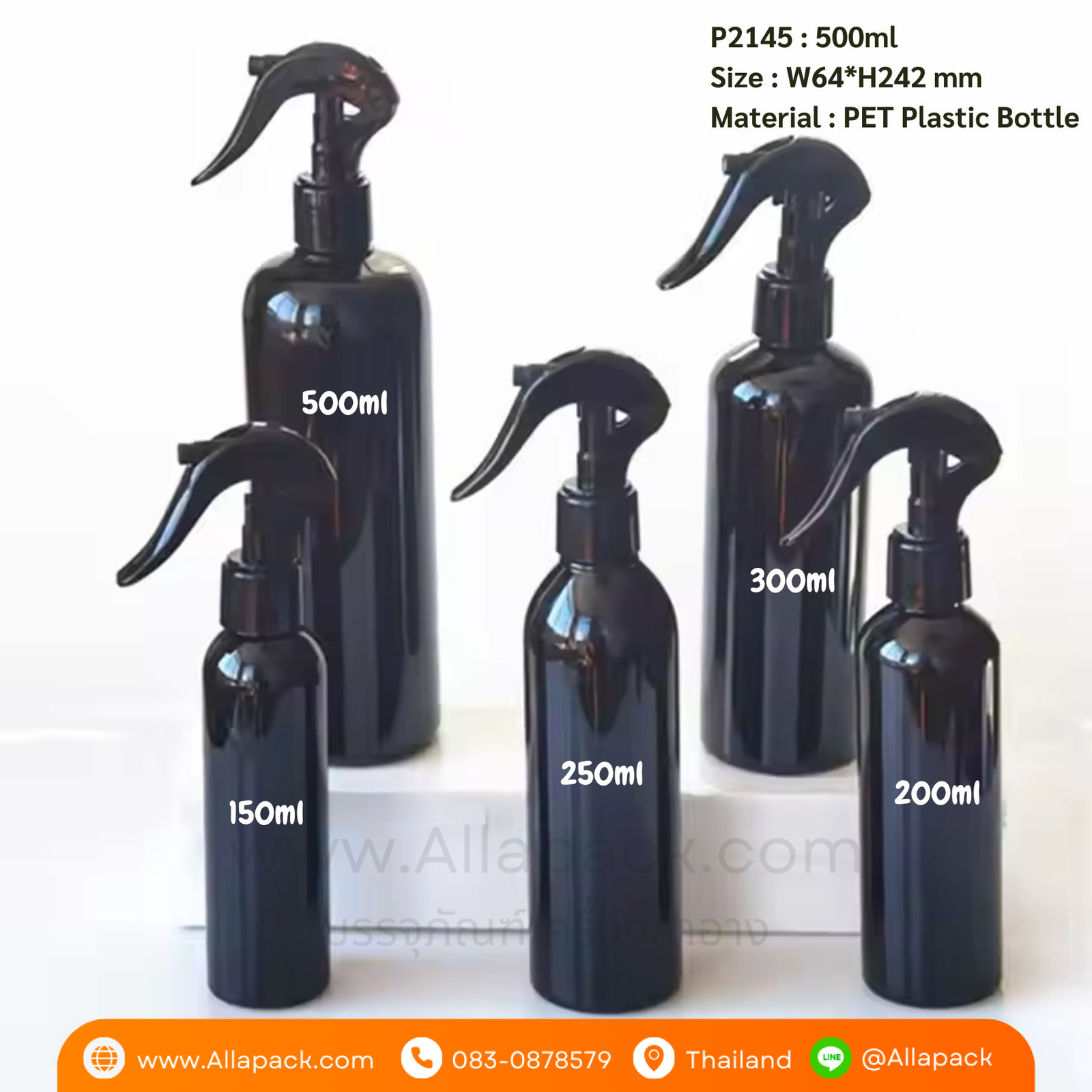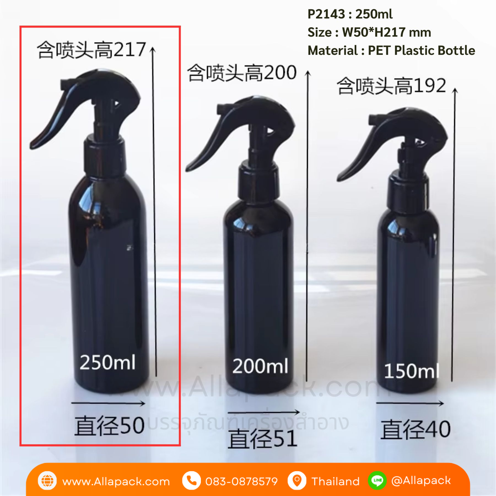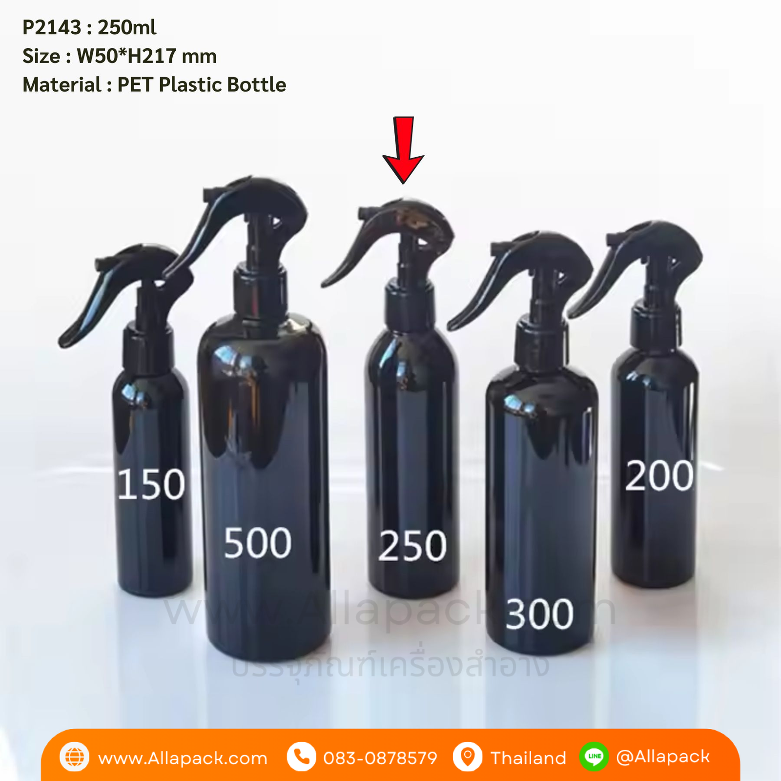 P2143 Black Bottle with Trigger Pump PET Plastic Spray Bottle 250ml ขวดสเปรย์สีดำ 250มล