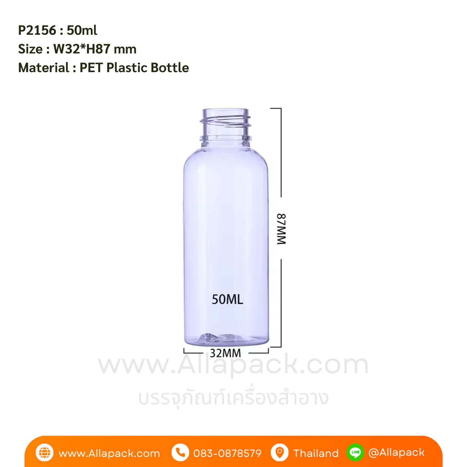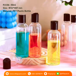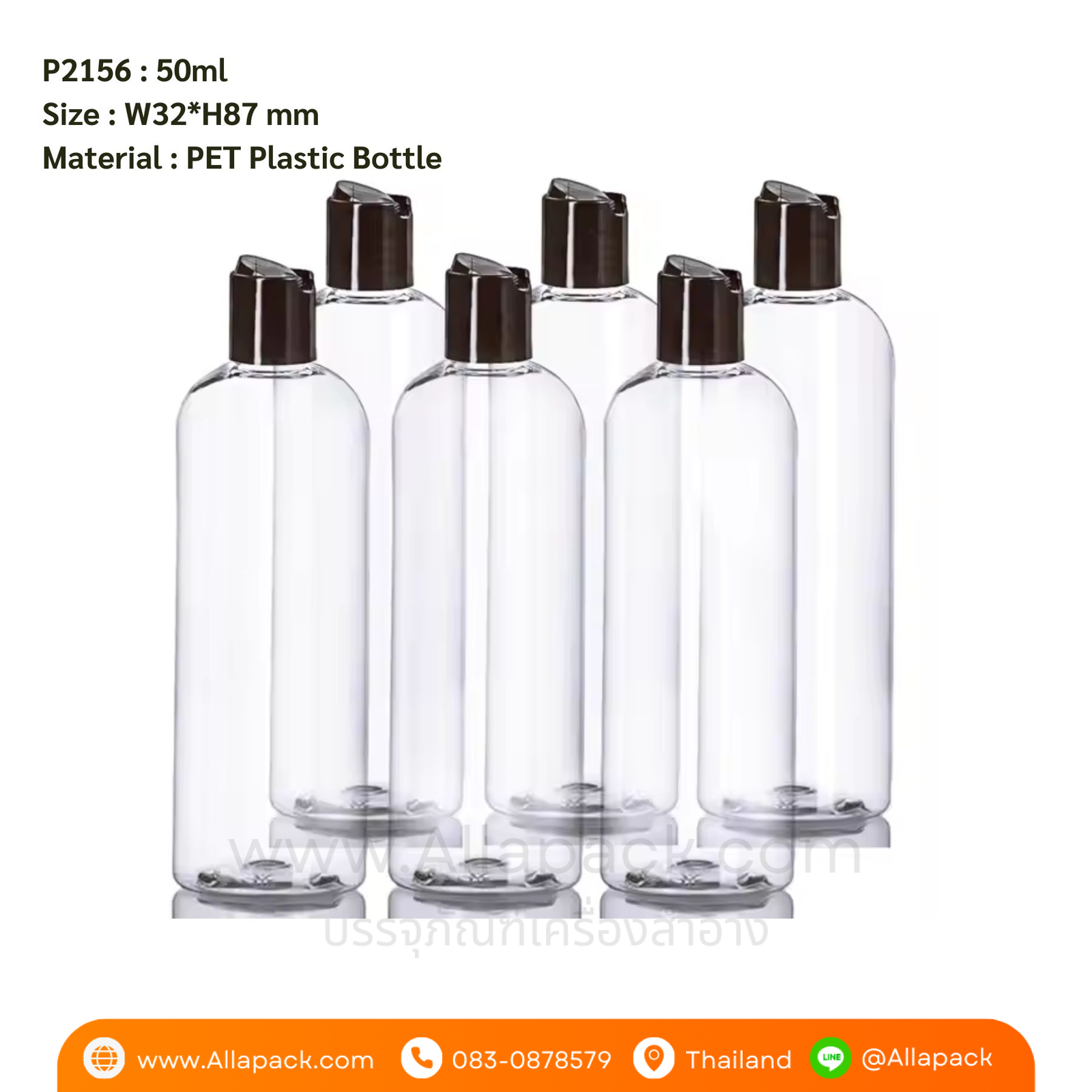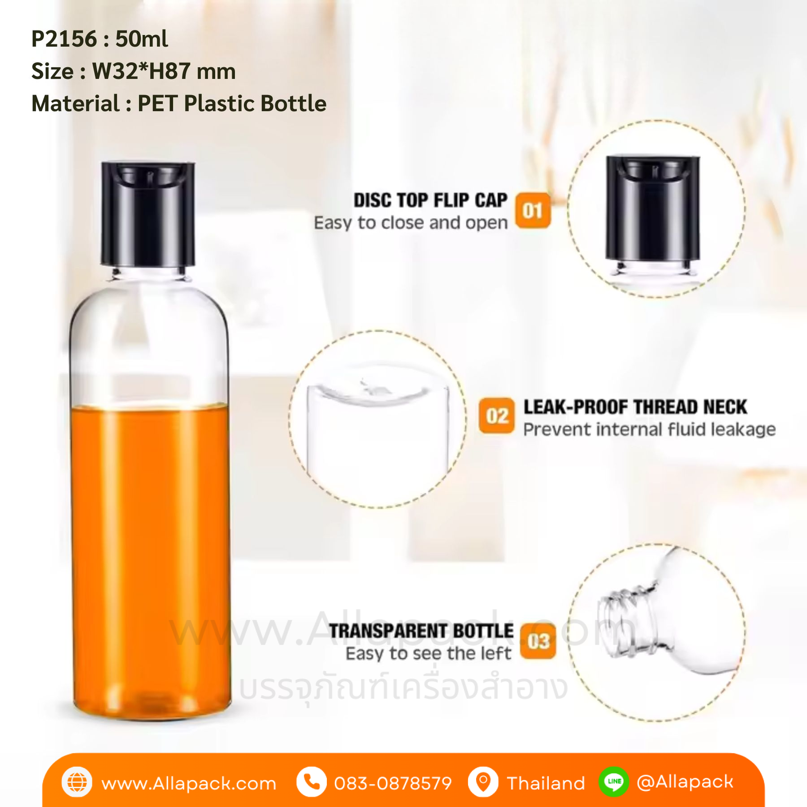 P2156 Black Press Cover Plastic Bottle 50ml ขวดพลาสติกใสฝาฟลิบ 50 มล
