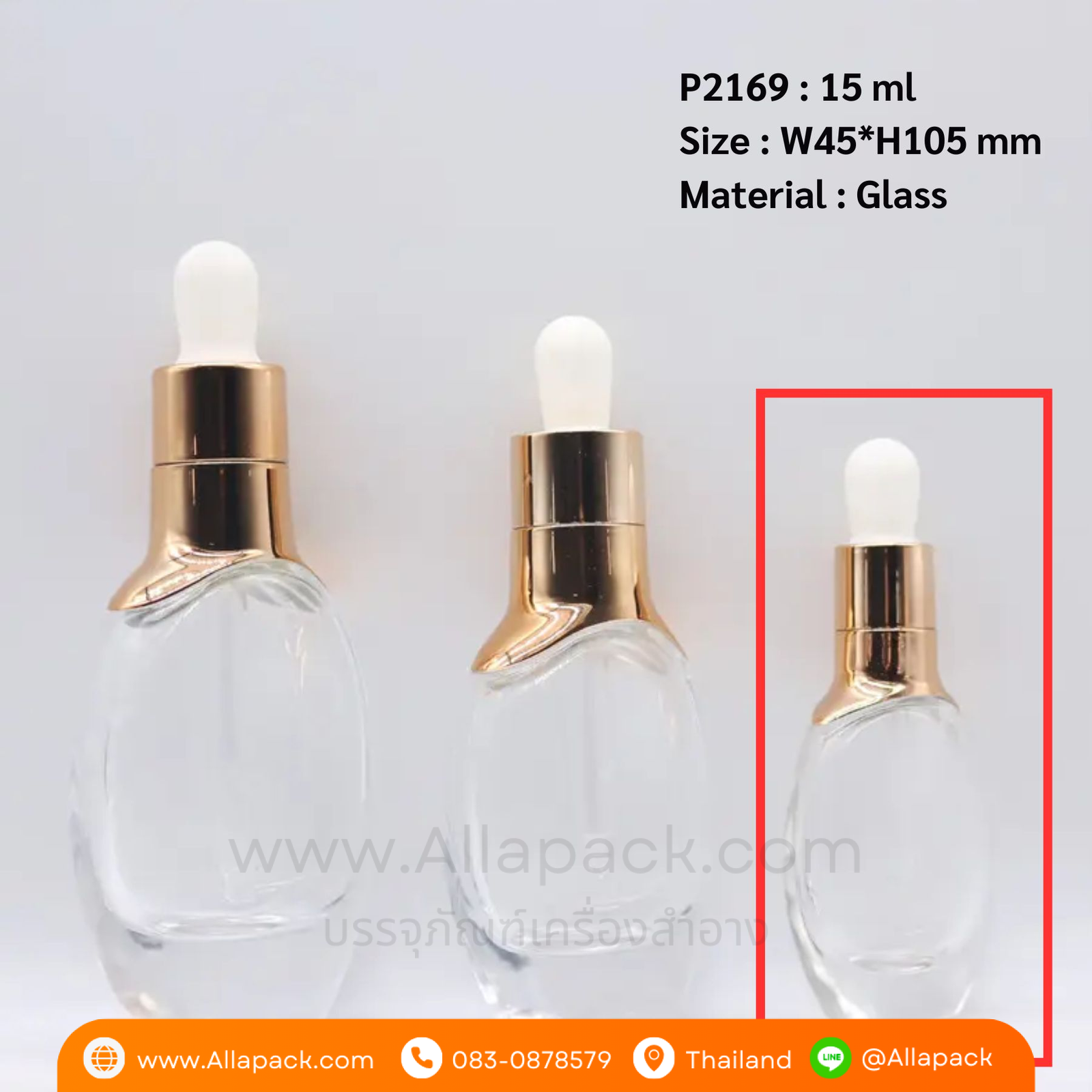 P2169 Luxury Glass Dropper Bottle 15 ml ขวดแก้วดรอปเปอร์ 15 มล