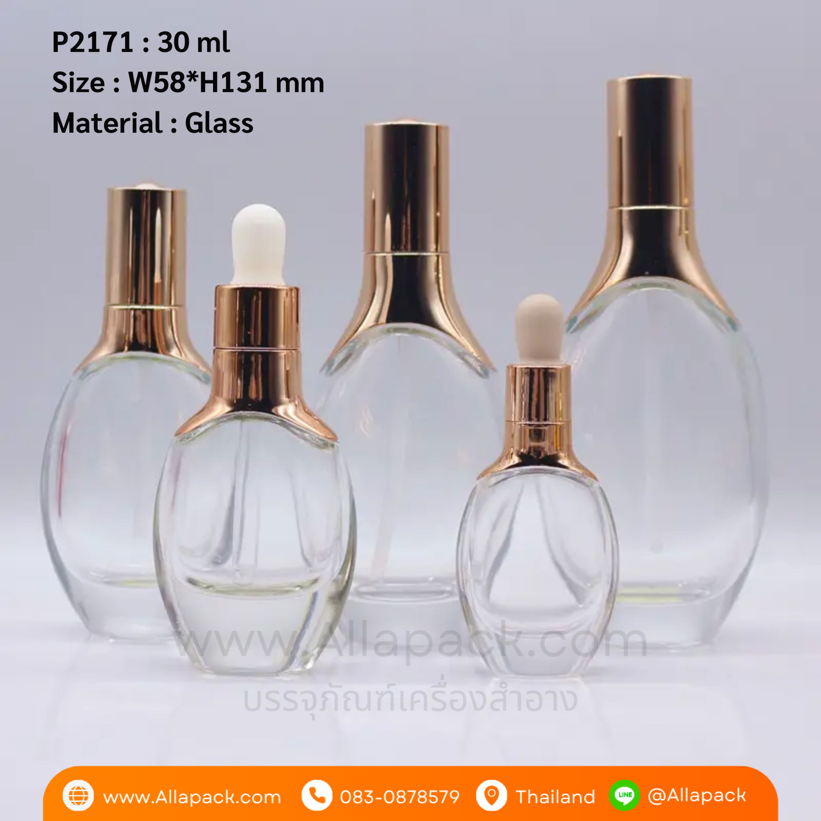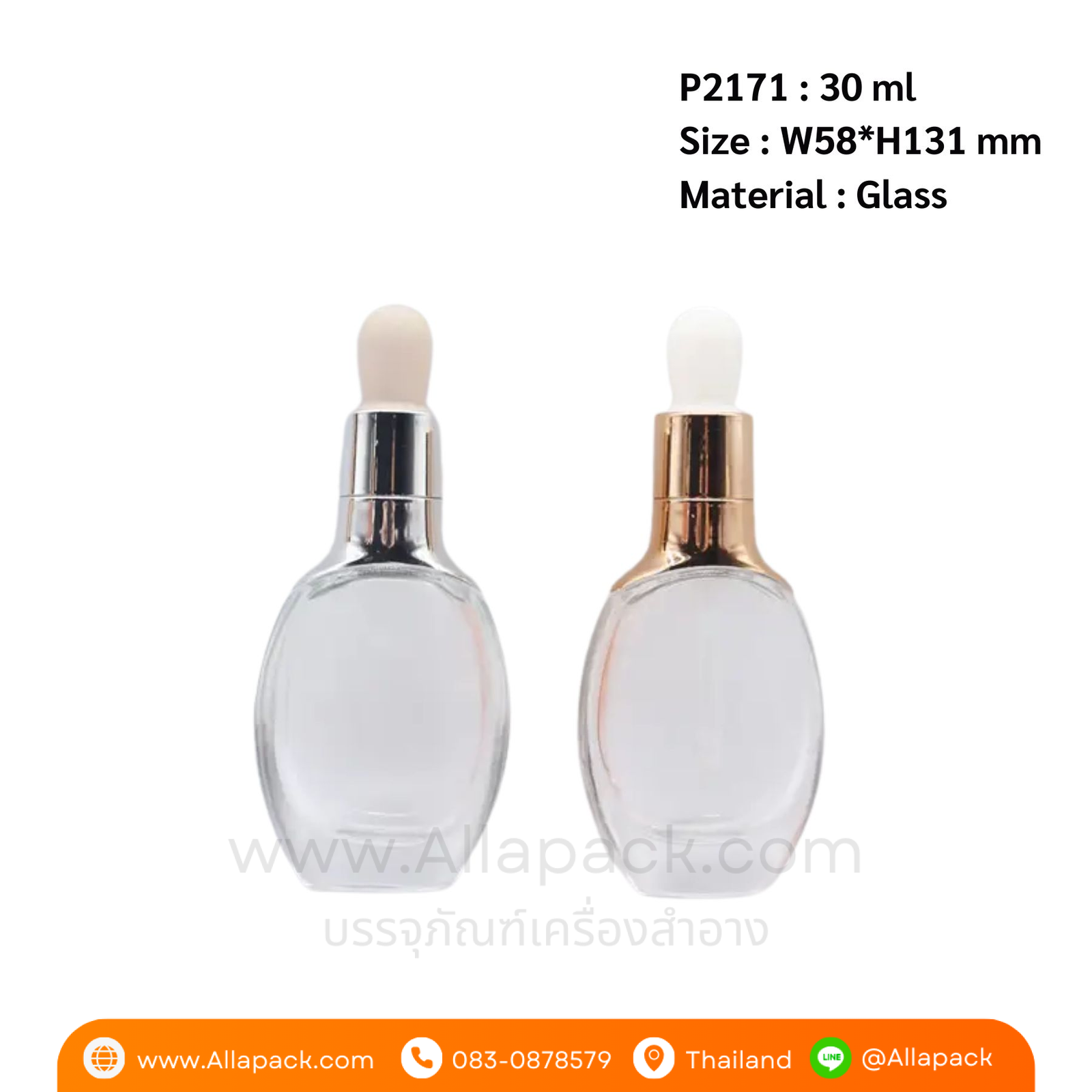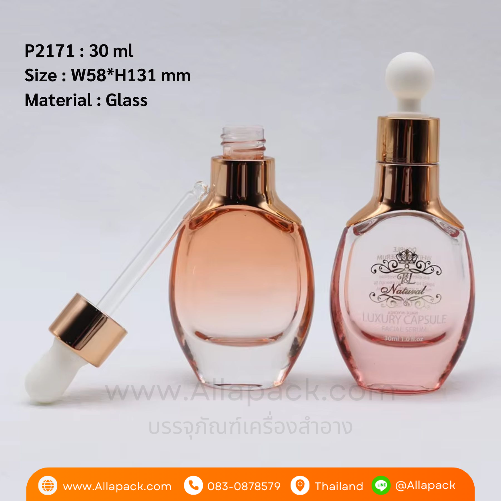 P2171 Luxury Glass Dropper Bottle 30 ml ขวดแก้วดรอปเปอร์ 30 มล