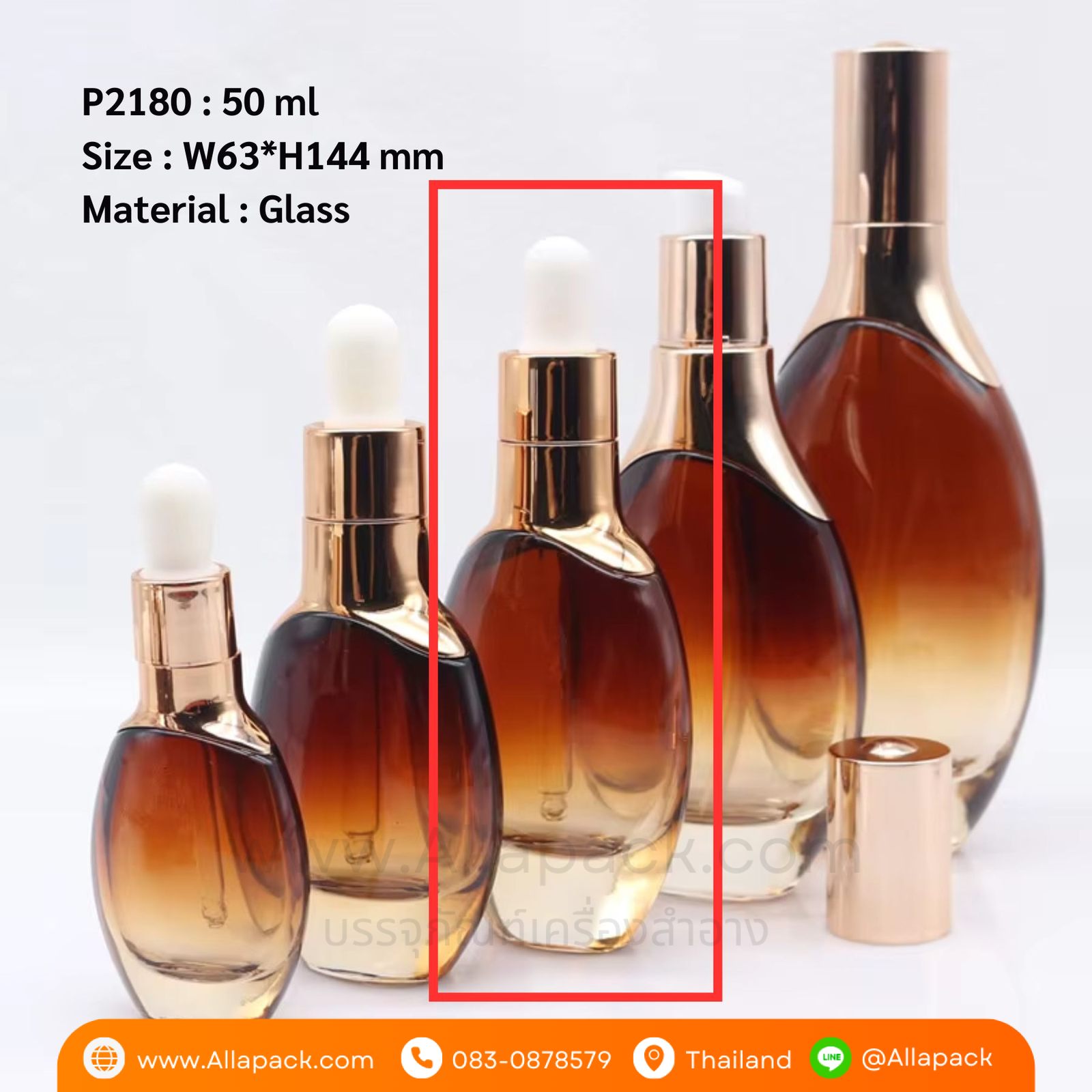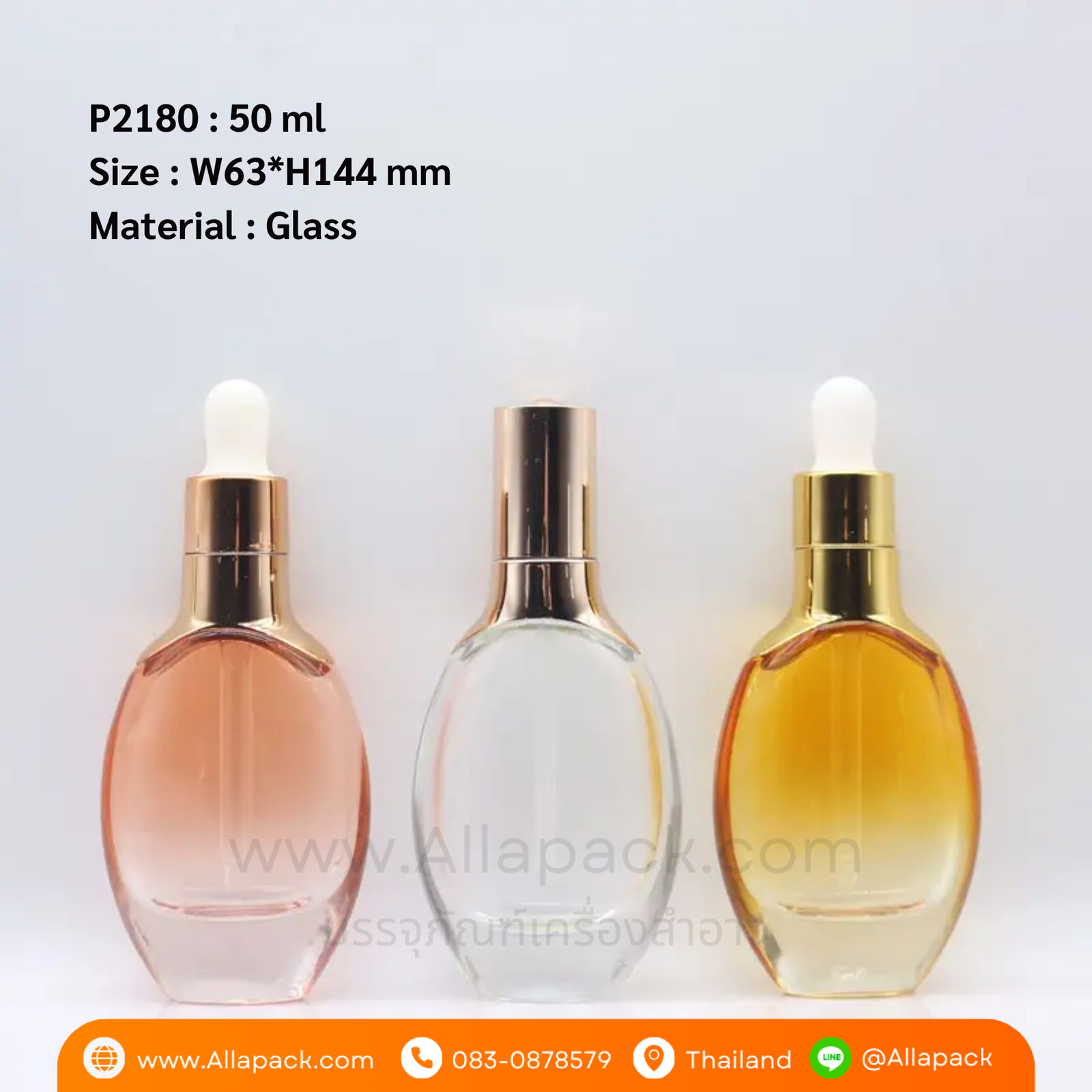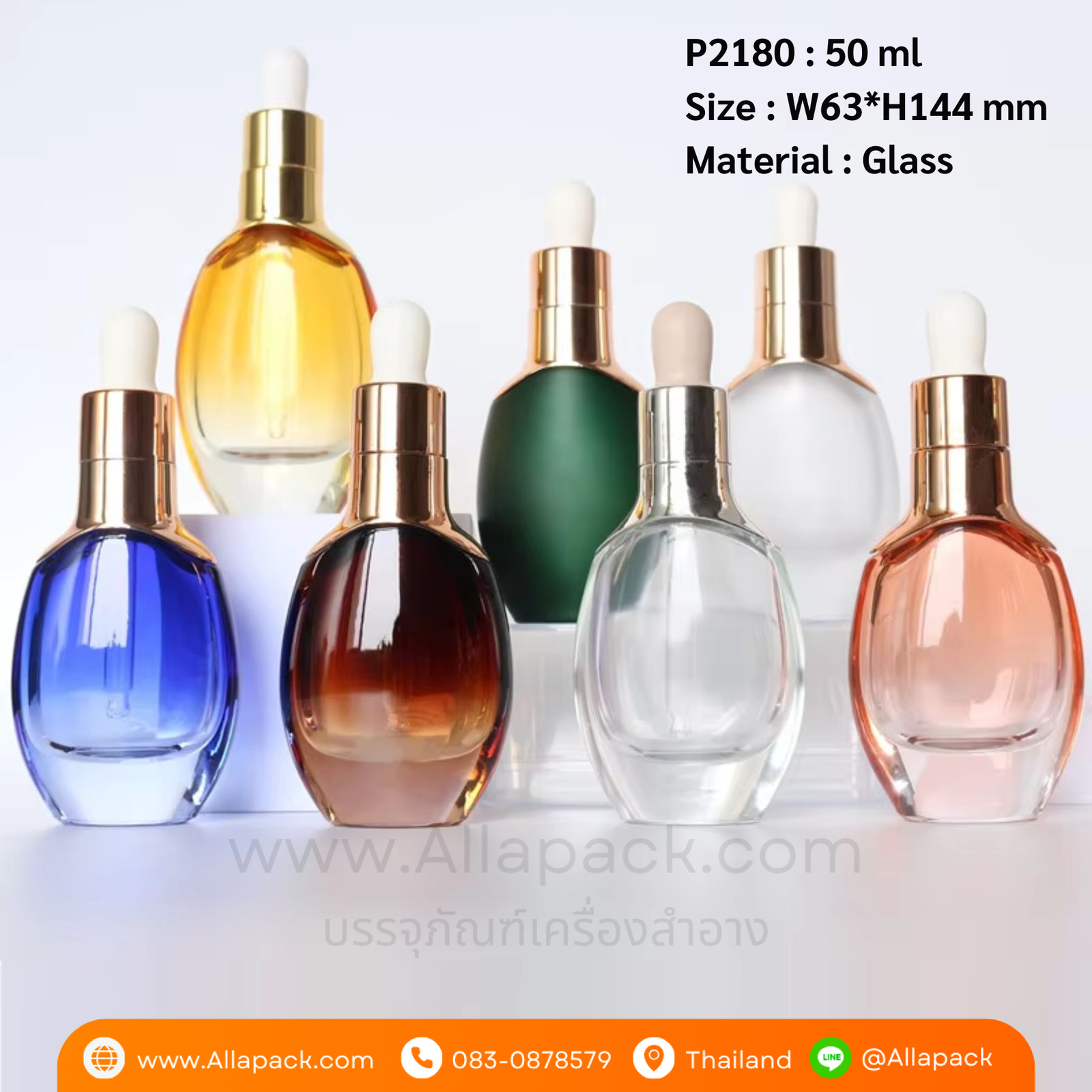 P2180 Luxury Color Glass Dropper Bottle 50 ml ขวดแก้วดรอปเปอร์ 50 มล