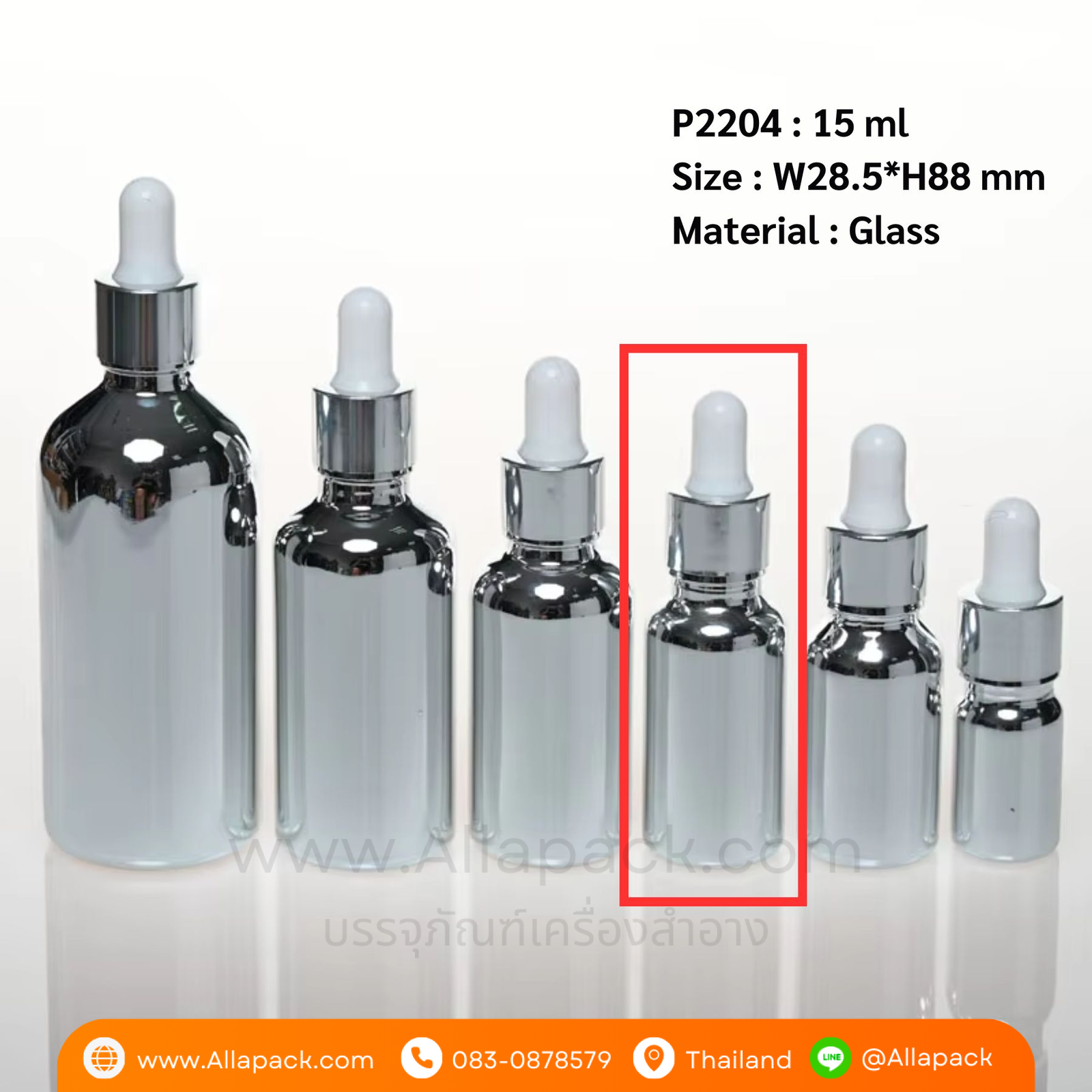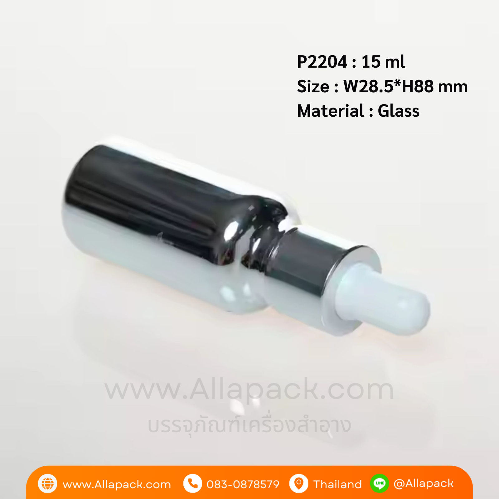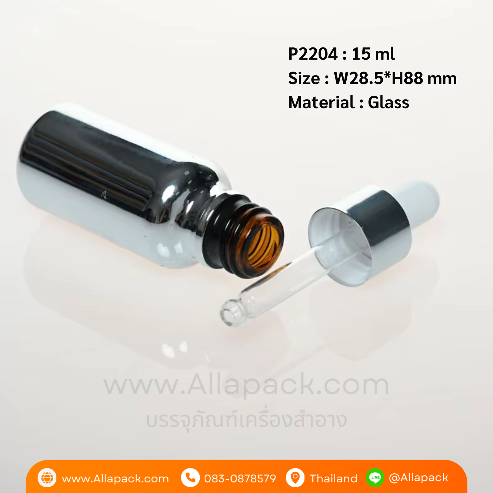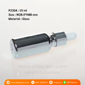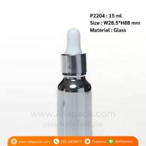 P2204 Electroplating Silver Dropper Glass Bottle 15 ml ขวดแก้วดรอปเปอร์ 15 มล