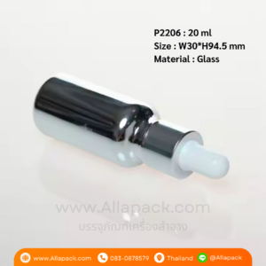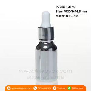 P2206 Electroplating Silver Dropper Glass Bottle 20 ml ขวดแก้วดรอปเปอร์ 20 มล