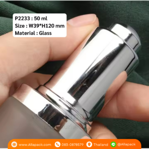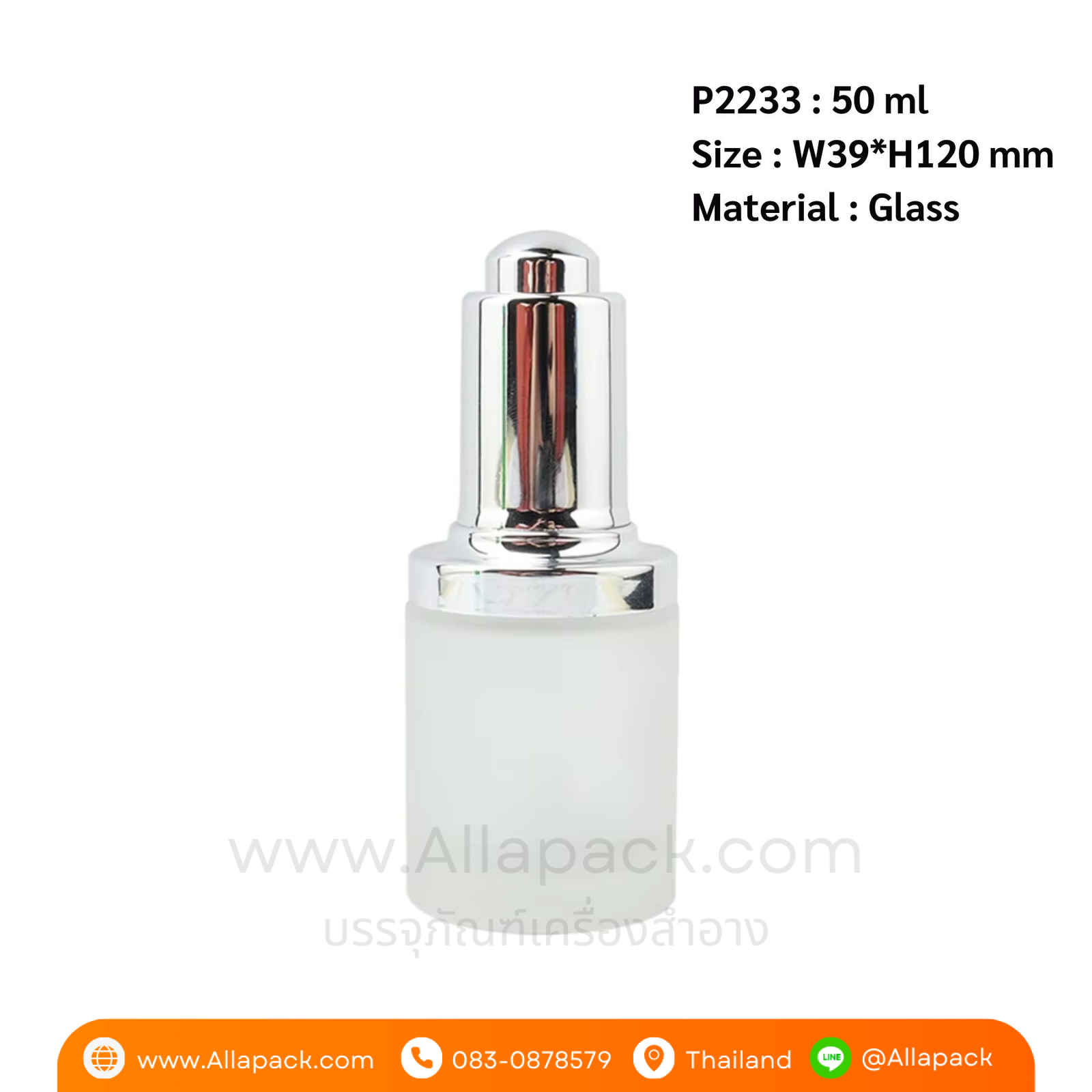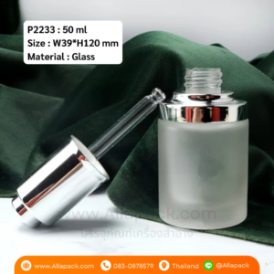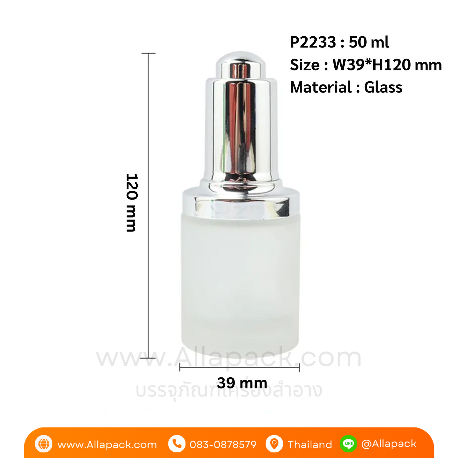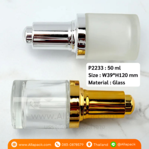 P2233 Frosted clear Dropper Bottle 50ml Silver Press Pump ขวดแก้วดรอปเปอร์ 50 มล
