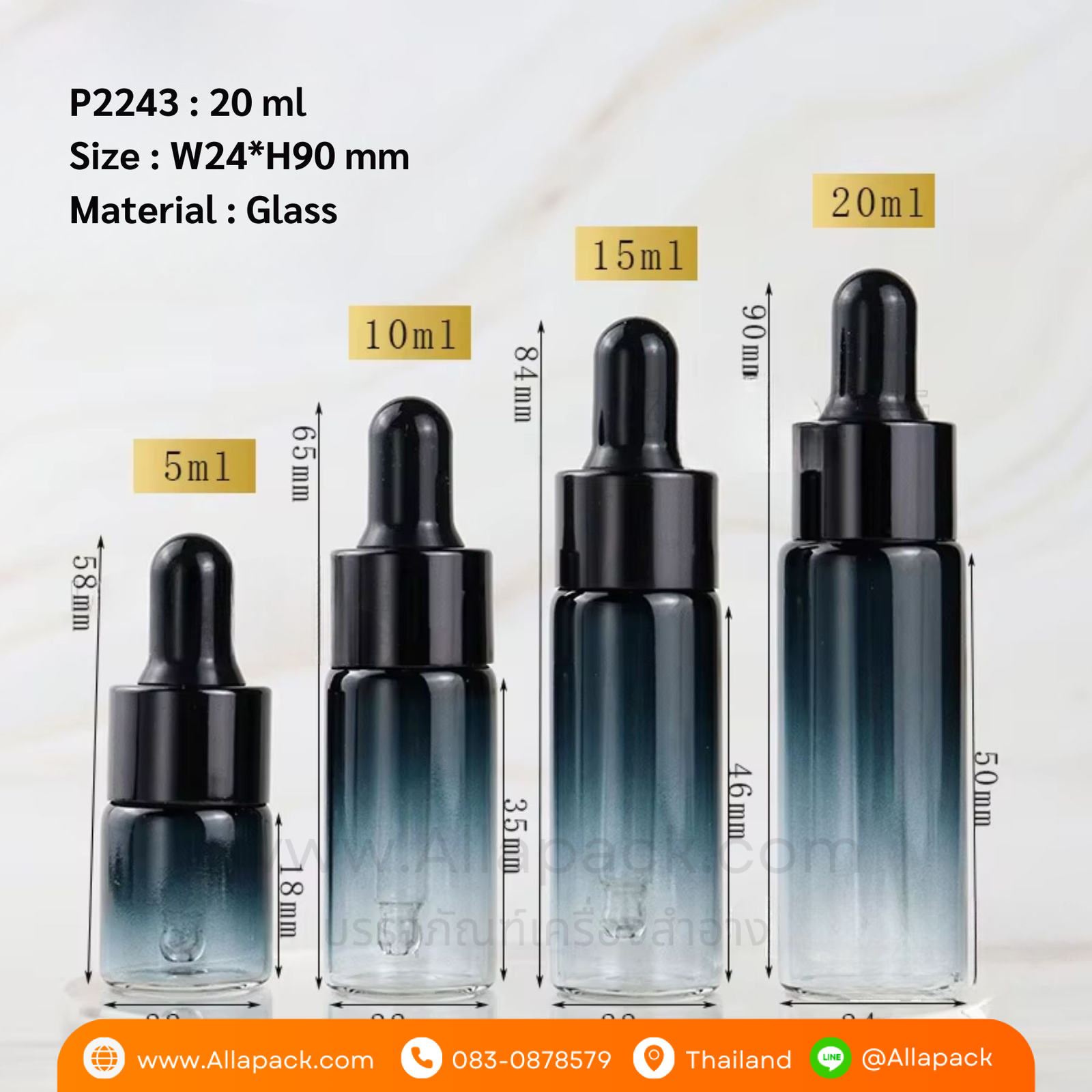 P2243 Gradient Color Dropper Bottle 20 ml Cylindrical Glass Dropper ขวดแก้วดรอปเปอร์ 20 มล