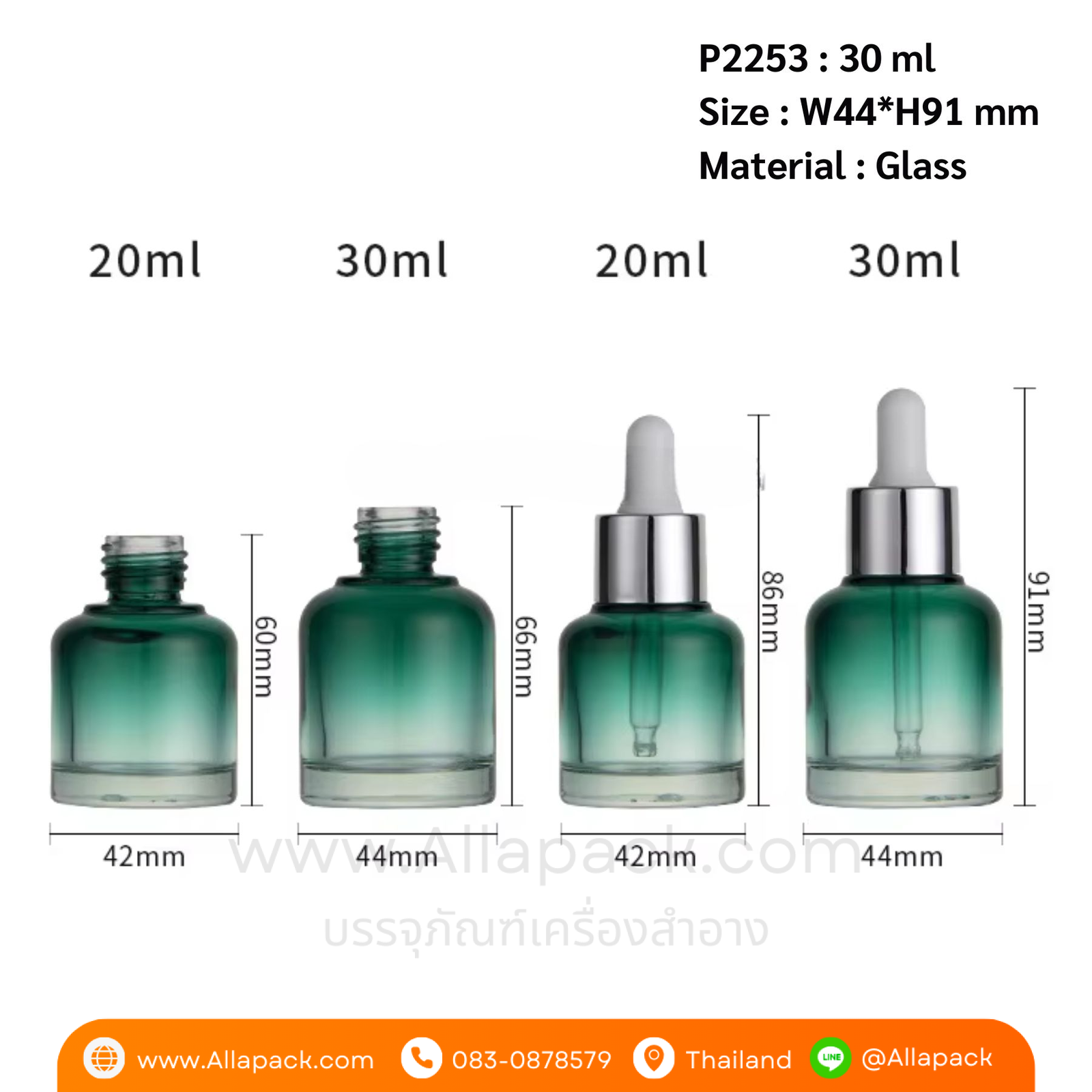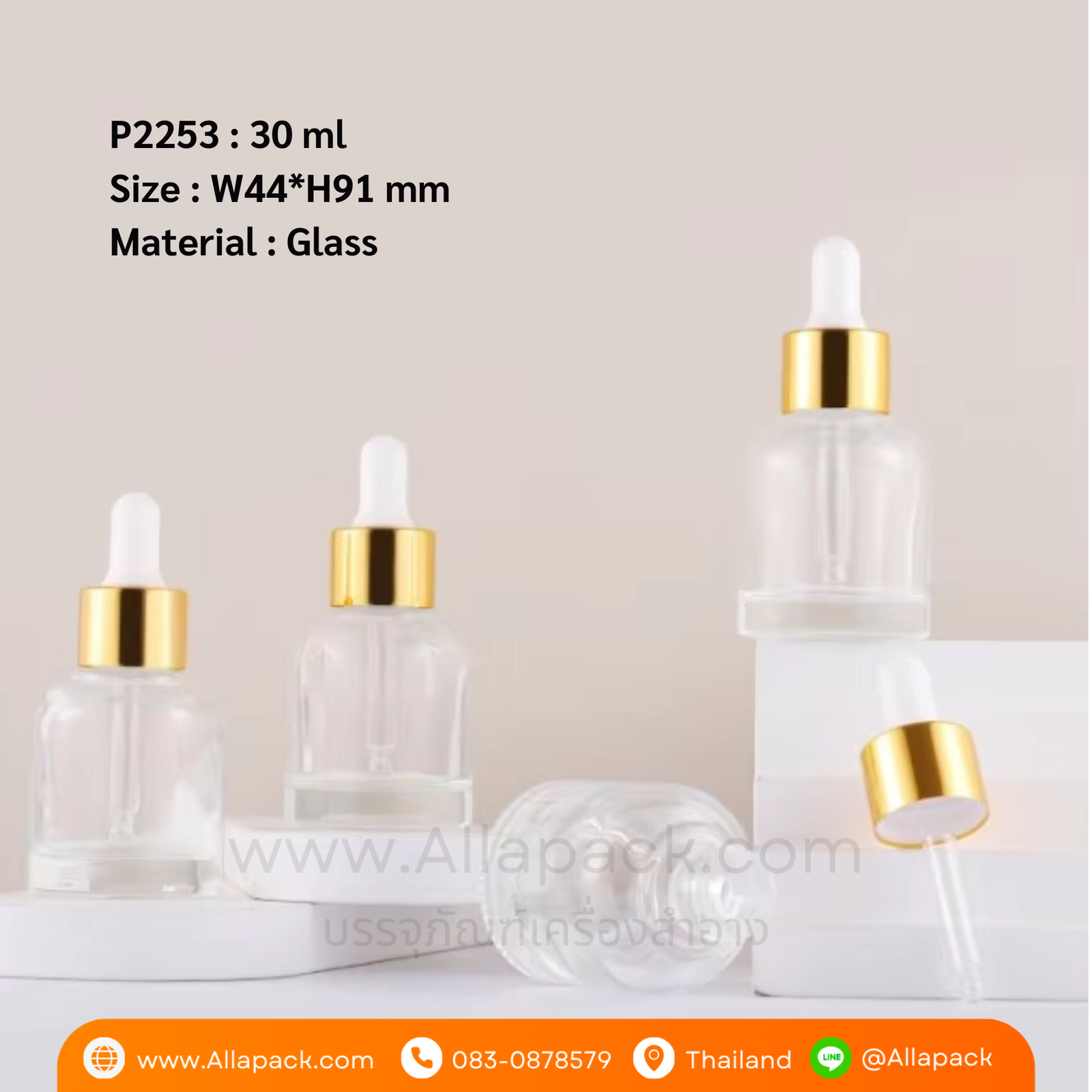 P2253 Clear Glass Dropper Bottles 30 ml ขวดแก้วดรอปเปอร์ 30 มล