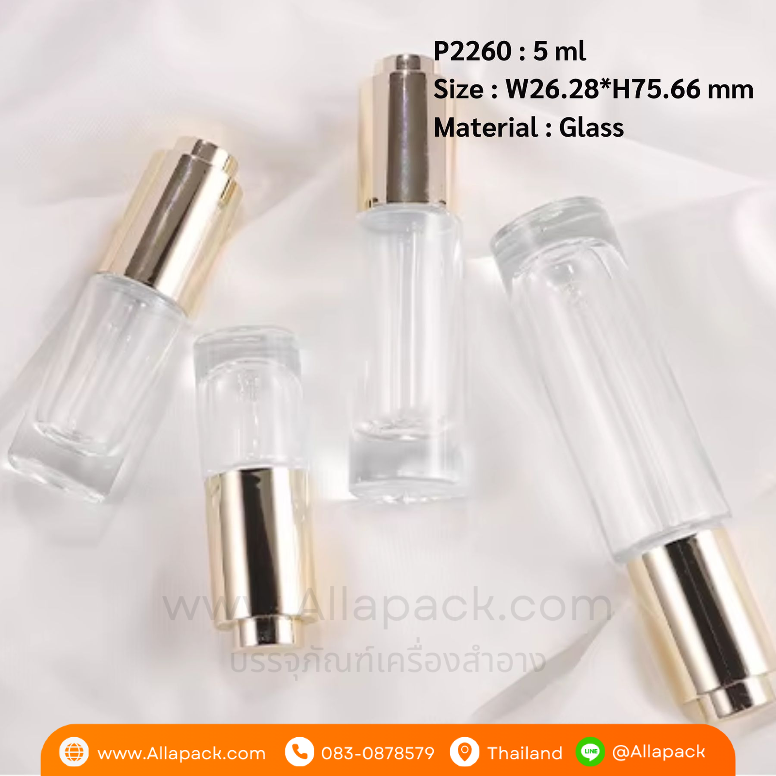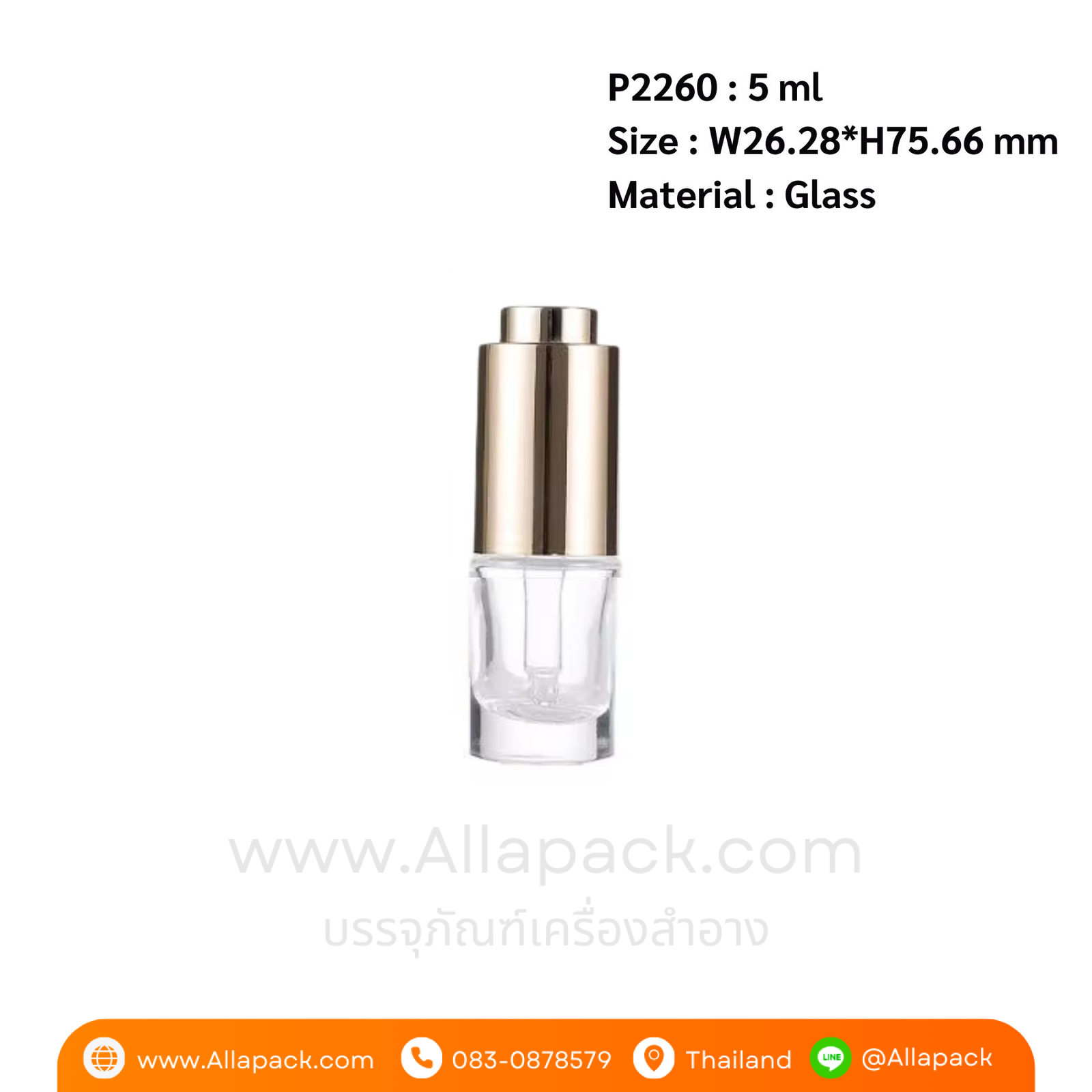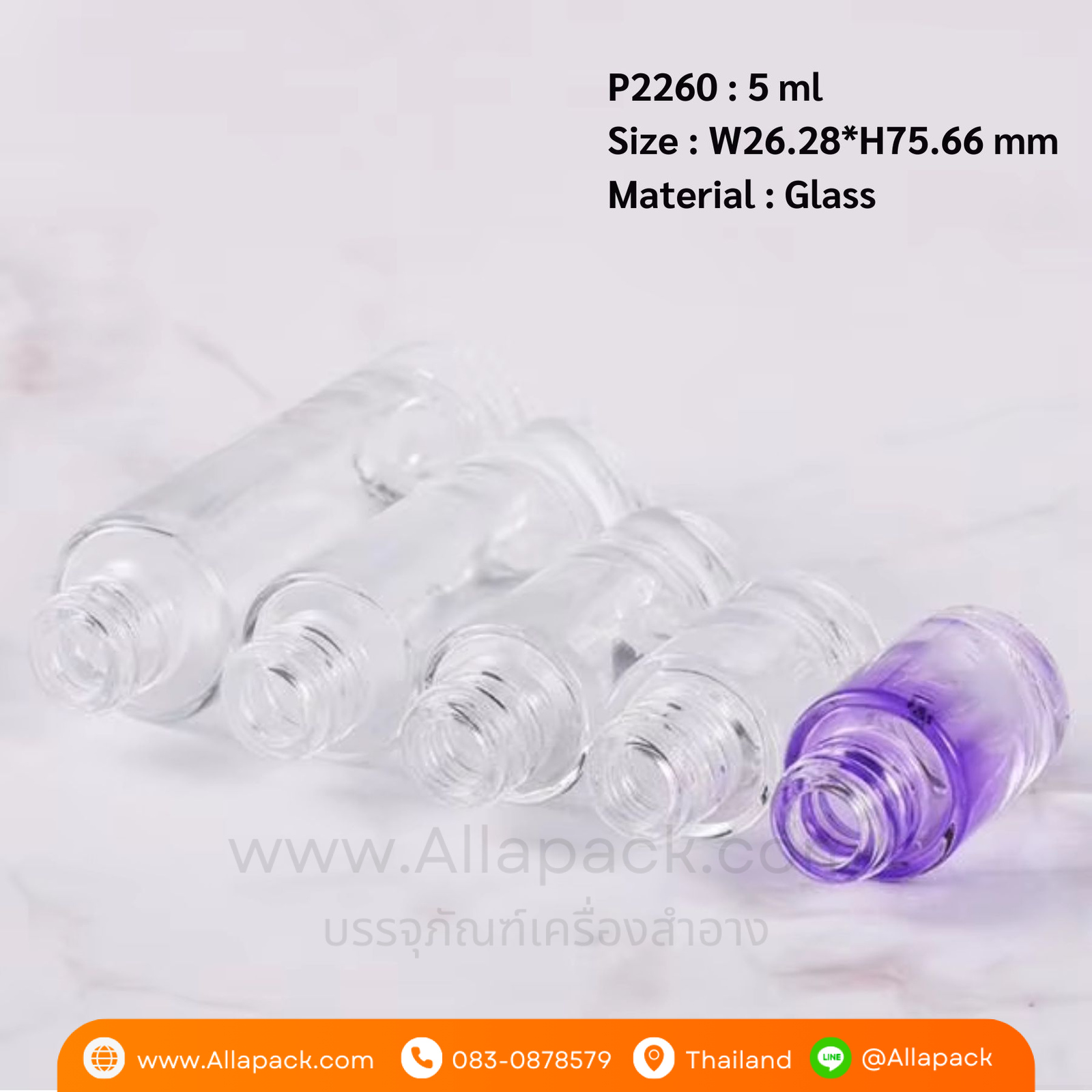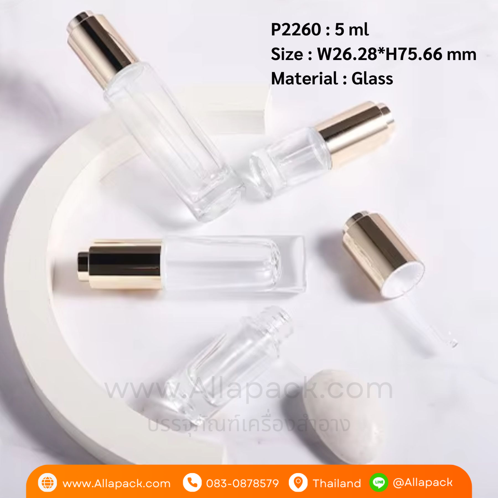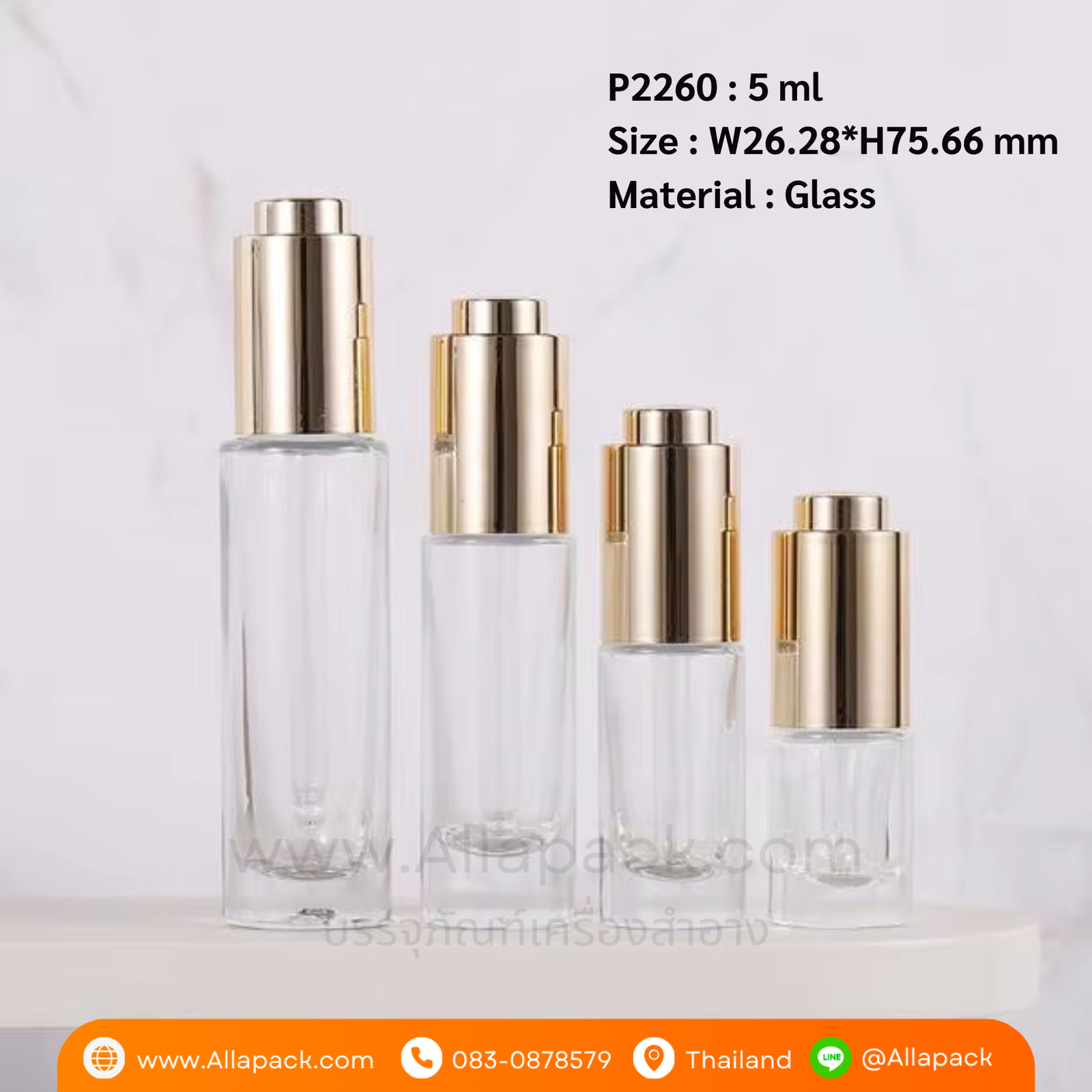 P2260 Flat Shoulder Cylinder clear Press Dropper Cap 5 ml ขวดแก้วดรอปเปอร์ 5 มล