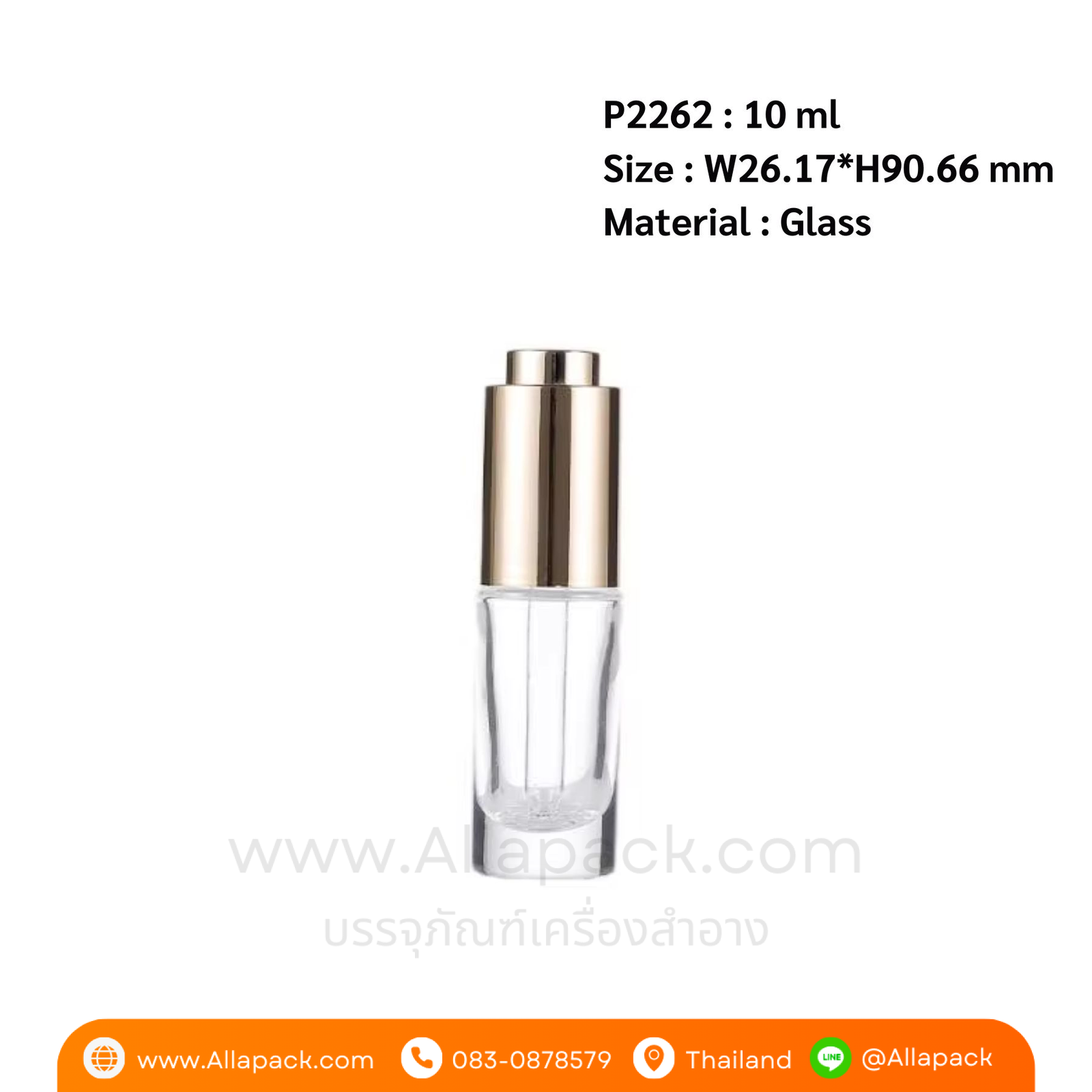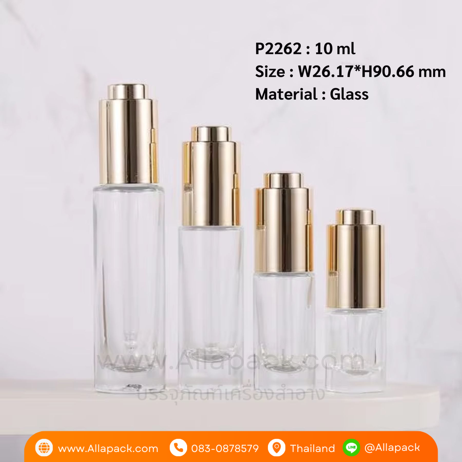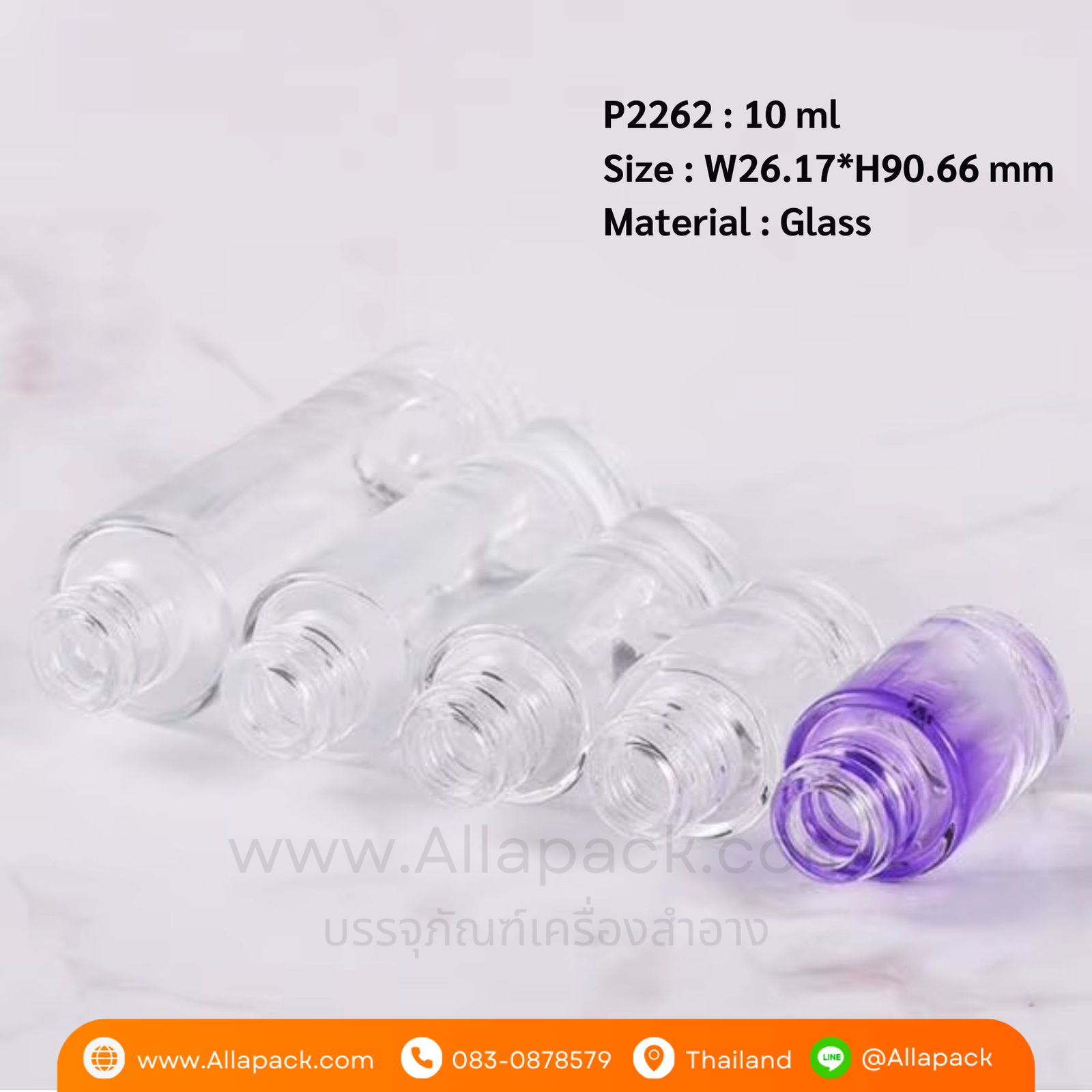 P2262 Flat Shoulder Cylinder clear Press Dropper Cap 10 ml ขวดแก้วดรอปเปอร์ 10 มล
