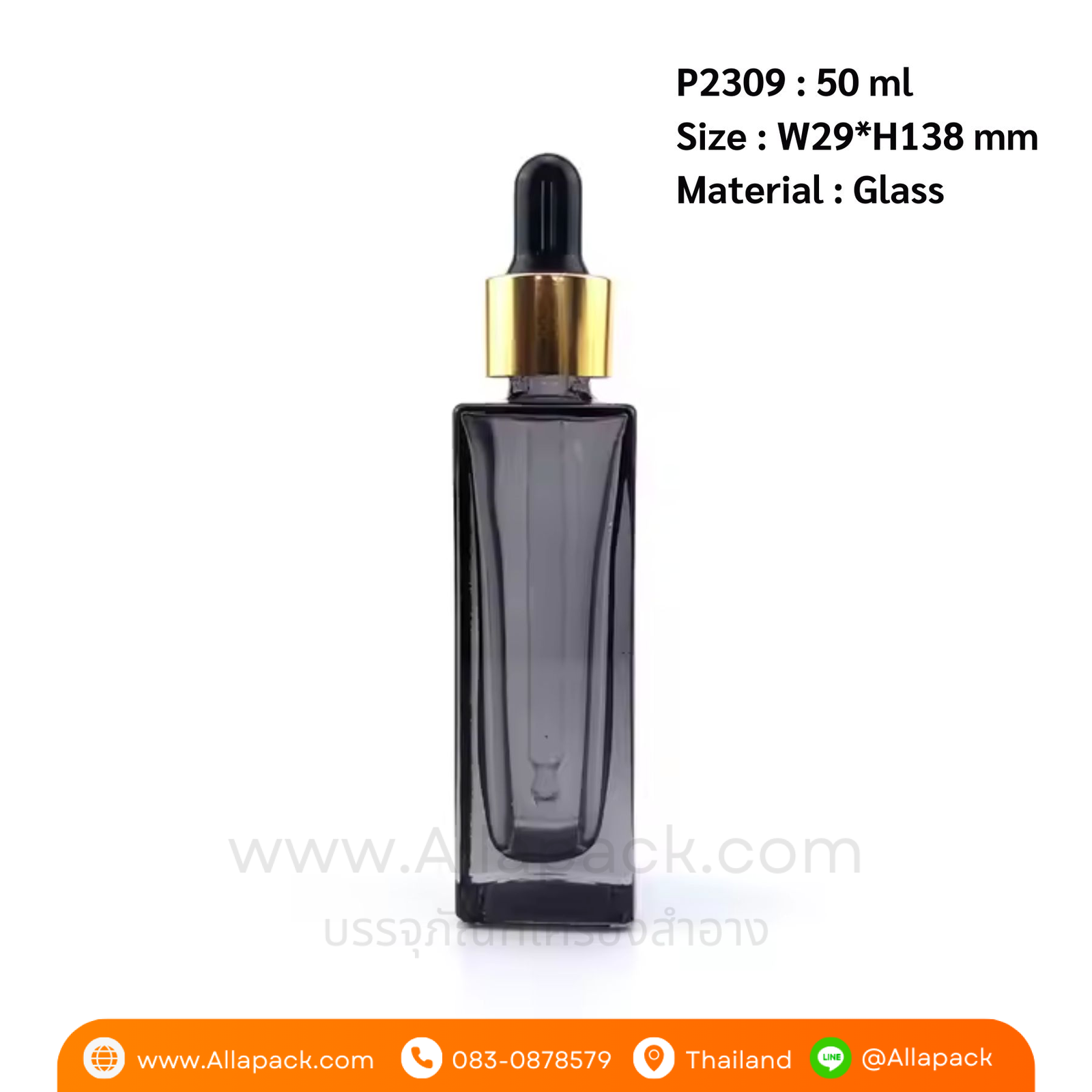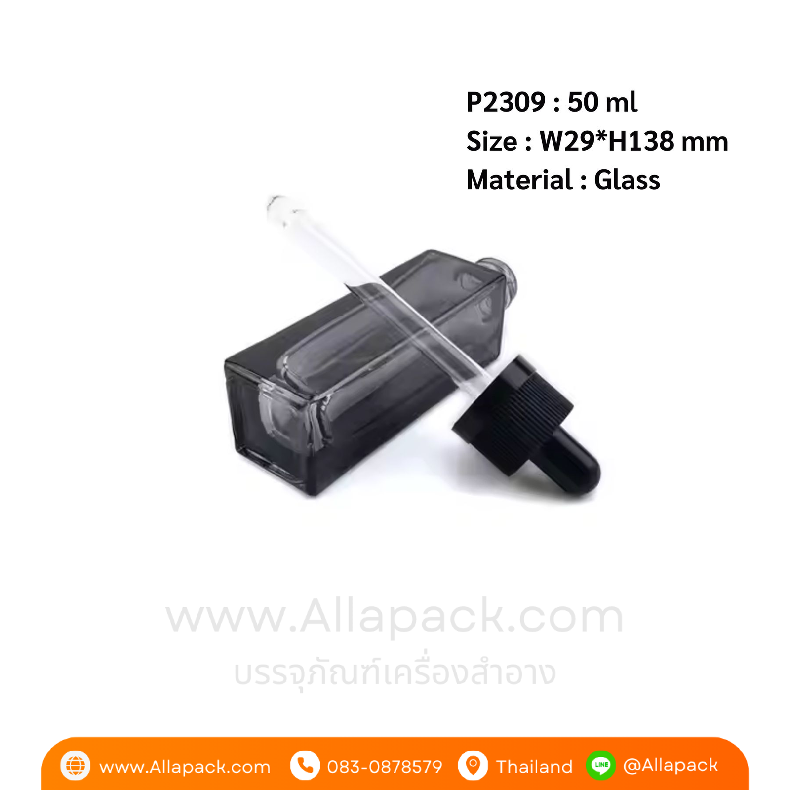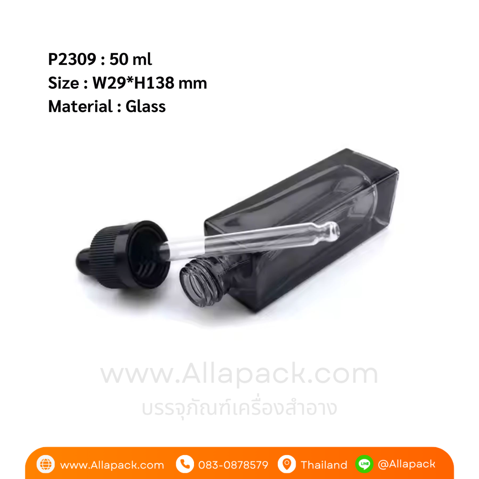 P2309 Frosted Refillable Black Glass Dropper Bottle 50 ml ขวดแก้วดรอปเปอร์ 50 มล