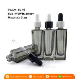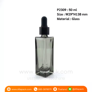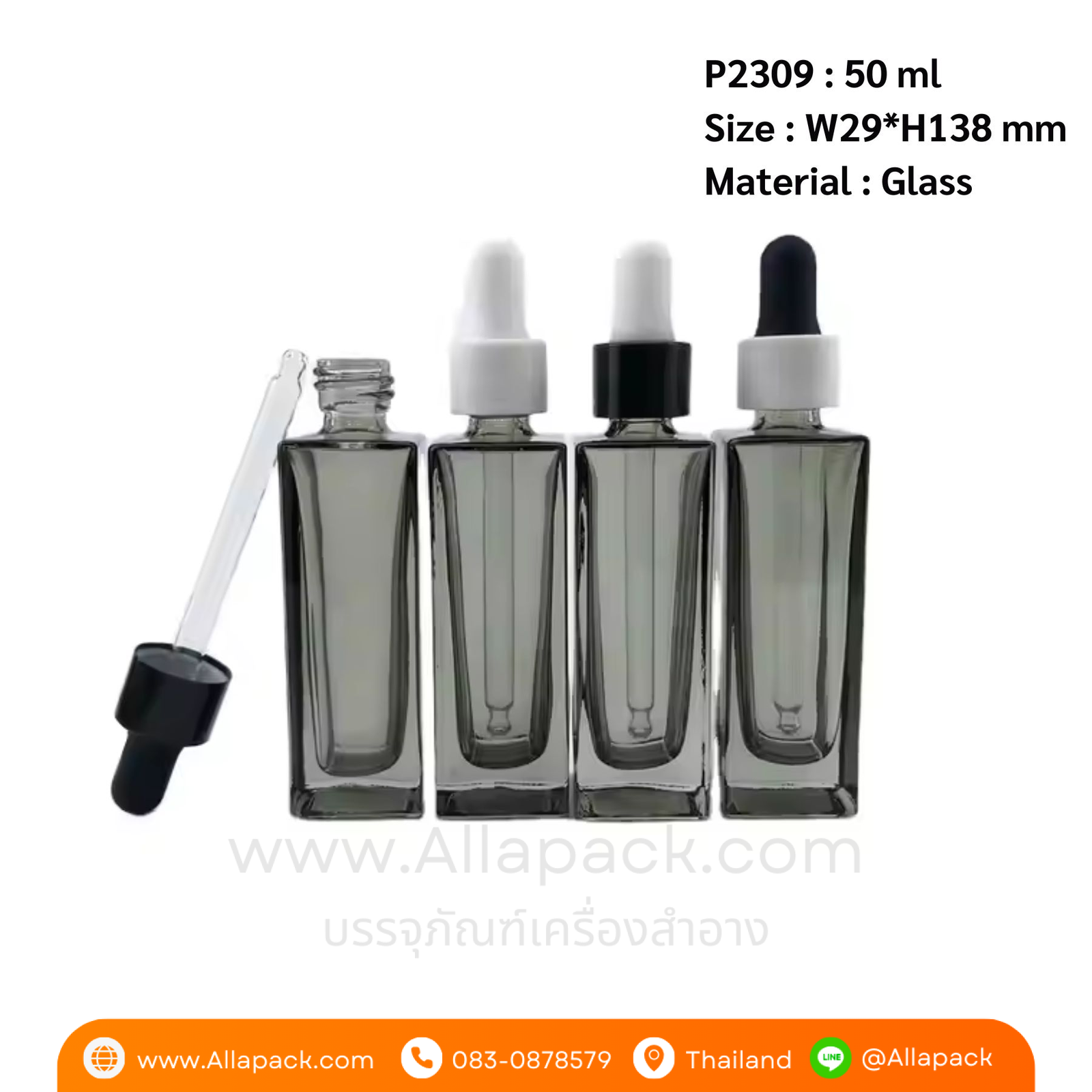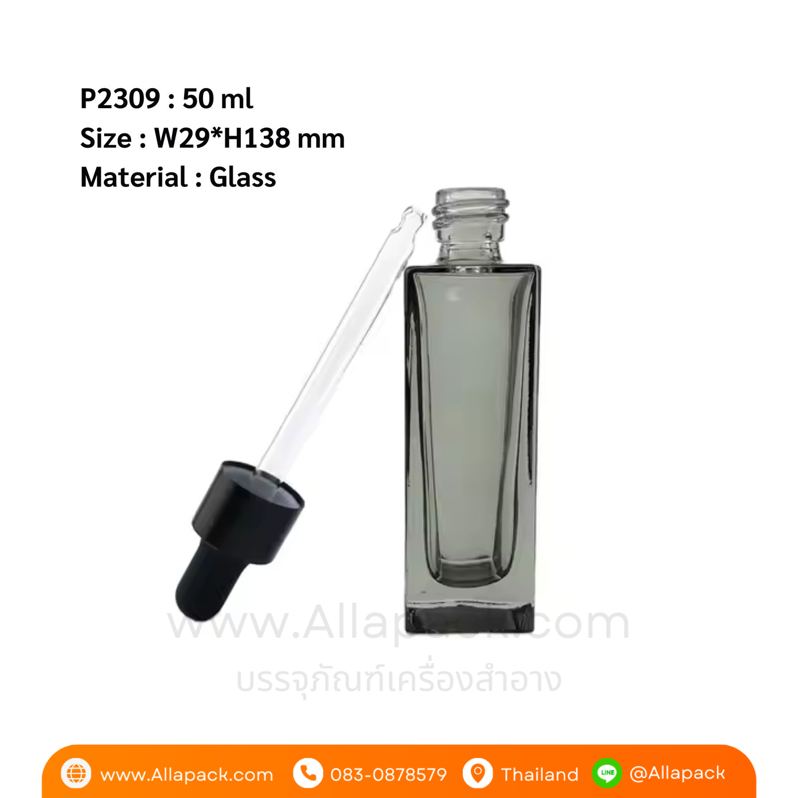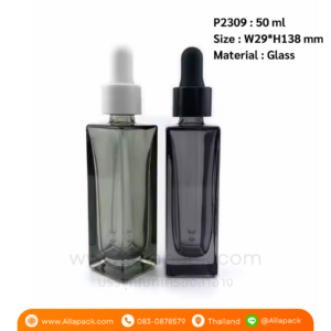 P2309 Frosted Refillable Black Glass Dropper Bottle 50 ml ขวดแก้วดรอปเปอร์ 50 มล